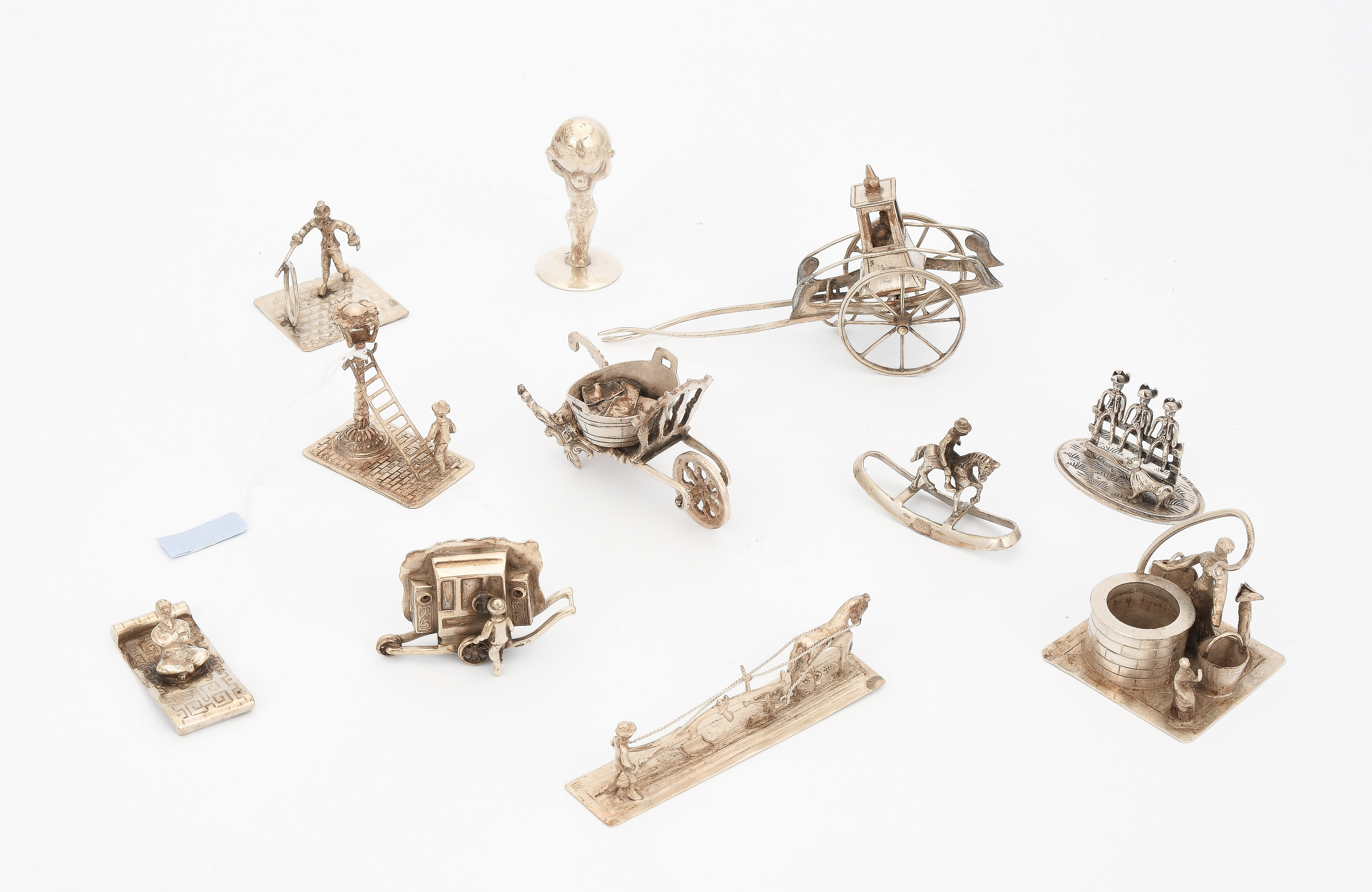 Holland, 19./20.Jh. Silber. Verschiedene Einzelfiguren, Gruppen und Wagen. H 1,2–5,6 cm, zus. ca. 223 g.