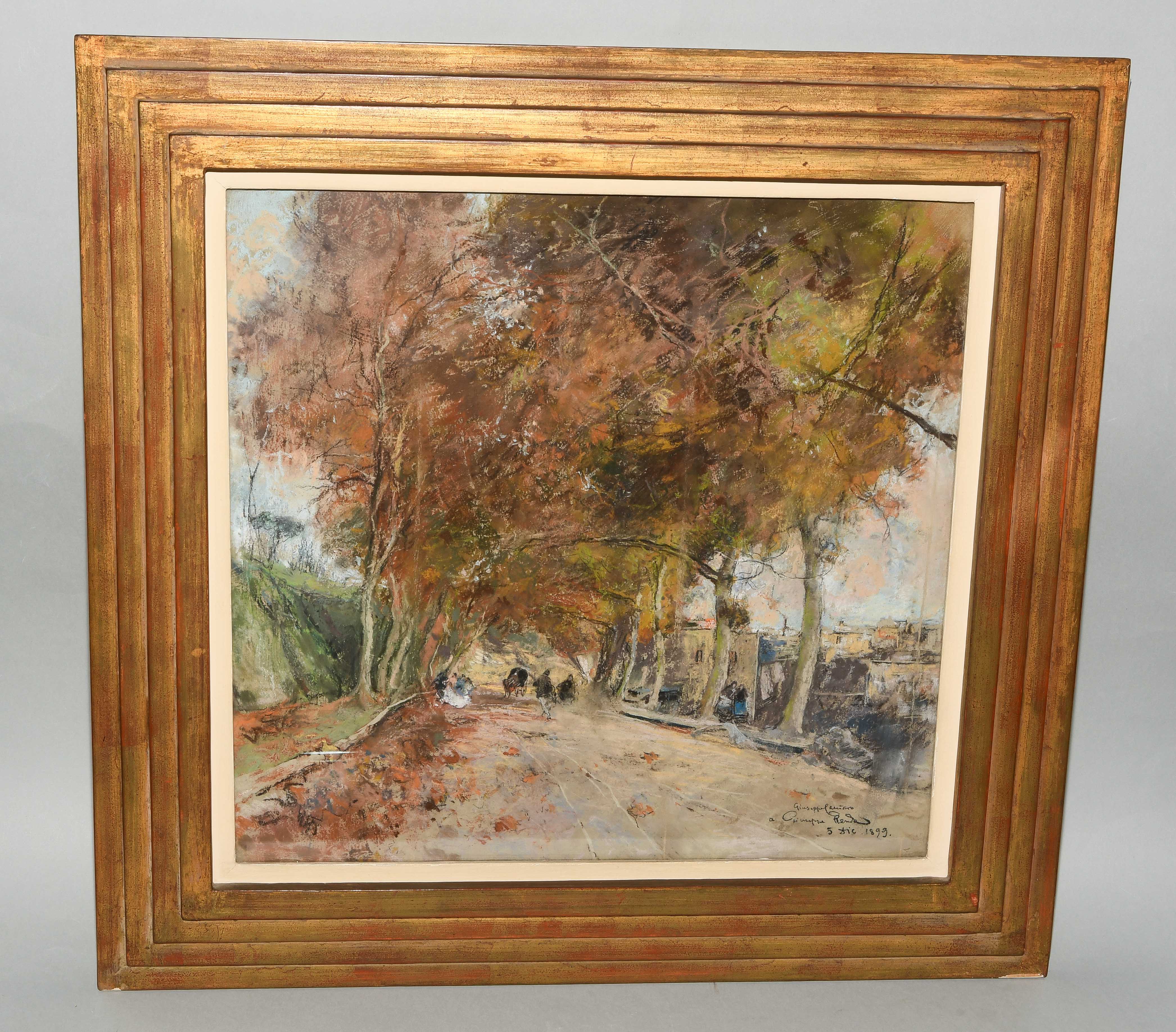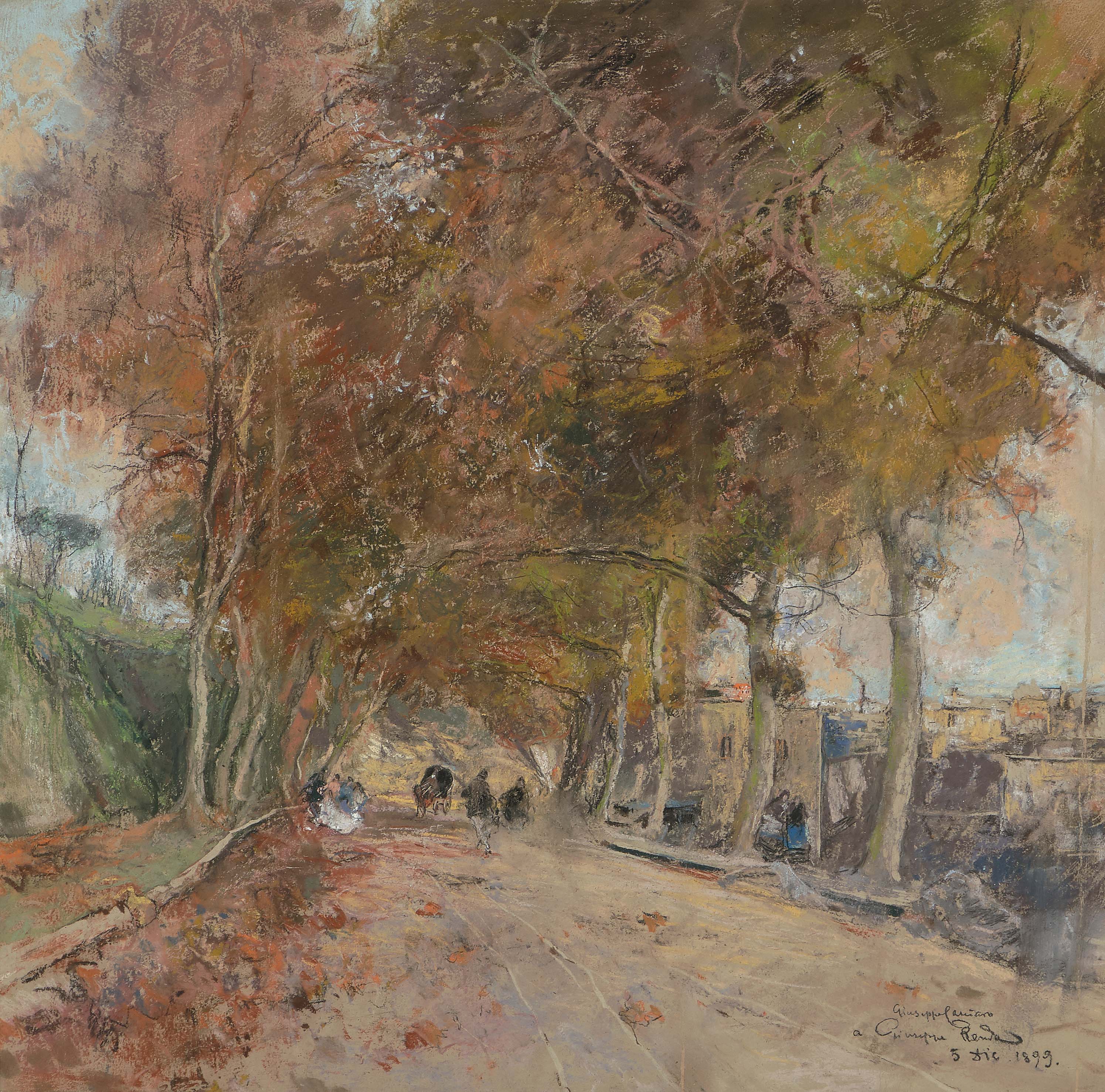 Allee. 1899. Pastell auf Papier. Unten rechts in Kohle signiert, bezeichnet "a Giuseppe Ren..." und datiert. Lichtmass 34,5x36 cm. Gerahmt.