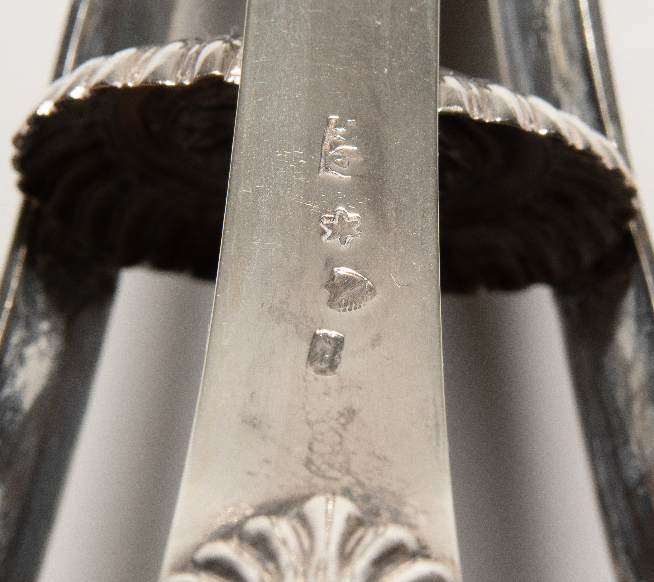 1799–1828. Silber. Meistermarke Hans Caspar I Wüest für Firma Locher & Chapuis. Auf Holzplinthe hohes Dreibein mit Tatzenfüssen, darüber Vasentülle. Feiner Blattfries, begleitet von beflügelten Engelsköpfen. Stadt-, Meister- und Verkäufermarke. H 27 cm.