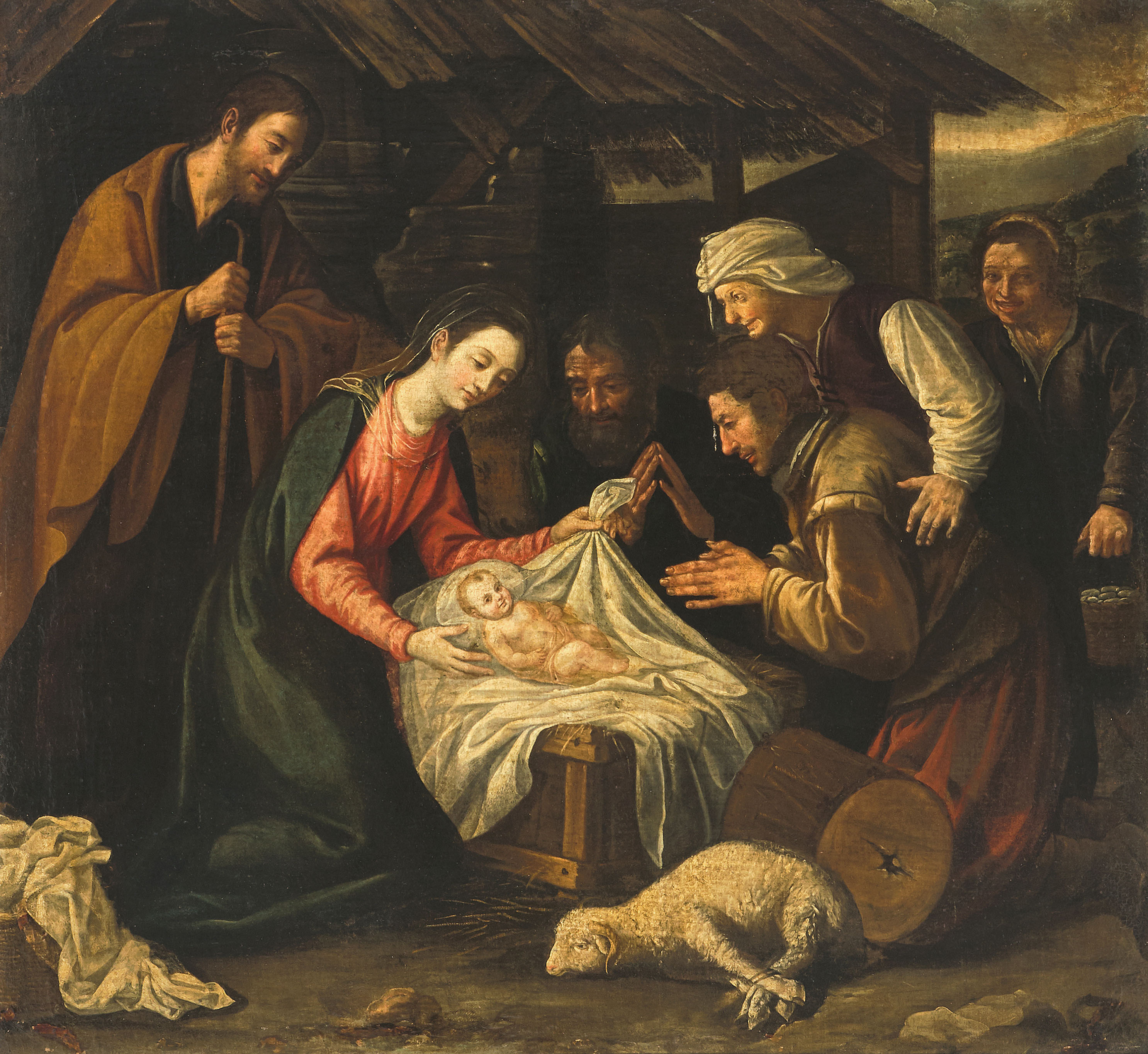 Die Anbetung der Hirten. Öl auf Leinwand. 88x95 cm.