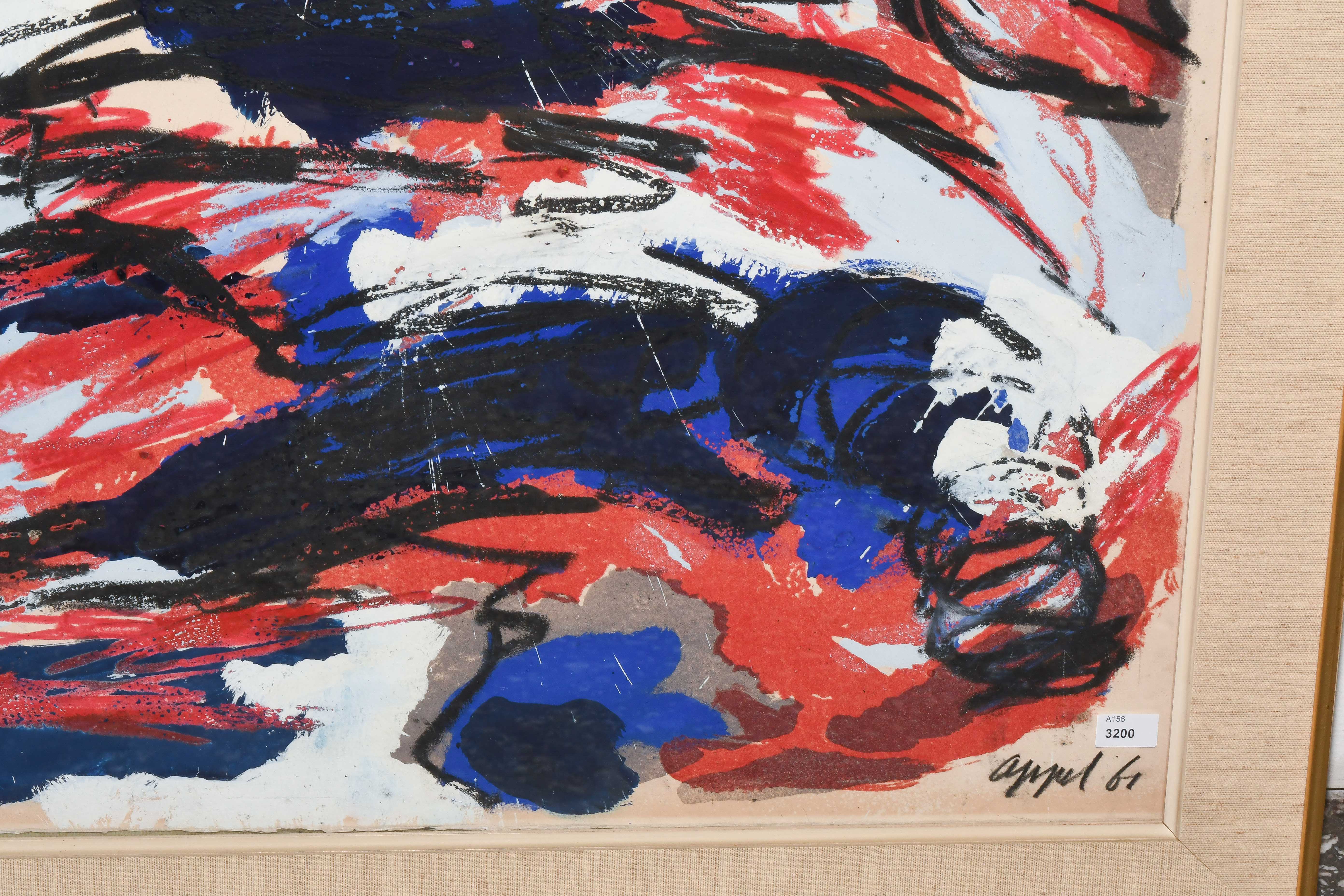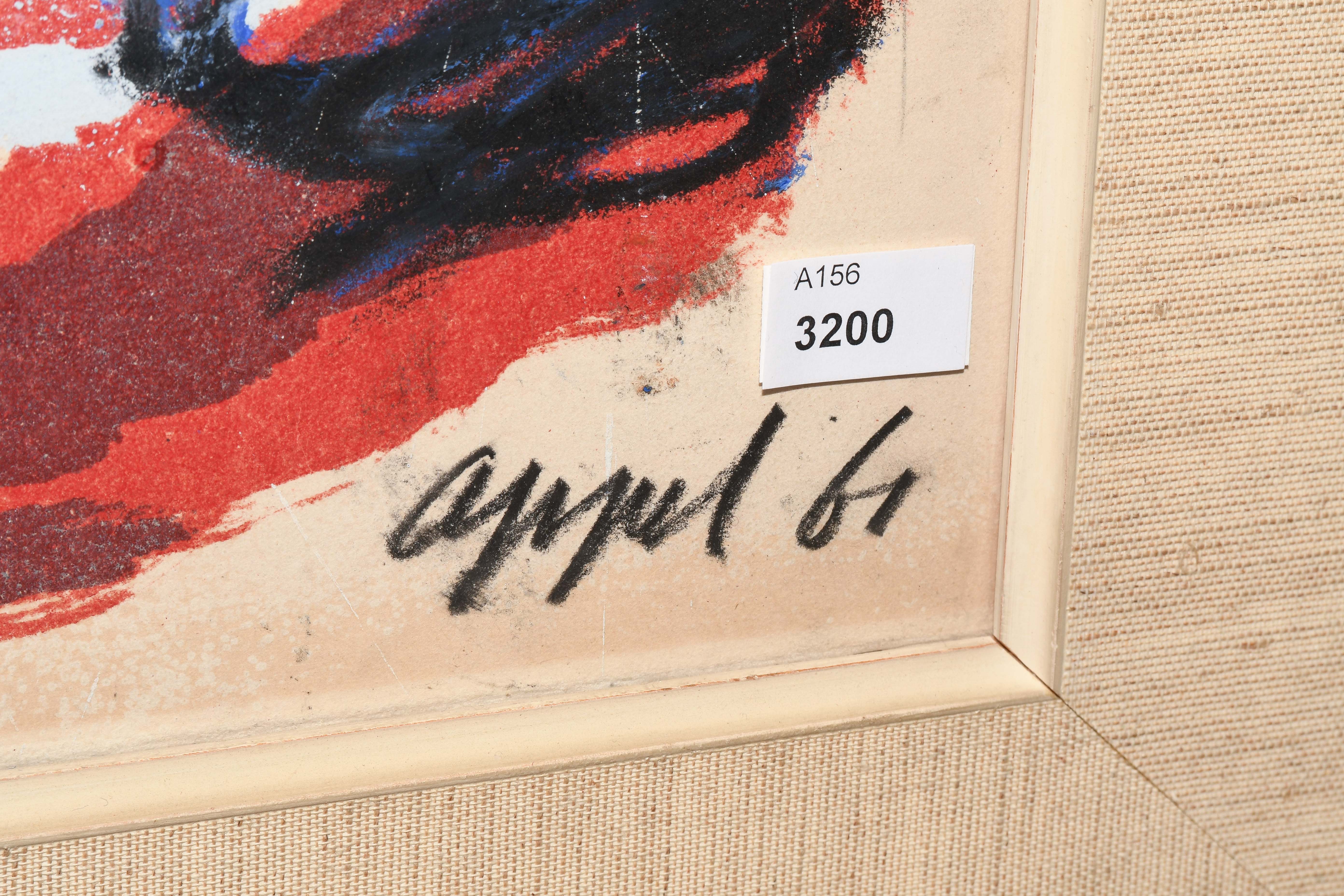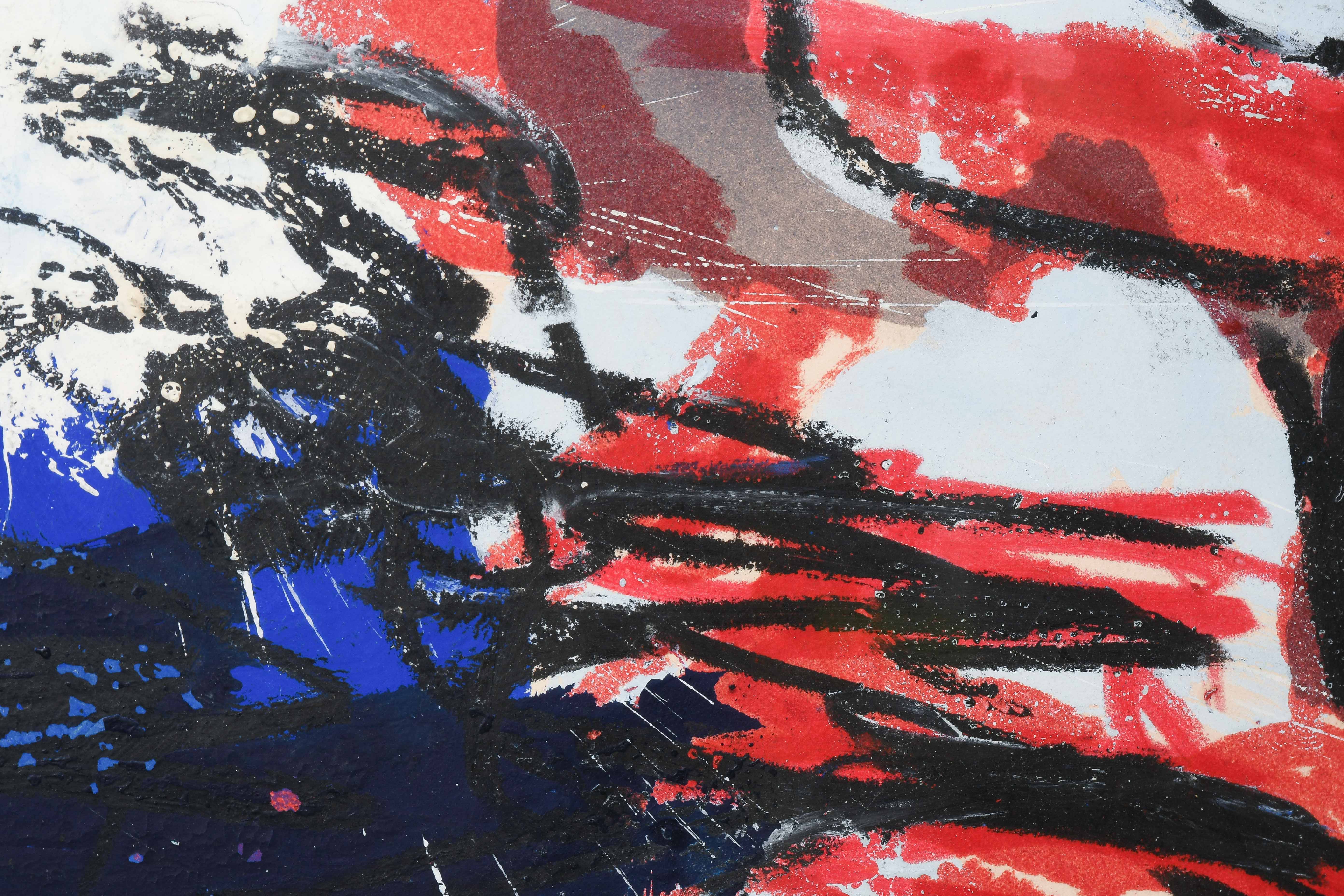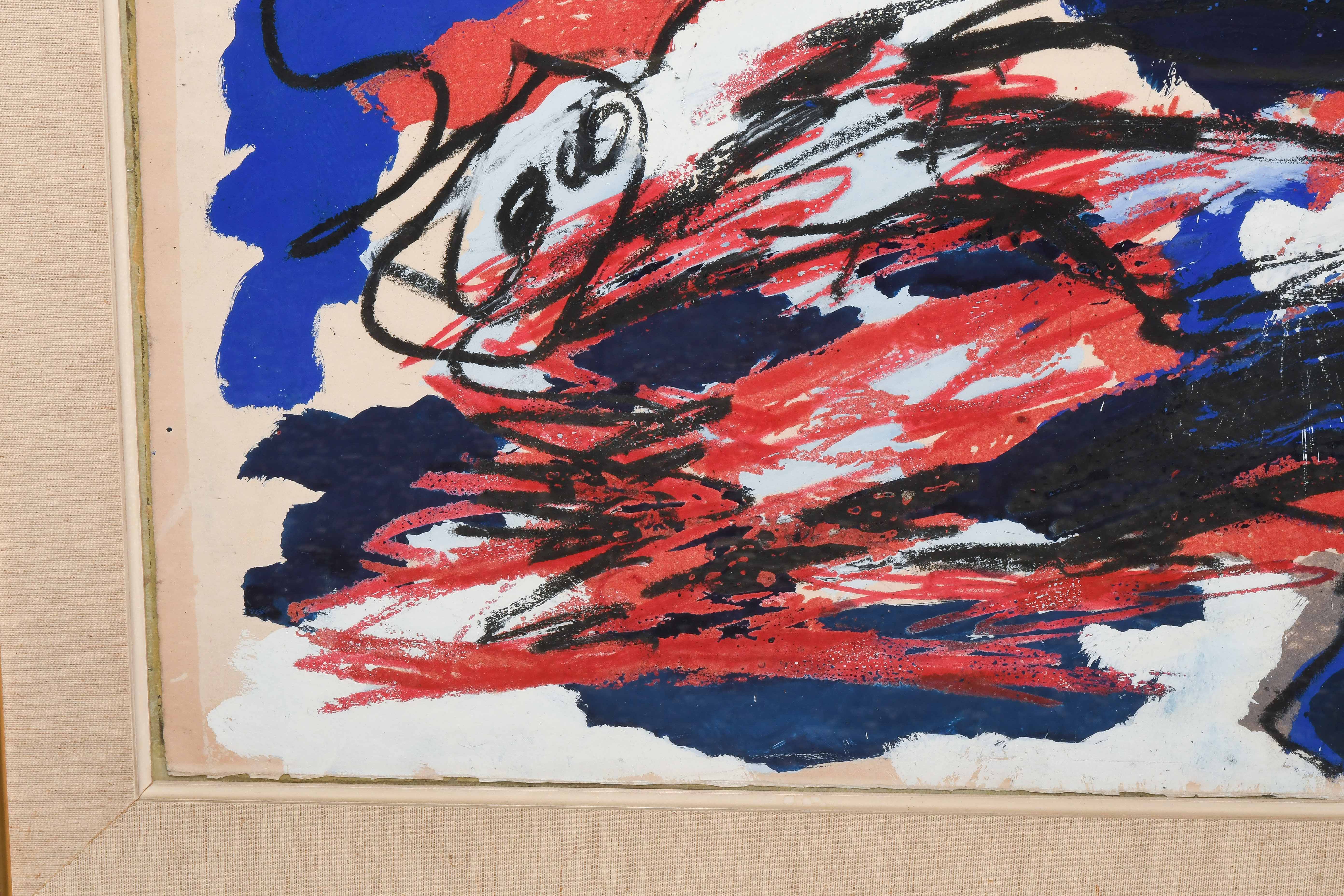 "Nocturne". 1961. Farblithographie mit Ölkreide und Gouache überarbeitet. Unten rechts signiert und datiert. Verso betitelt und in Bleistift bezeichnet: "Jacometti". Blattgrösse 56,5x76,3 cm. Gerahmt. -Blatt leicht gebräunt. Dunkler Lichtrand. Ränder und Ecken leicht bestossen. Wenige Knitter.