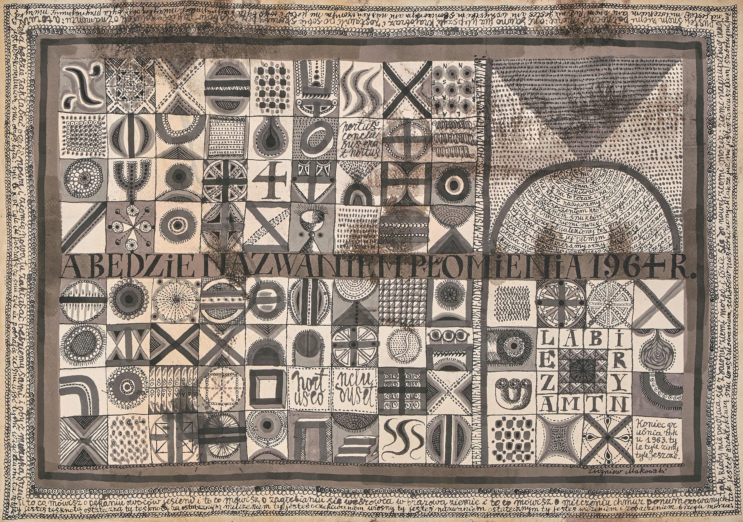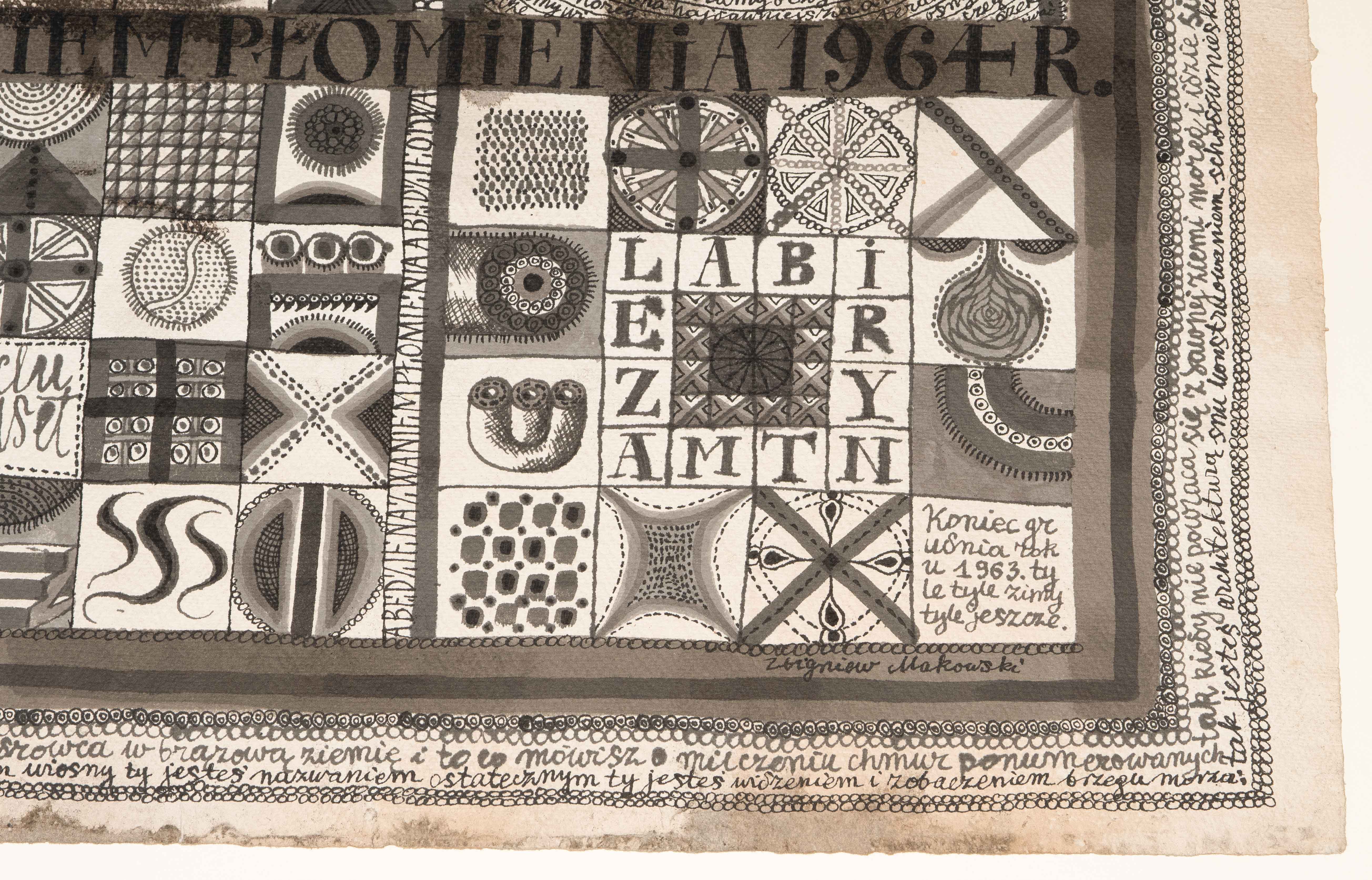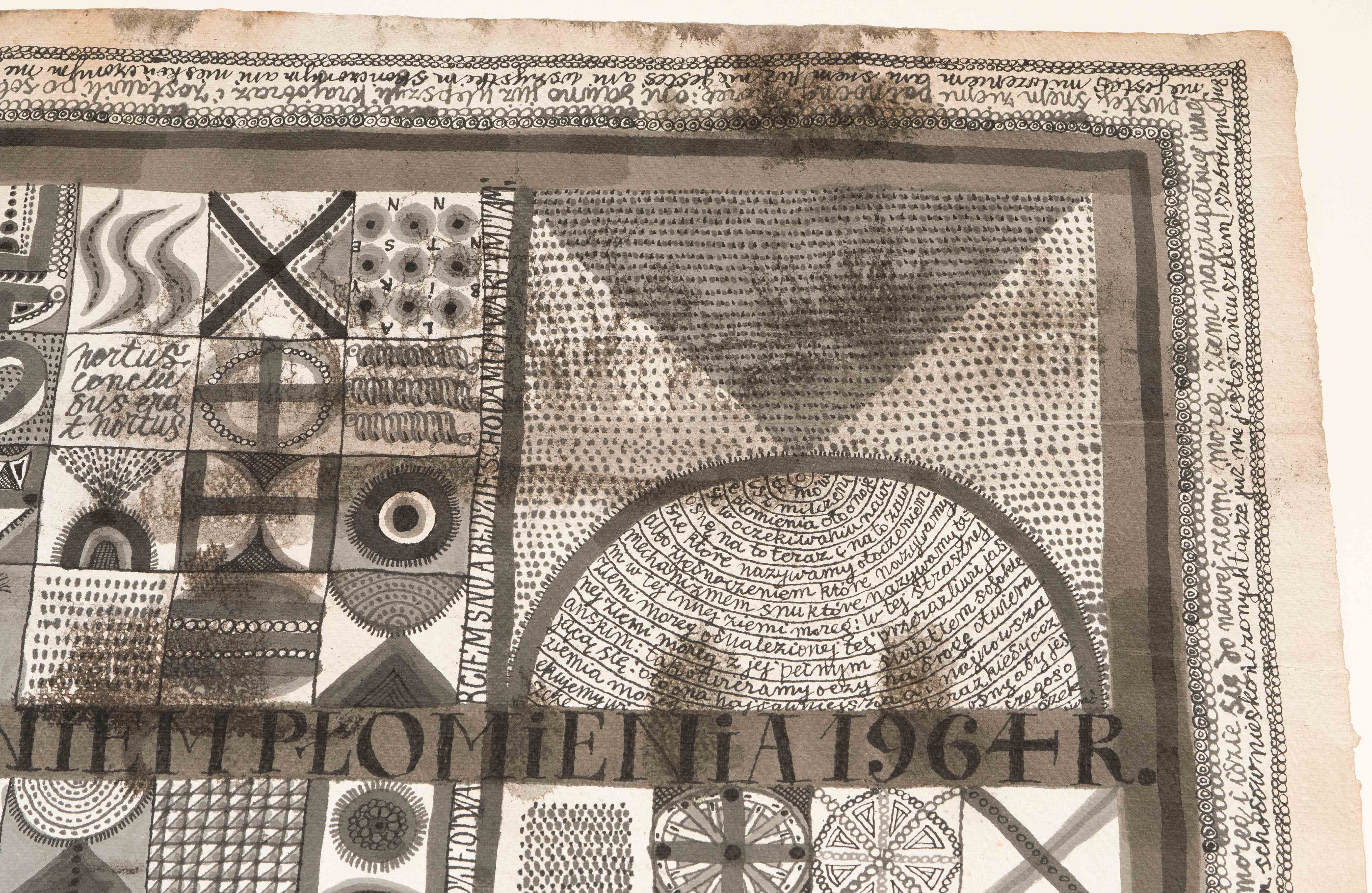 Ohne Titel. 1963. Tusche und Aquarell auf Papier. Unten rechts in Tusche signiert. Blattgrösse 57x81,5 cm. -Blatt leicht gebräunt. Blatt leicht gewellt. Ränder und Ecken leicht bestossen. Verso am oberen Rand partiell an Rückkarton montiert.
