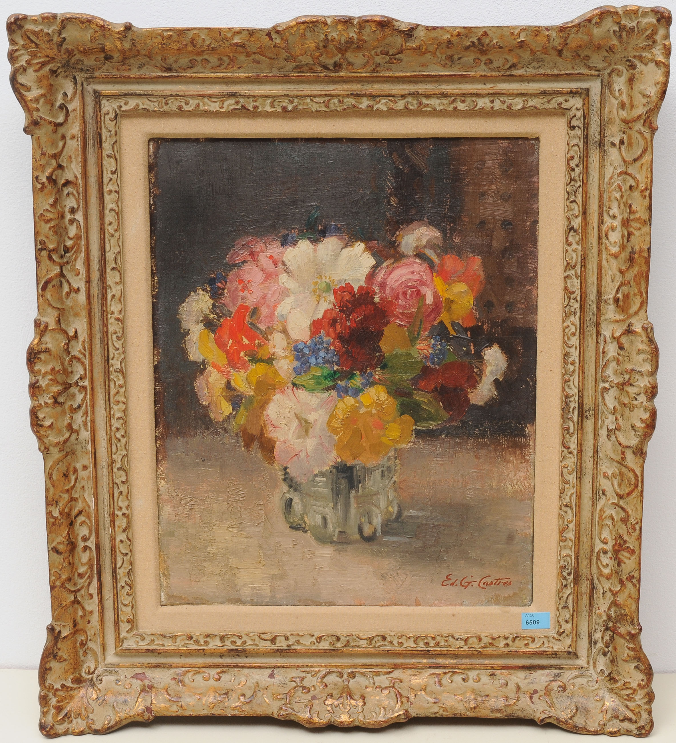 Blumenstillleben. Öl auf Leinwand. Unten rechts signiert. 42x33 cm.