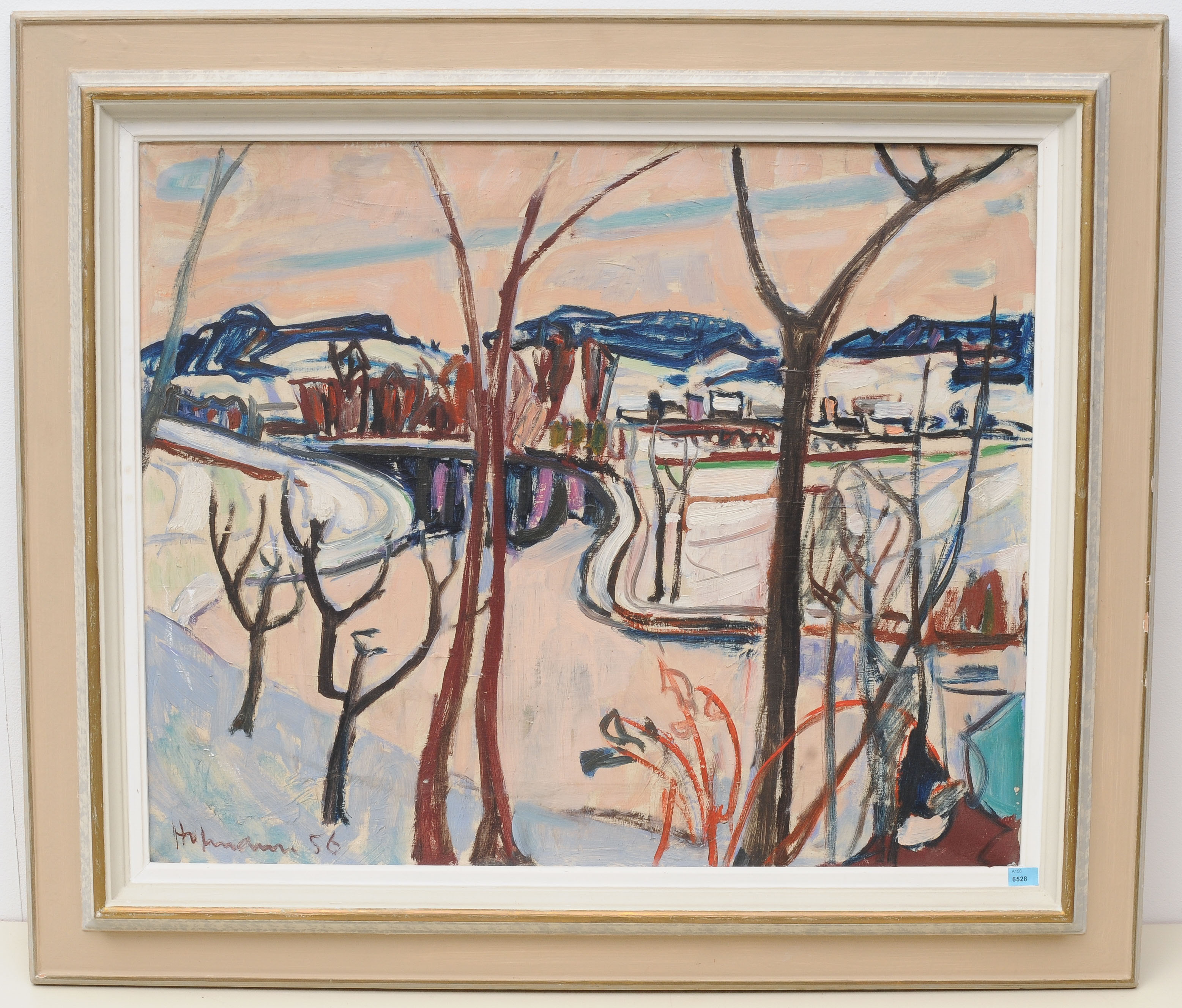 Winterlandschaft im Limatttal, 1956. Öl auf Leinwand. Unten links signiert und datiert. 60x73 cm.