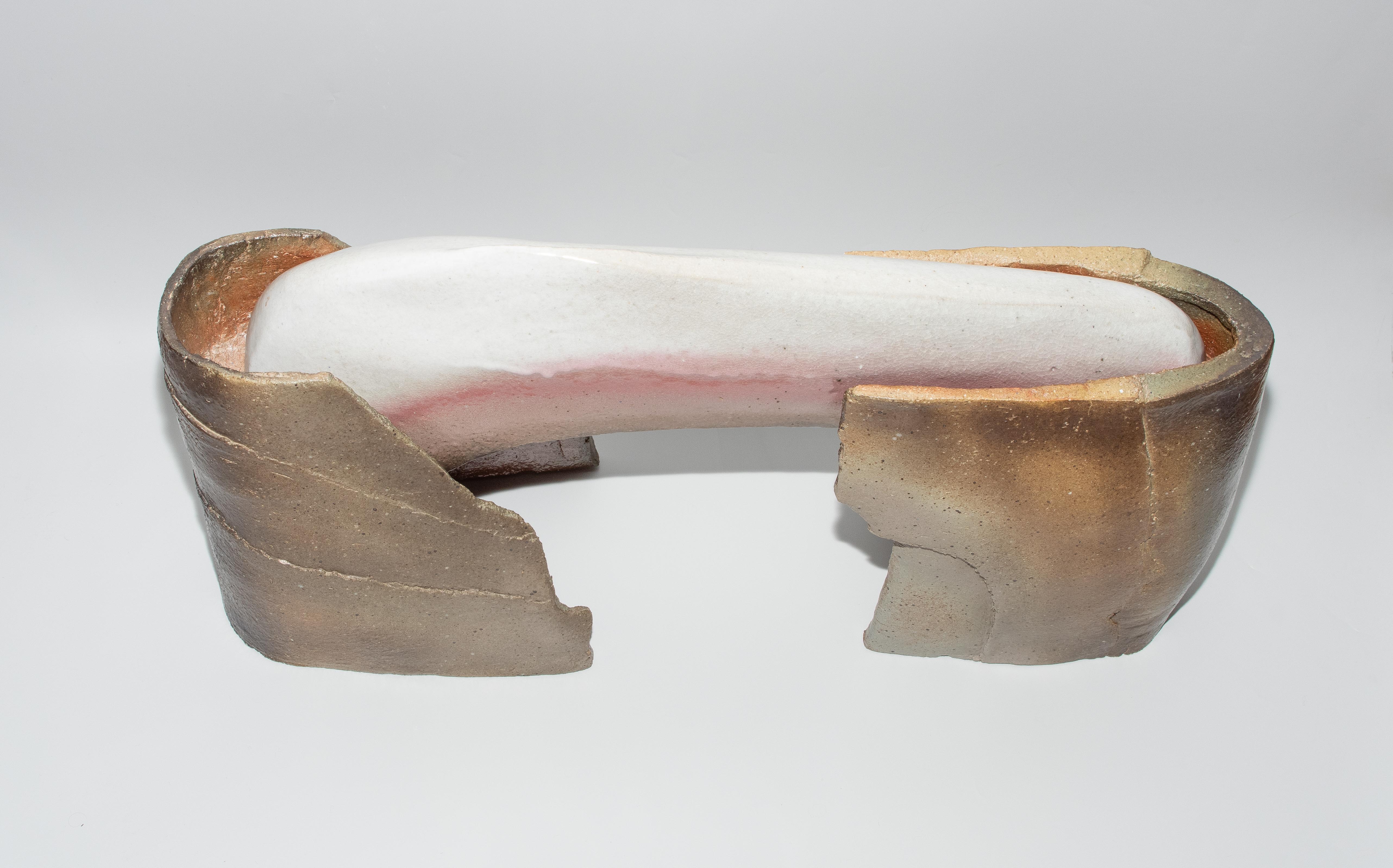 Skulptur. Keramik, glasiert. Aus drei Teilen zusammengesetzt. Bezeichnet: Künstlersignatur. H 43 cm; B 76 cm.