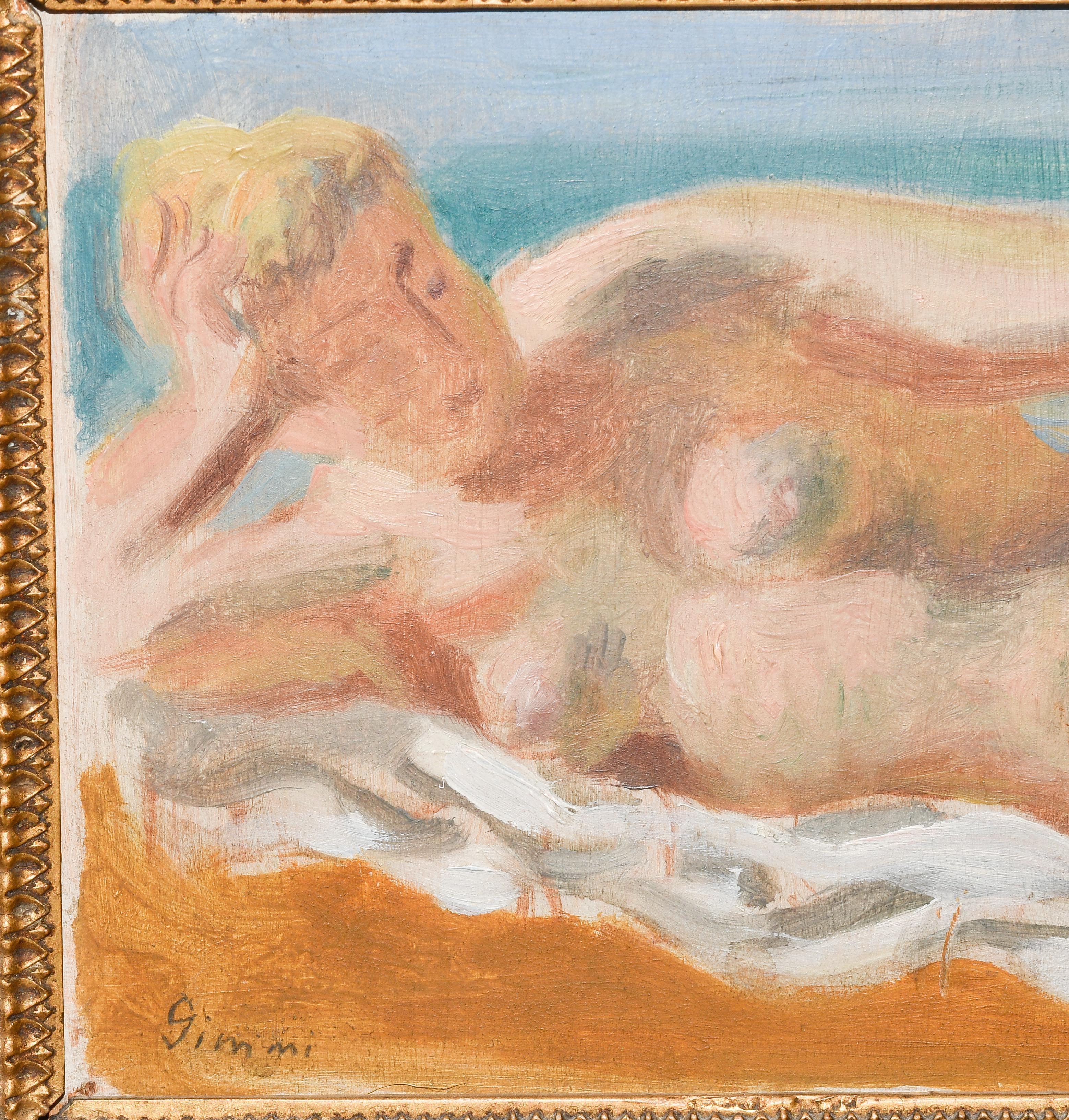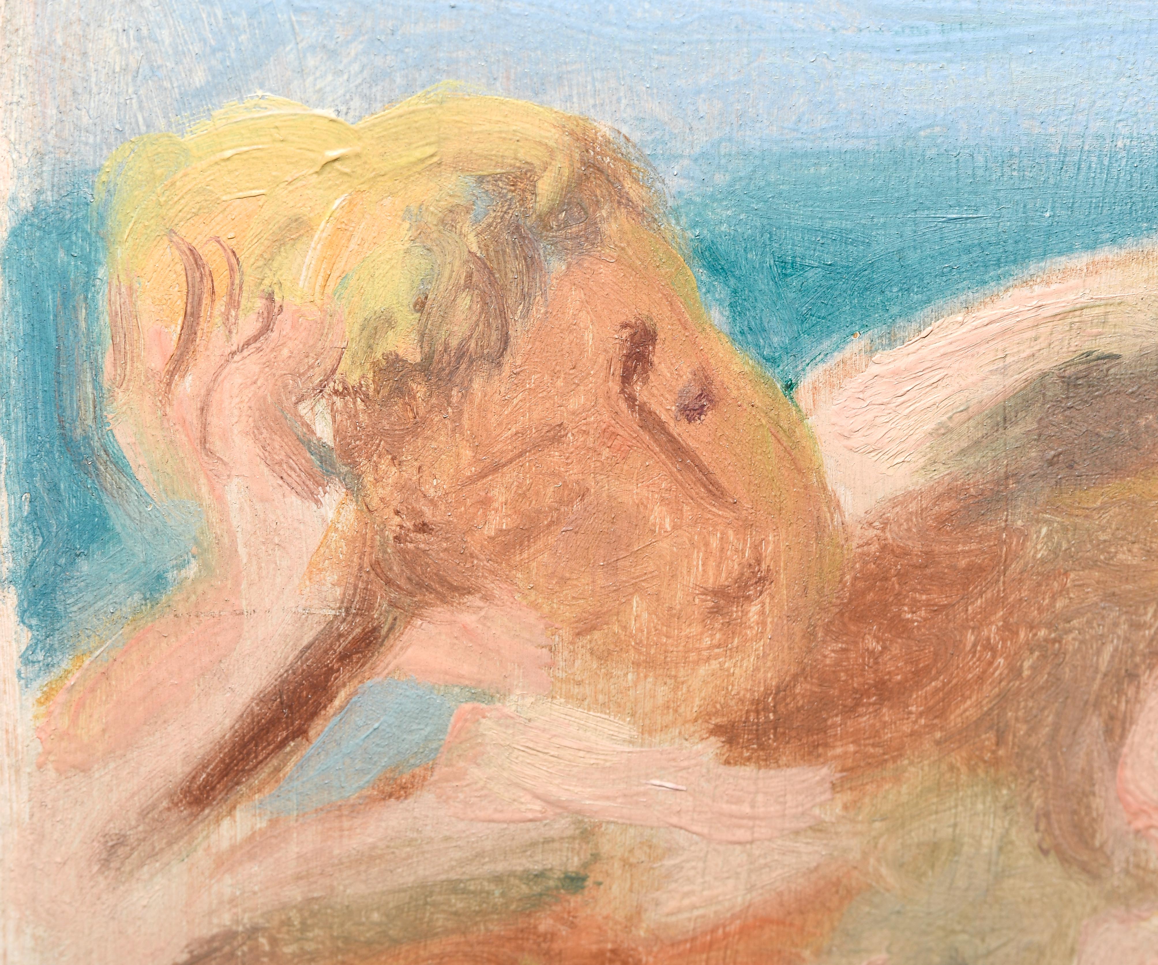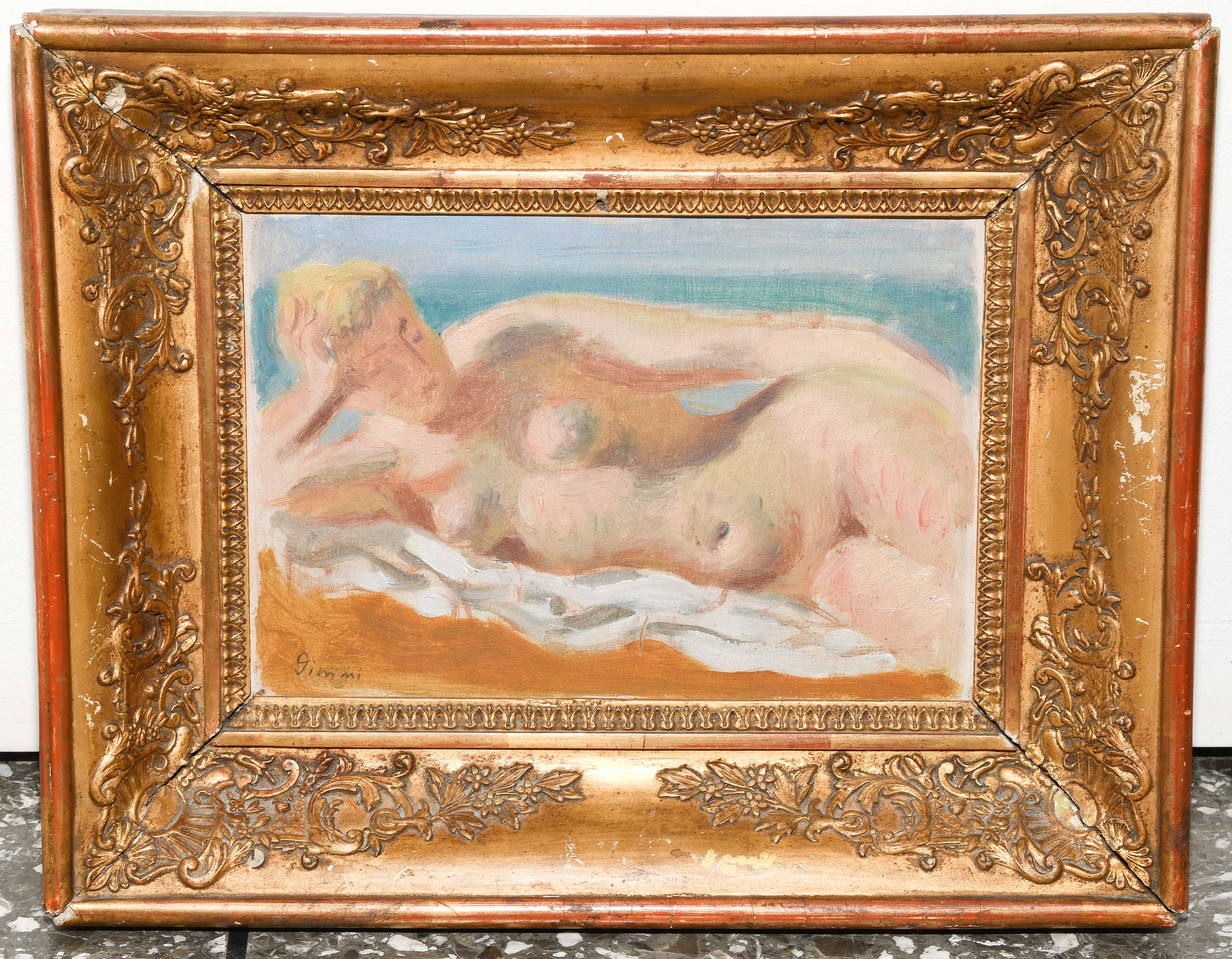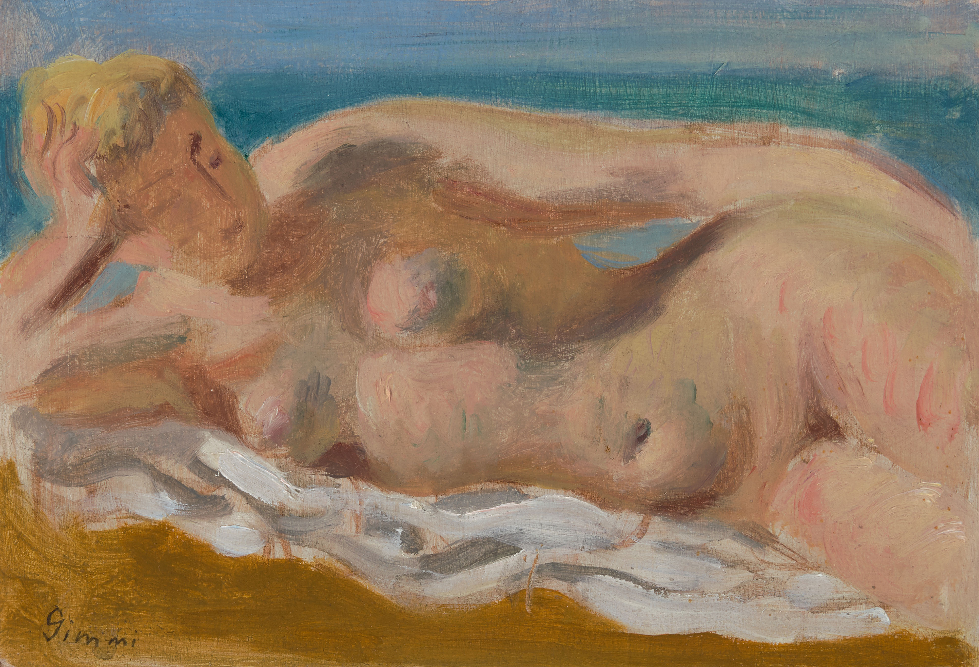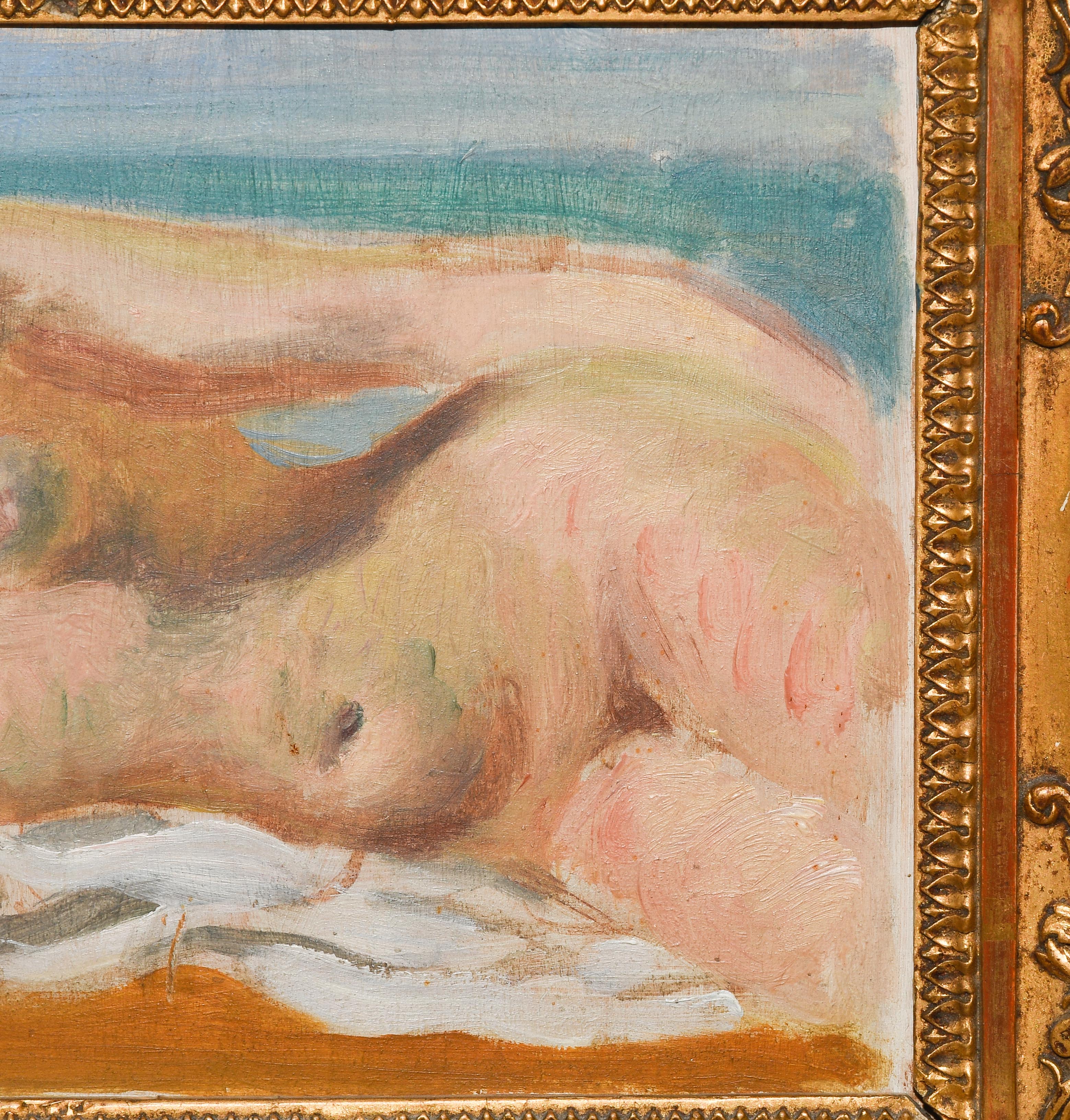 "Petit nu étendu", um 1925. Öl auf Leinwand über Holz. Unten links signiert und verso mit dem Etikett der Galerie Druet, Paris versehen. 14,5x20,5 cm.
