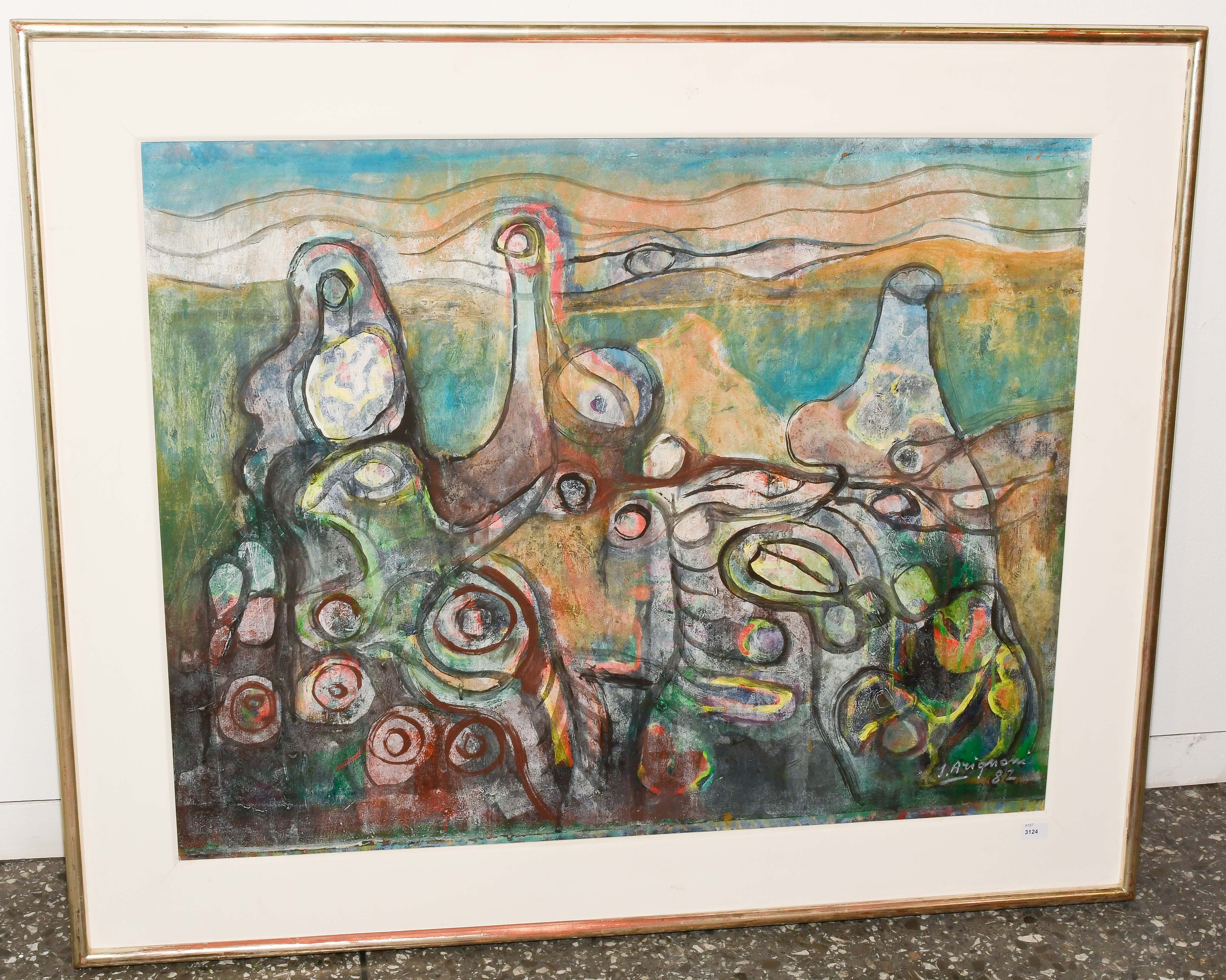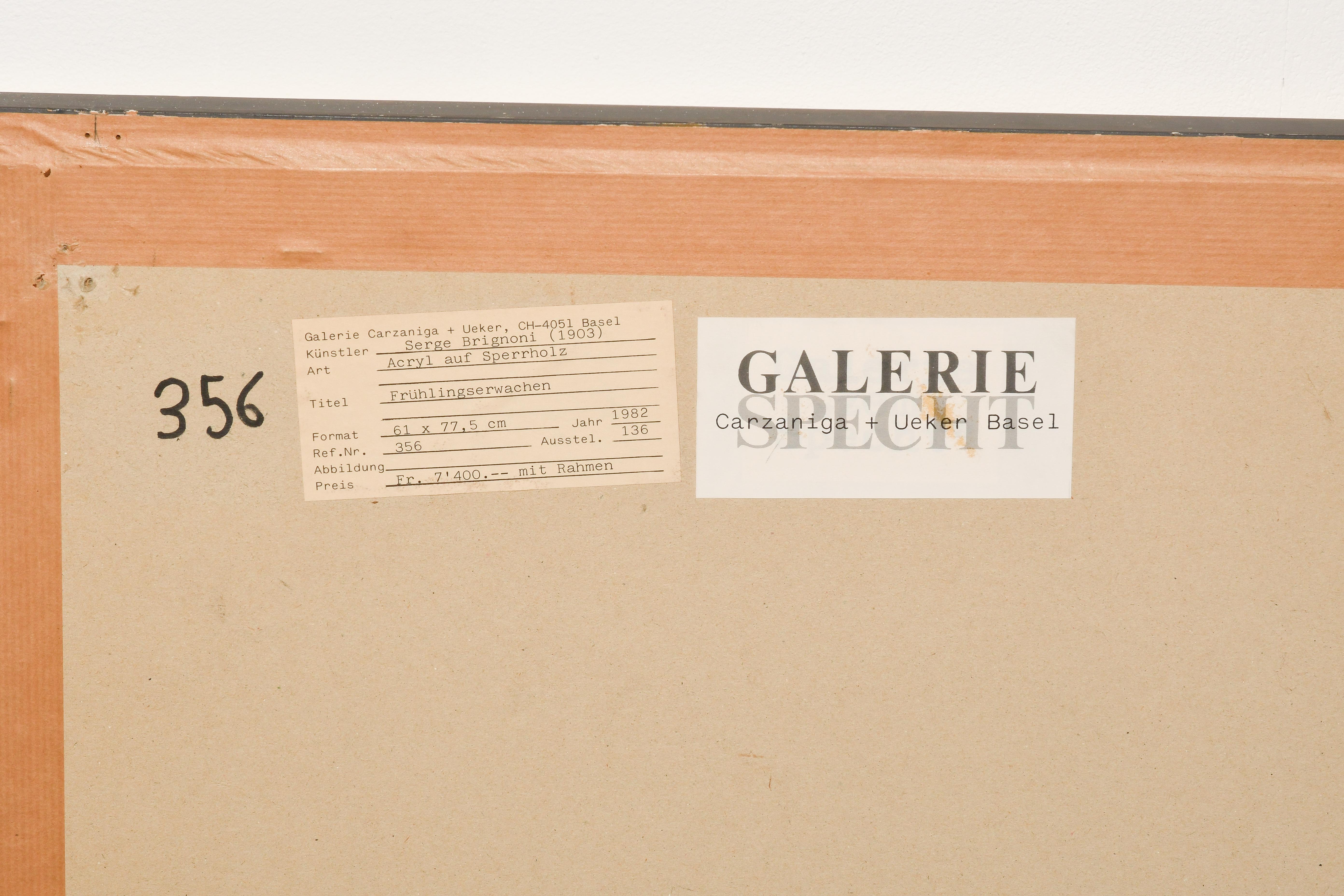 "Frühlingserwachen", 1982. Acryl auf Sperrholz. Unten rechts signiert und datiert, verso auf Galerienetikett bezeichnet. 61x77,5 cm.