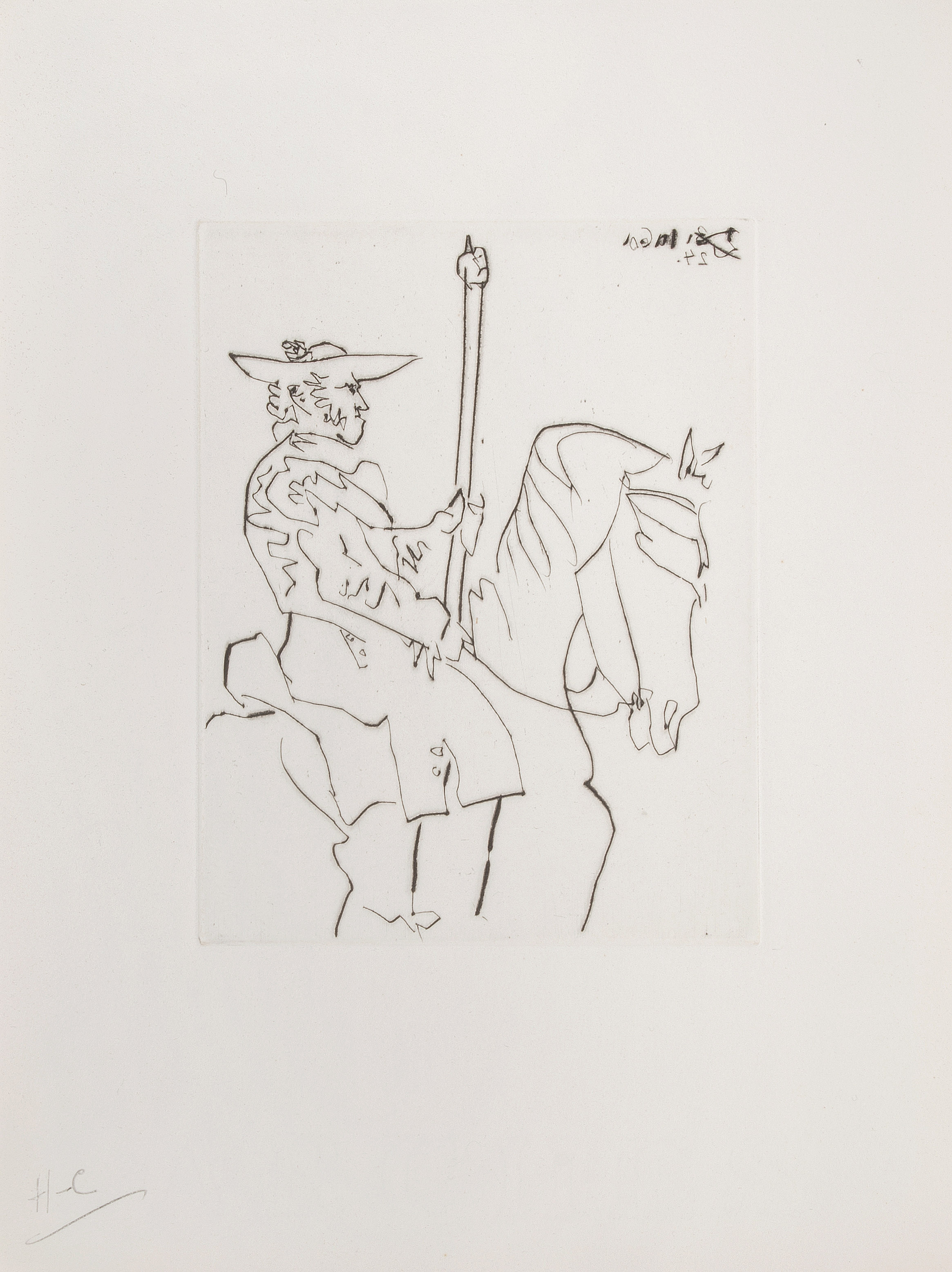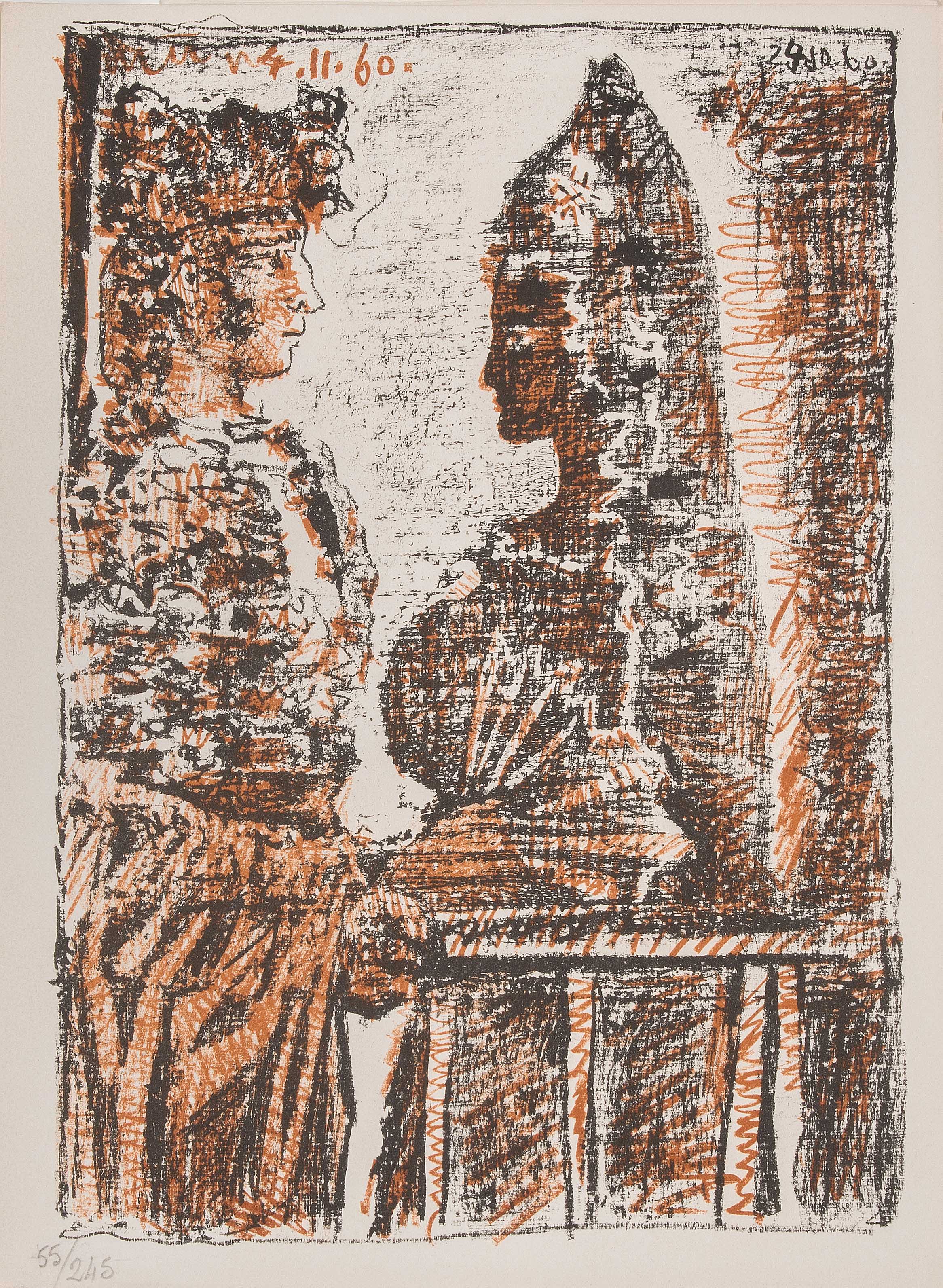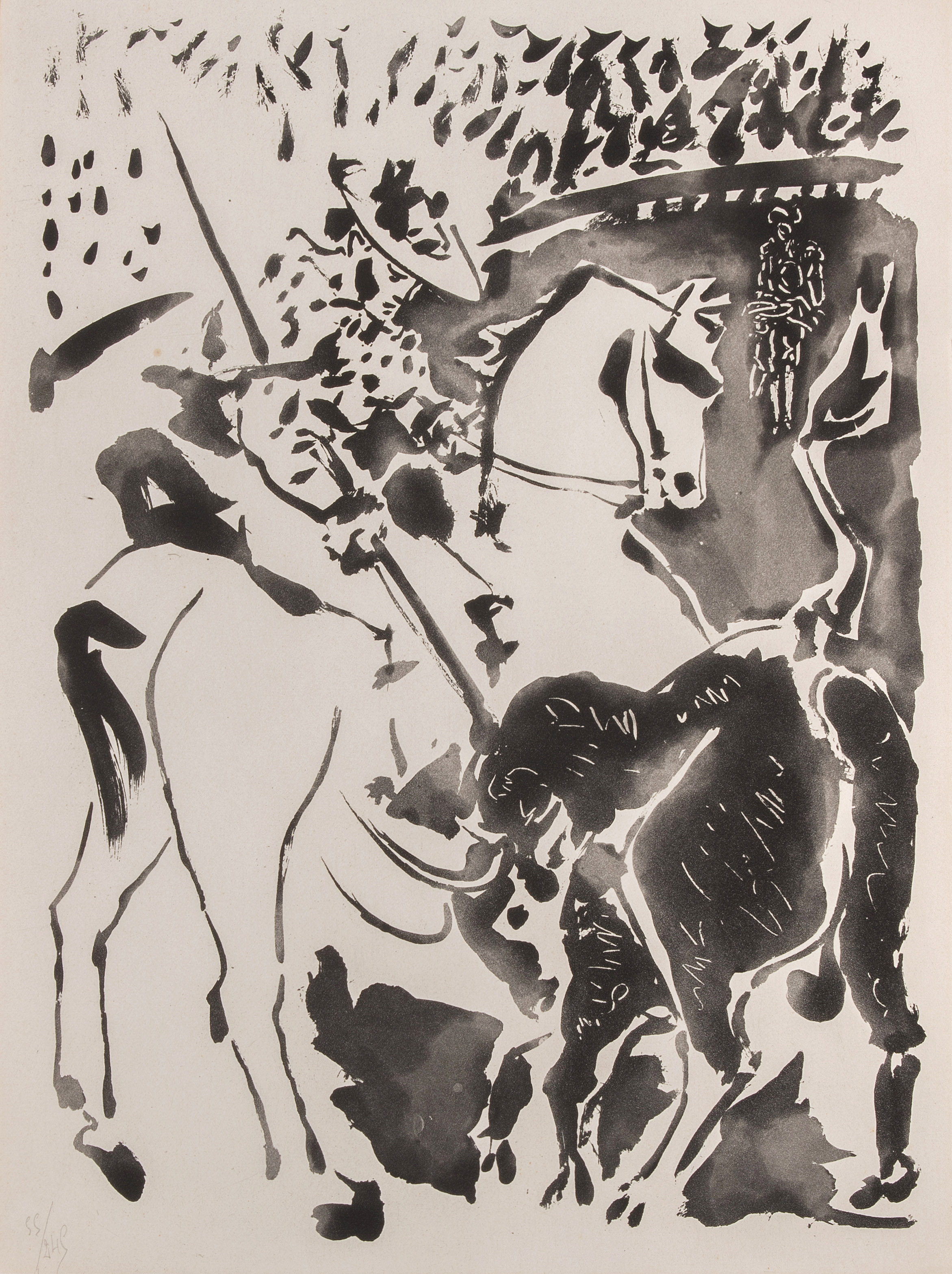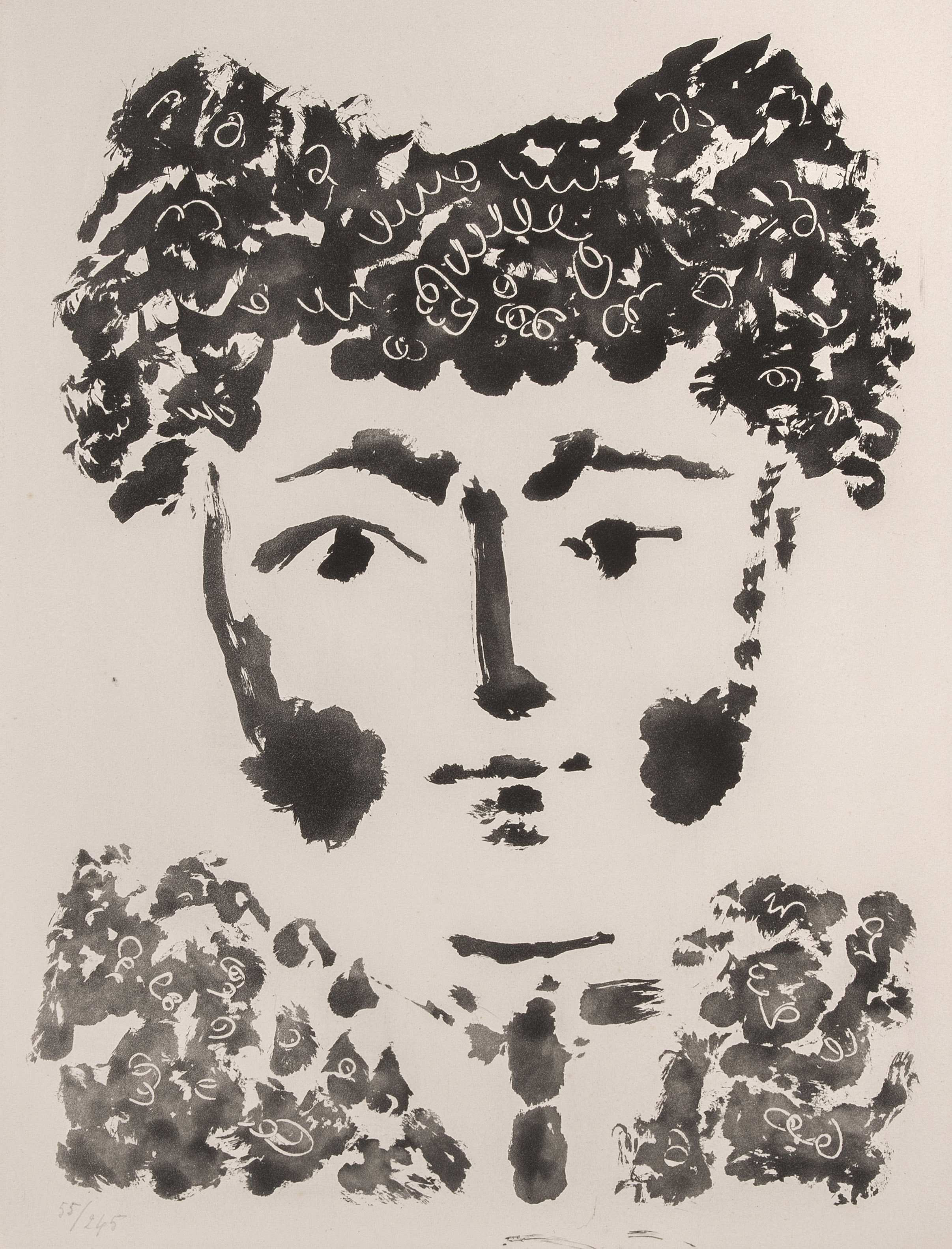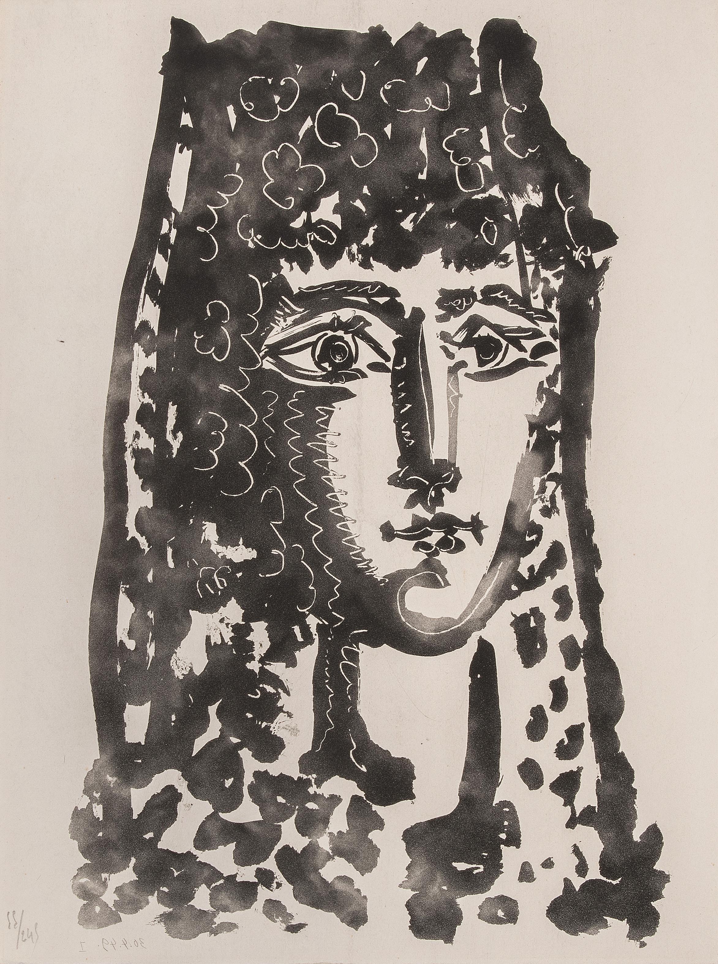 Le Carmen des Carmen. La Bibliothèque Française, 1949, Editeurs Français Réunis, 1964. Portfolio illustriert mit 1 Kaltnadelradierung, 3 Aquatintaradierungen und 1 Farblithographie von Pablo Picasso. Expl. 55 von 245 (275), Kaltnadelradierung mit abweichender Nummerierung (H-C) im Impressum von Picasso und Aragon signiert. Lose Lagen in Original-Umschlag und Original- Kassette. Teilweise leichte papierbedingte Bräunung, insgesamt schöne Erhaltung dieses seltenen Werkes.