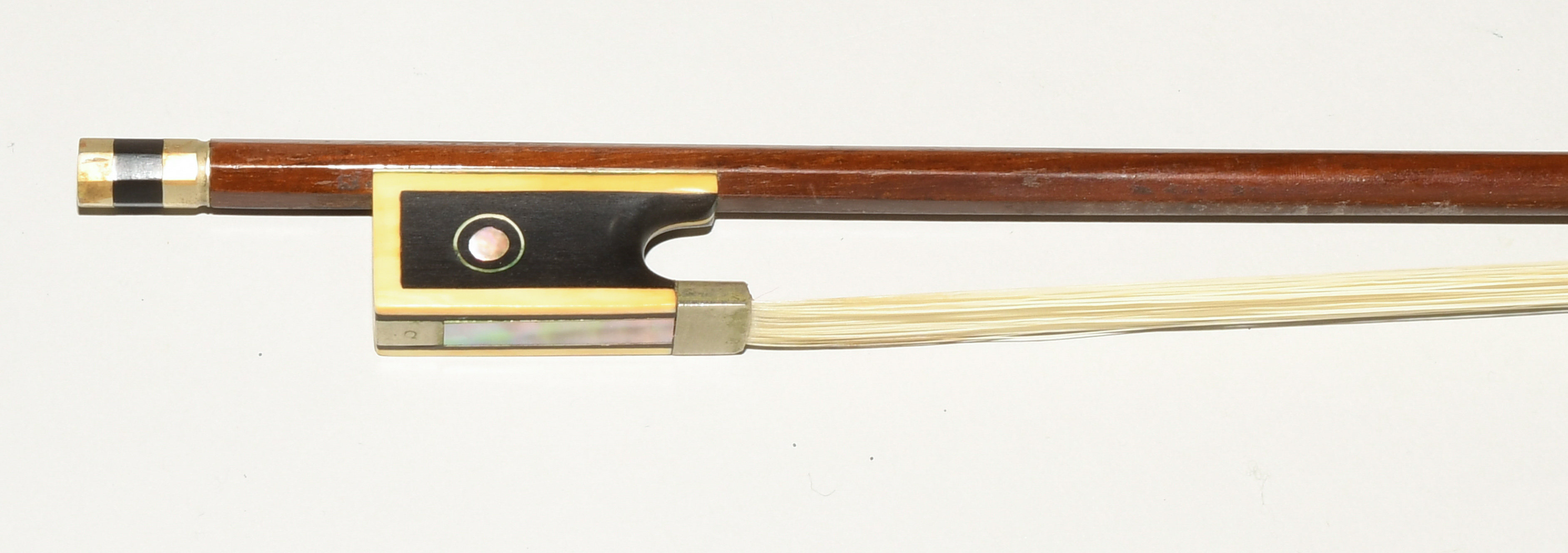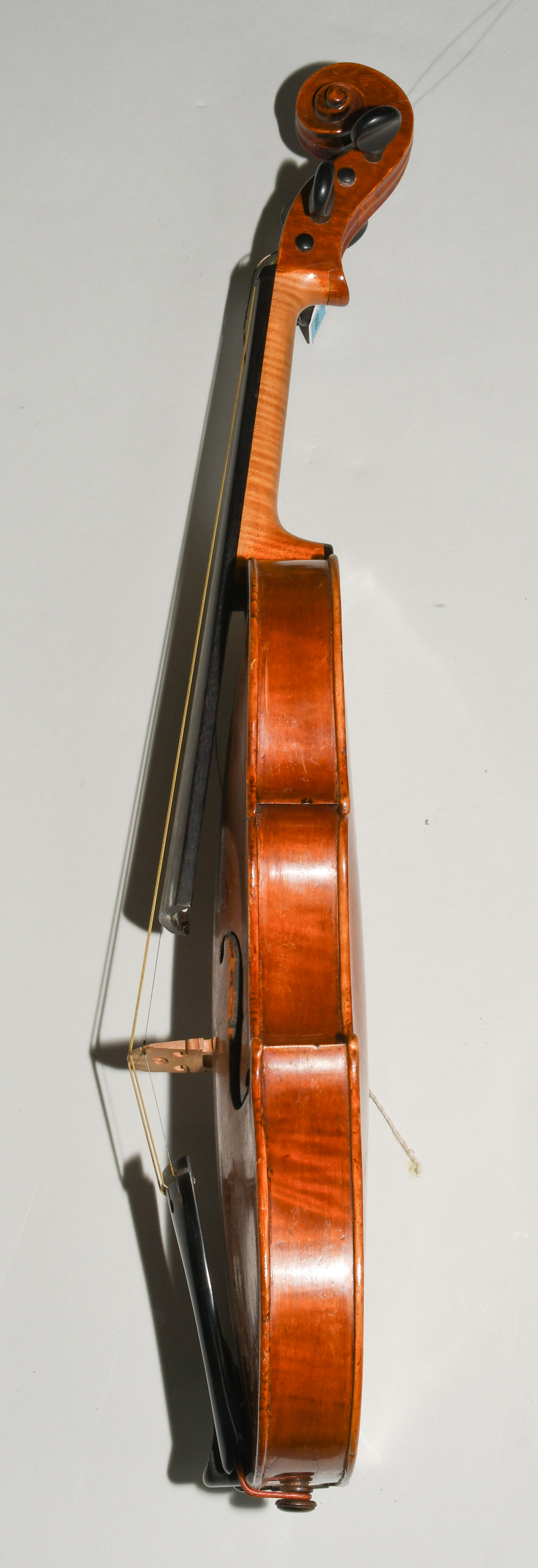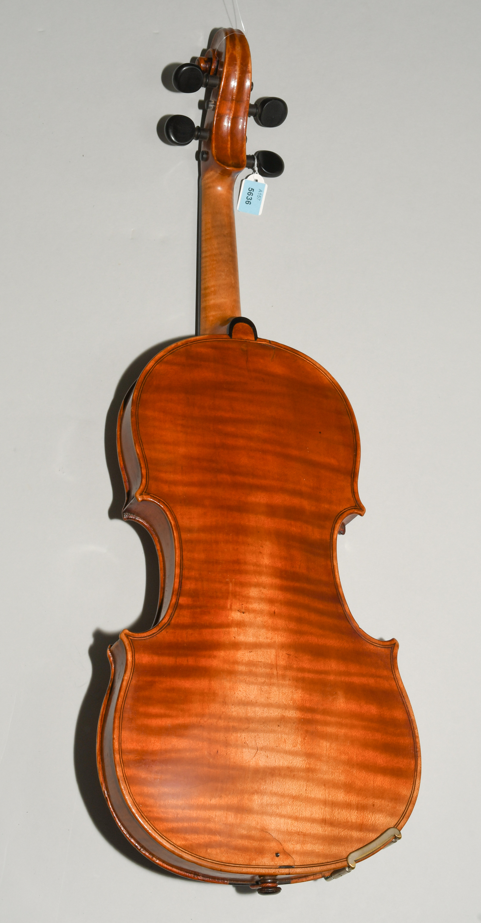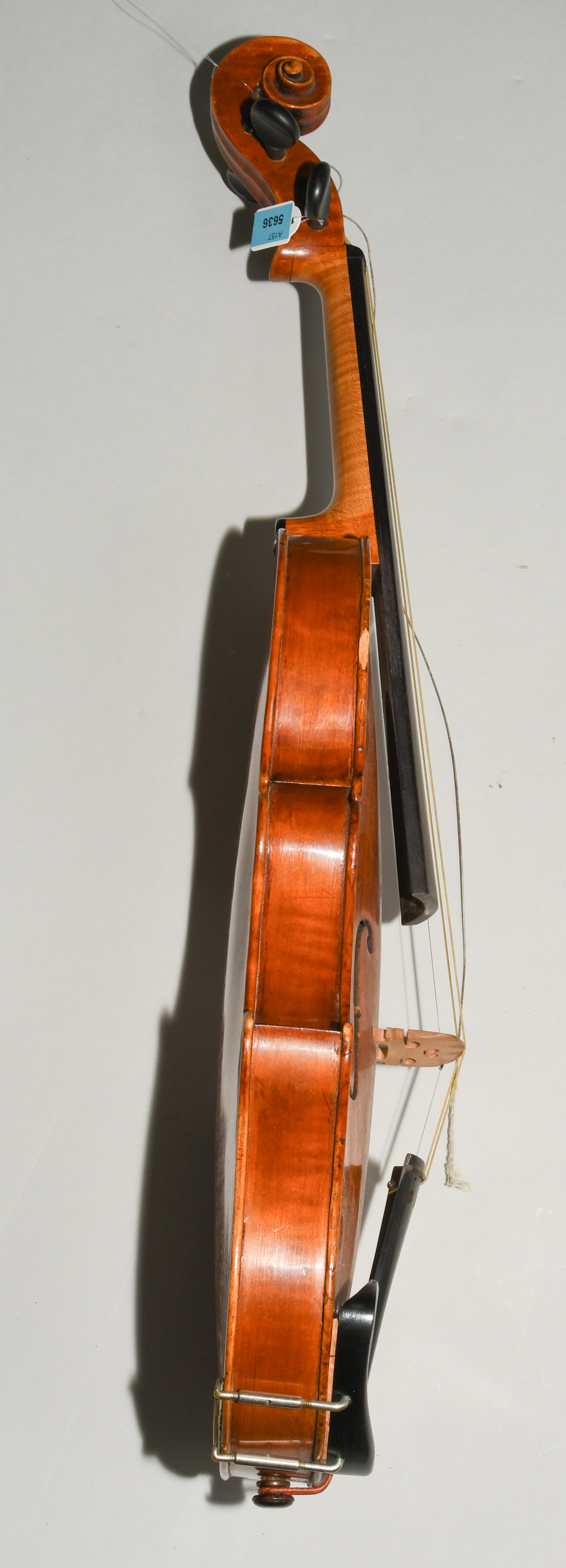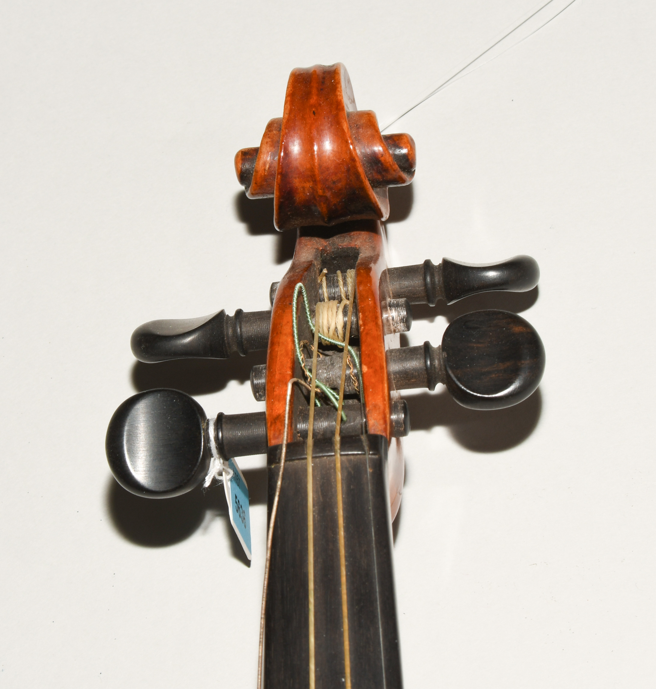 Deutsch, Mitte 19.Jh. Auf Etikett bezeichnet: "Mathias Neuner, Geigenmacher in Mittenwald, 1843, Nro.138". L 60 cm. Dazu Bogen (73 cm), Geigenkasten (77,5 cm) und Zubehör.