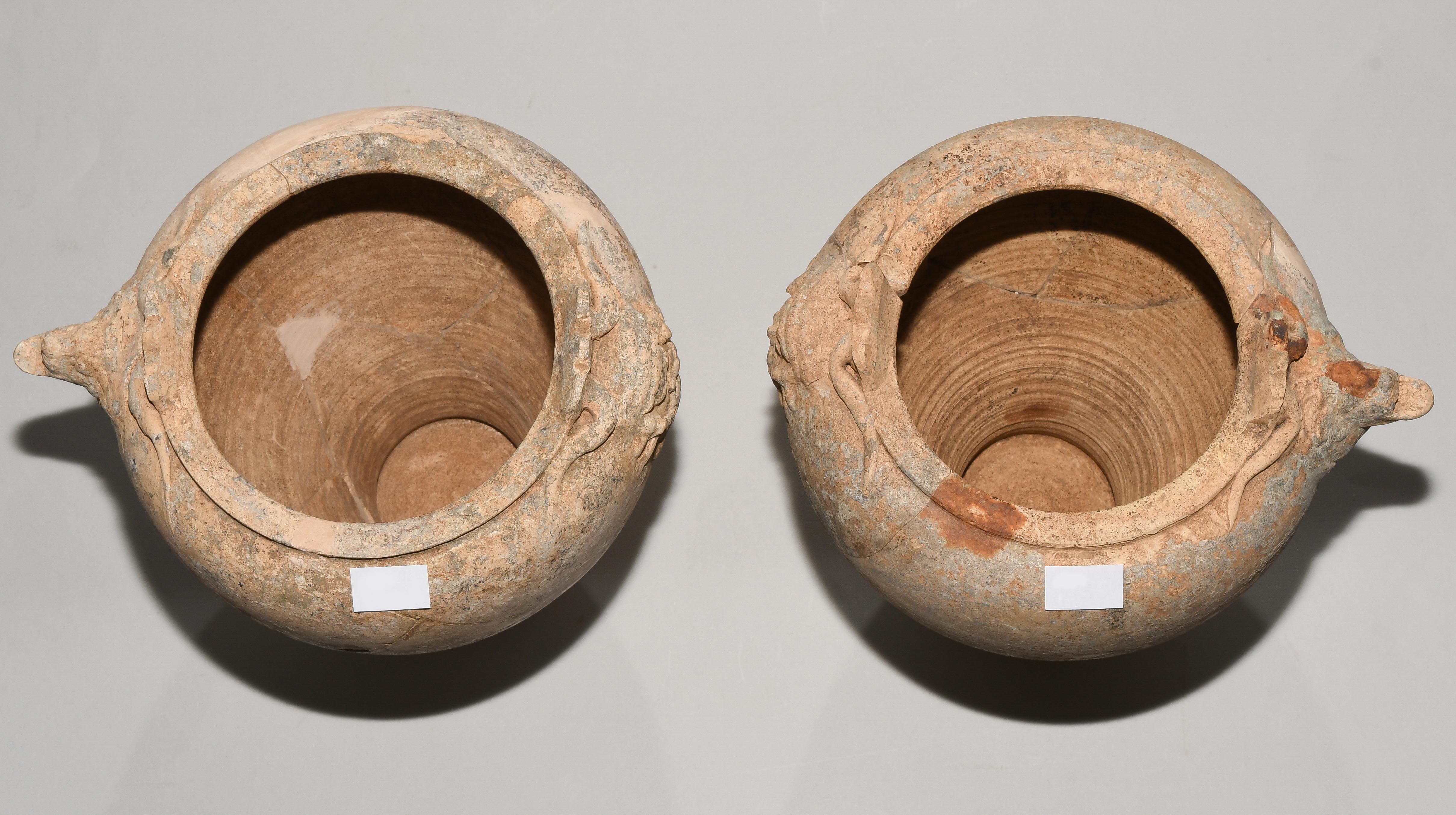 6111. 1 Paar Terrakotta Situlae