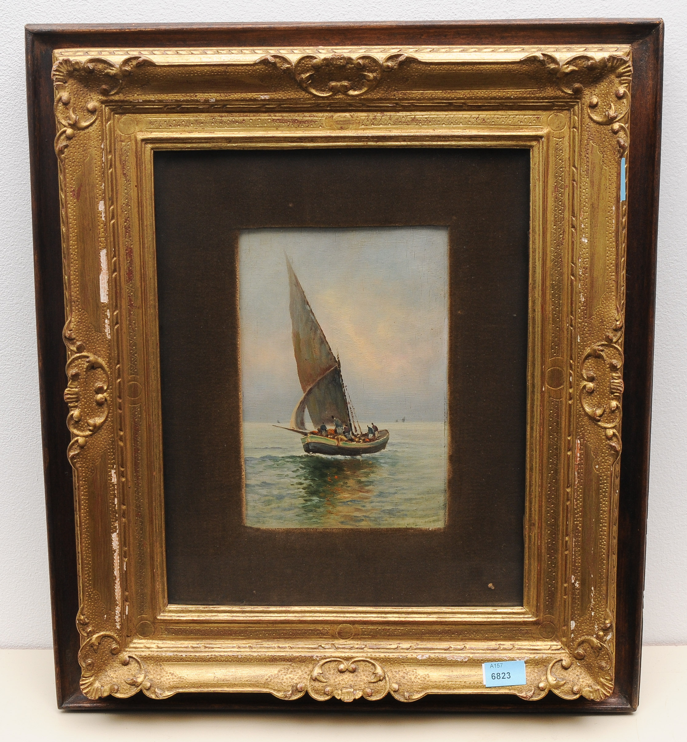 Fischerboot. Öl auf Holz. Unten rechts signiert. 20,2x13 cm.