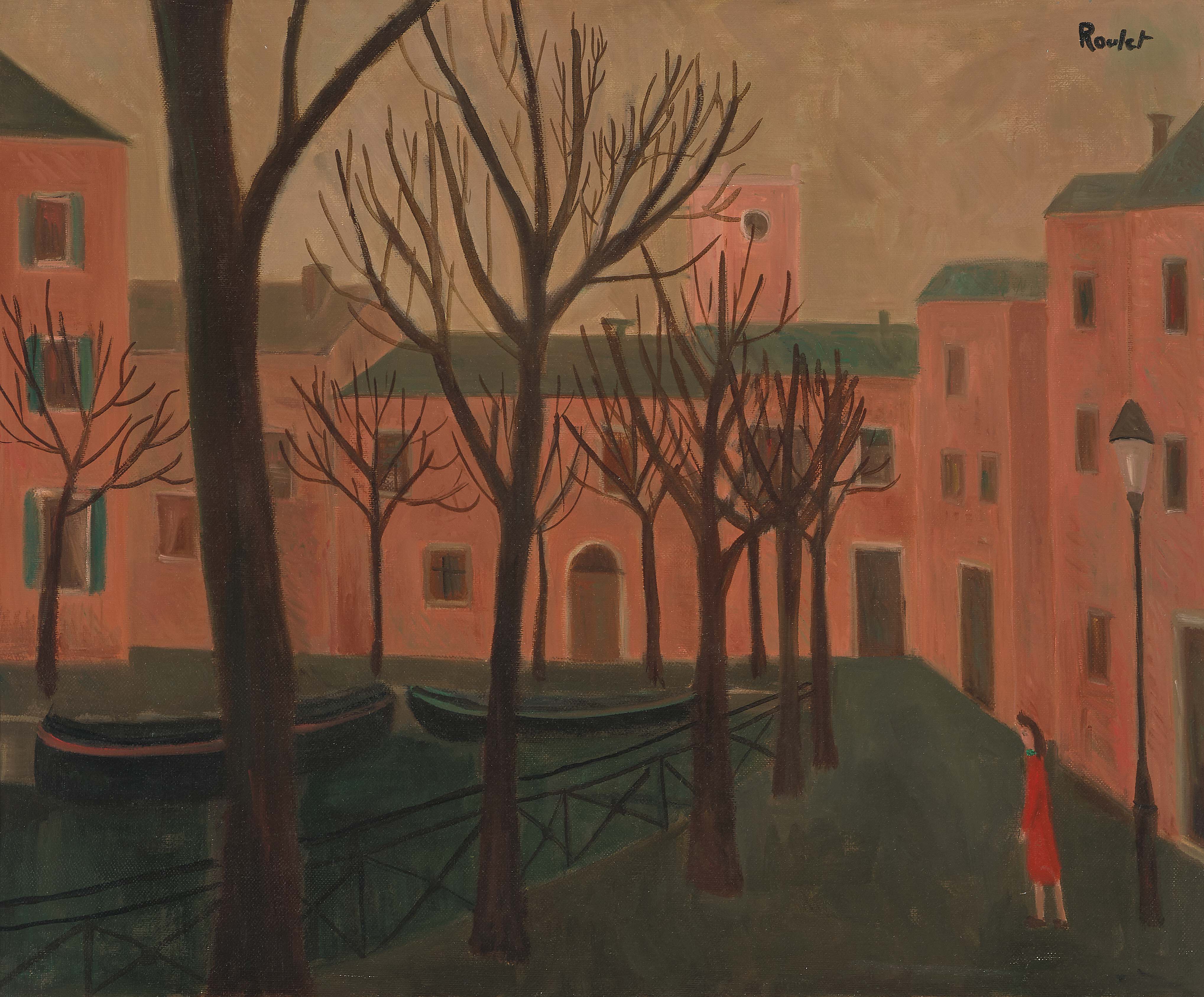 "Le canale", 1967. Öl auf Leinwand. Oben rechts signiert, verso auf Keilrahmen bezeichnet und datiert. 51x60 cm.