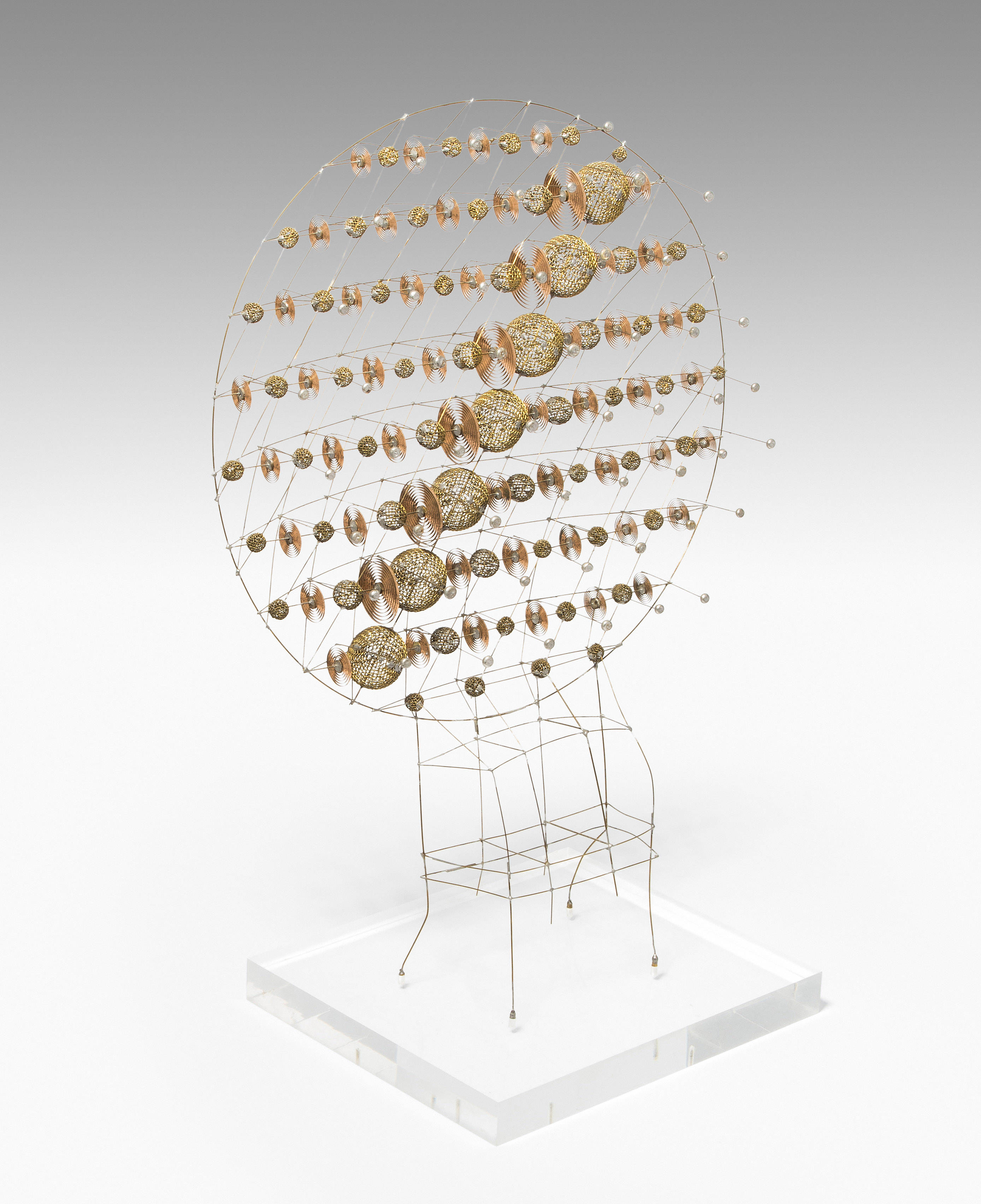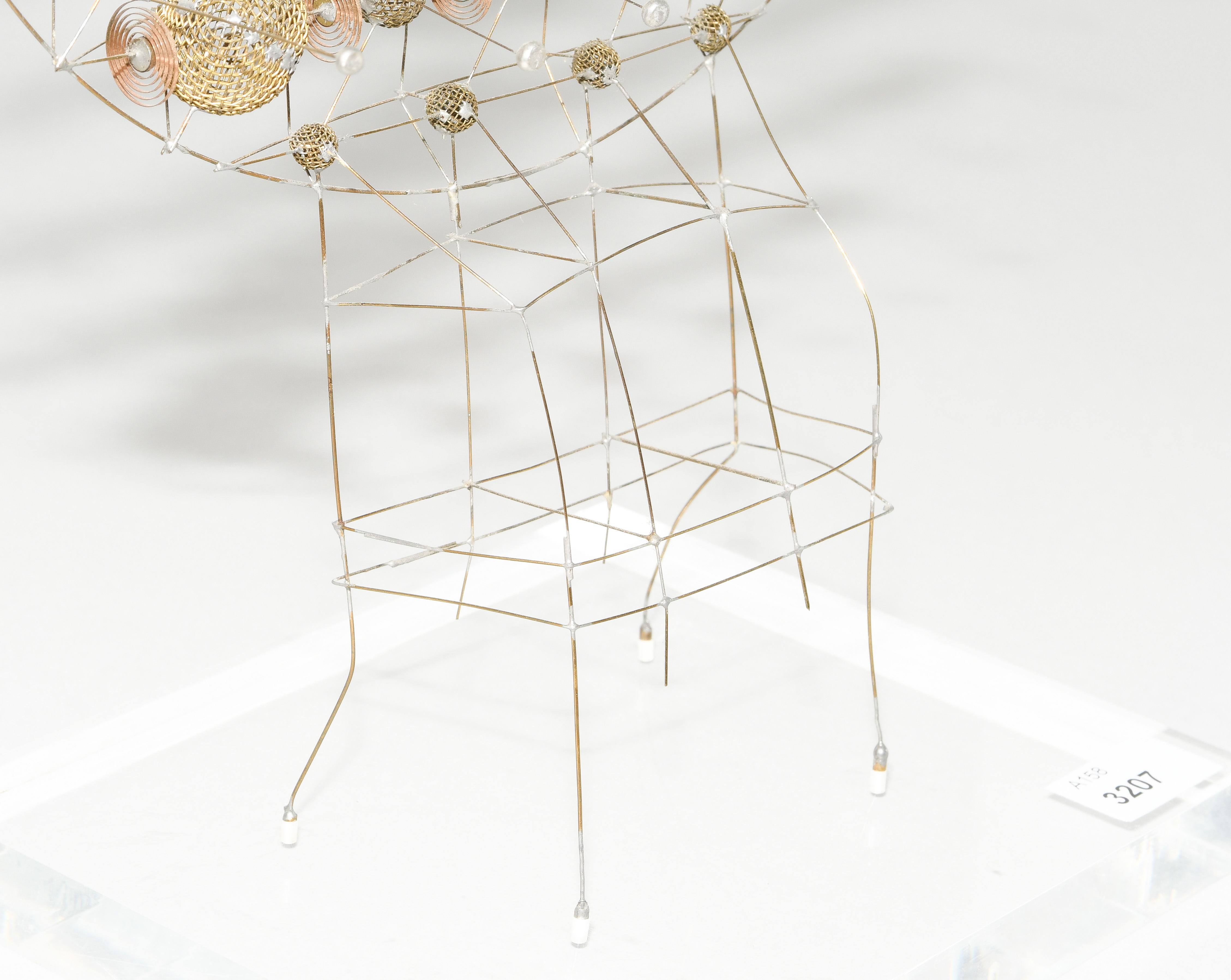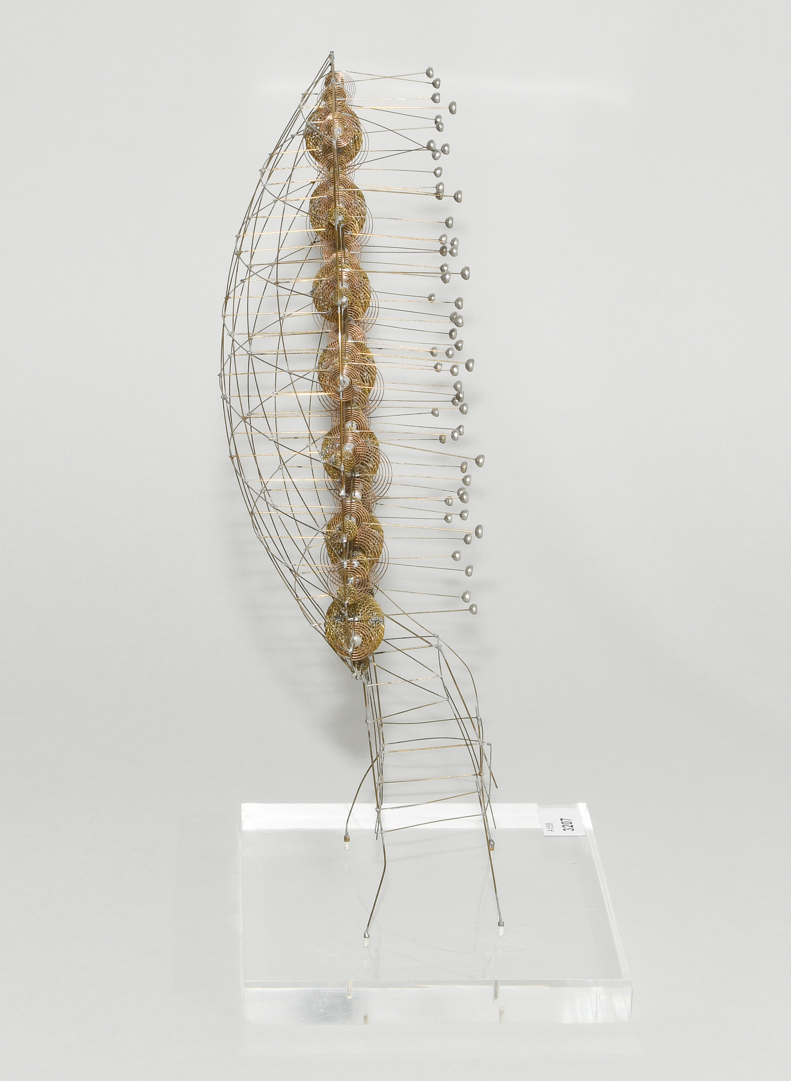 "Kleiner Bruder". Messing und Phosphorbronze. Höhe 28,5 auf Plexiglassockel 30 cm. -Am Fuss eine gelöste, gelötete Stelle. Dadurch leichte Schieflage.