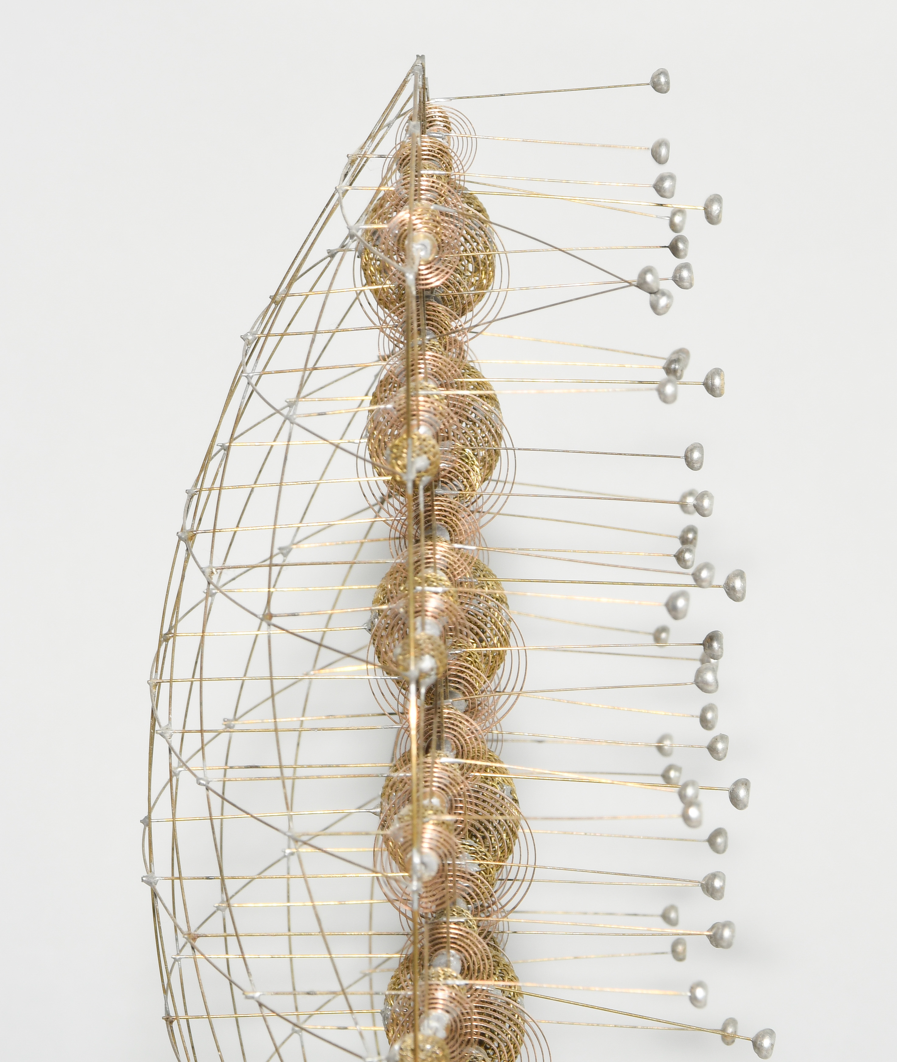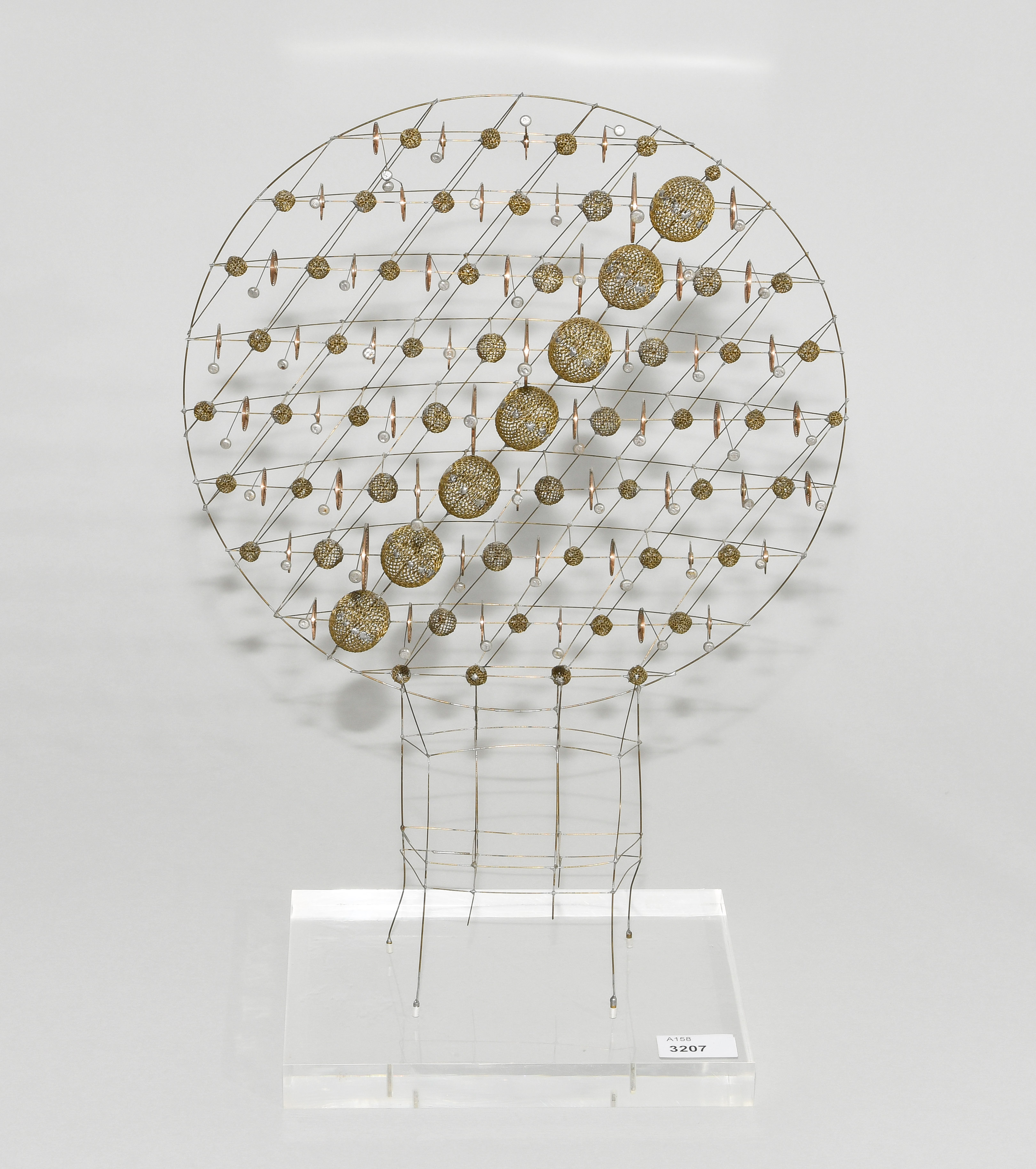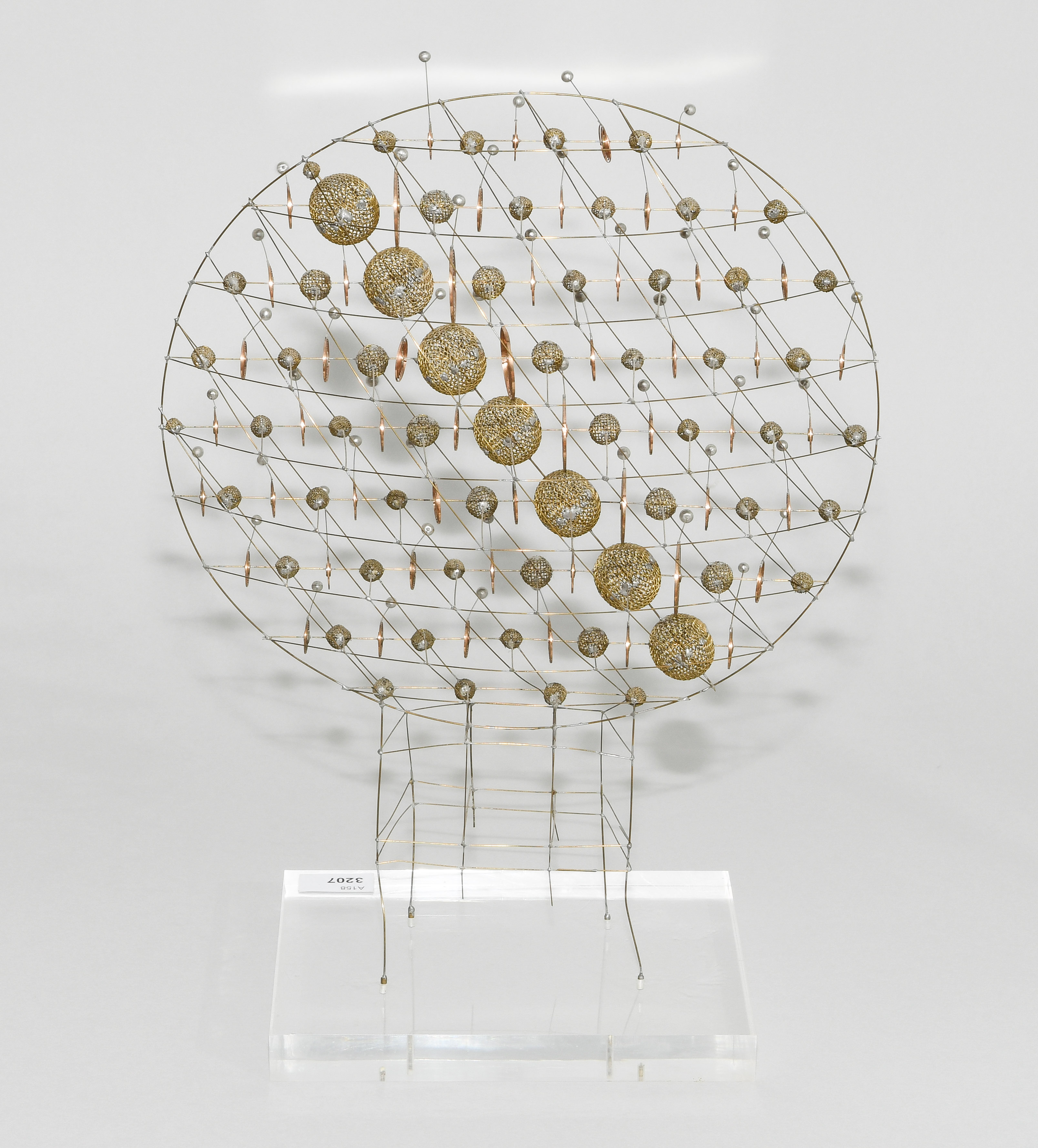 "Kleiner Bruder". Messing und Phosphorbronze. Höhe 28,5 auf Plexiglassockel 30 cm. -Am Fuss eine gelöste, gelötete Stelle. Dadurch leichte Schieflage.