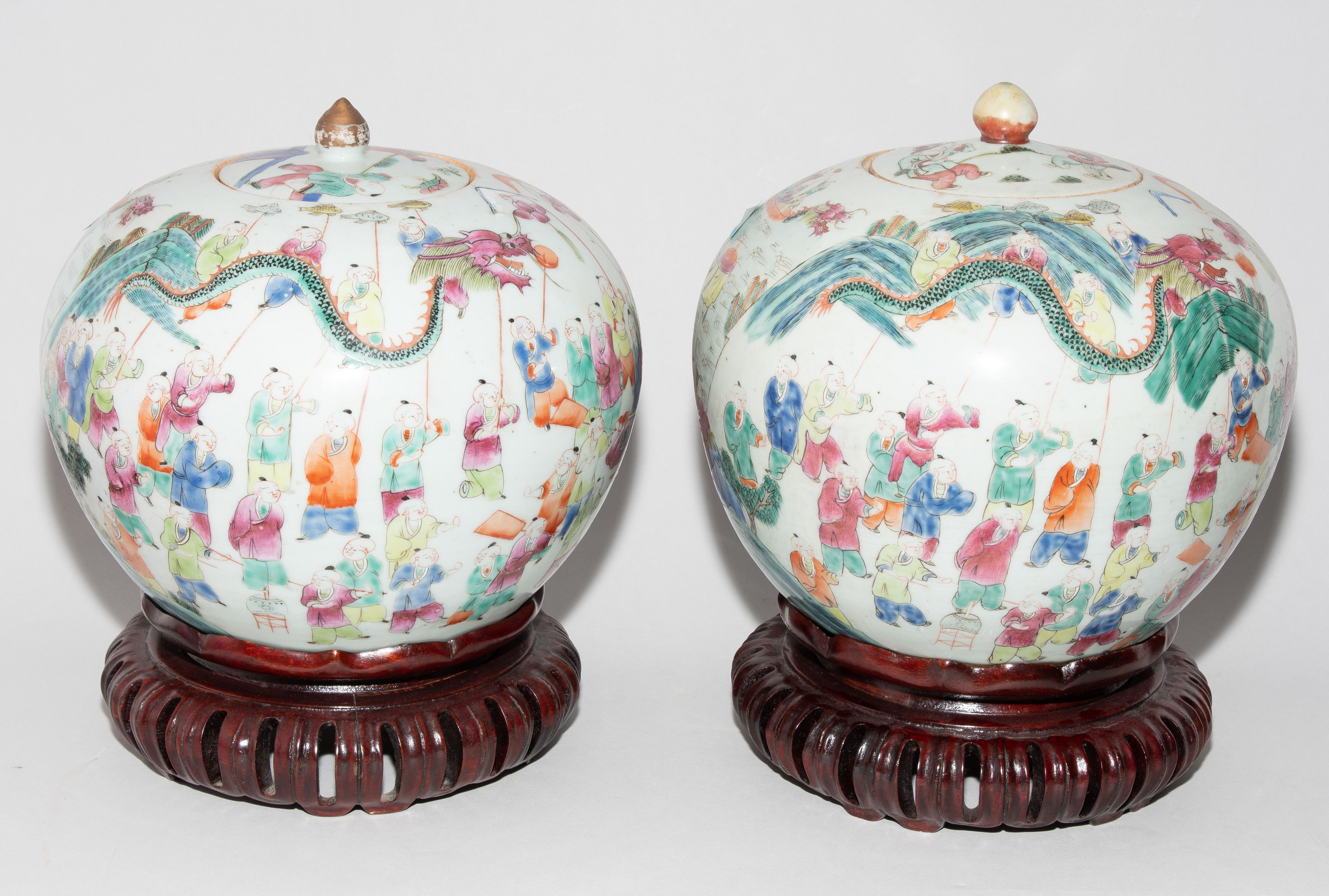 China, 20.Jh. Porzellan. Polychrom bemalt mit Szenen des Drachenfestes. H 20 cm
