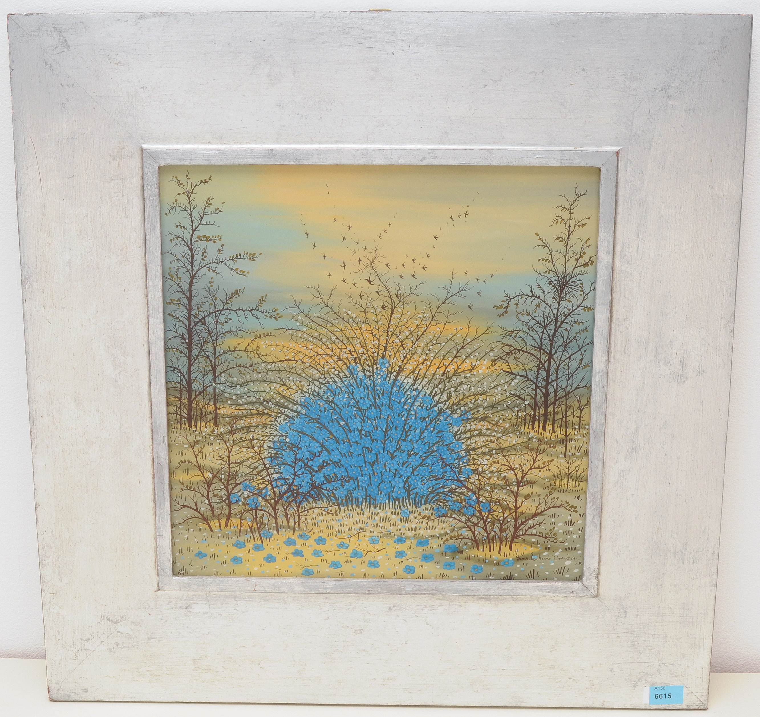 Der blaue Busch. Hinterglasmalerei. Unten rechts signiert. 30x30 cm.
