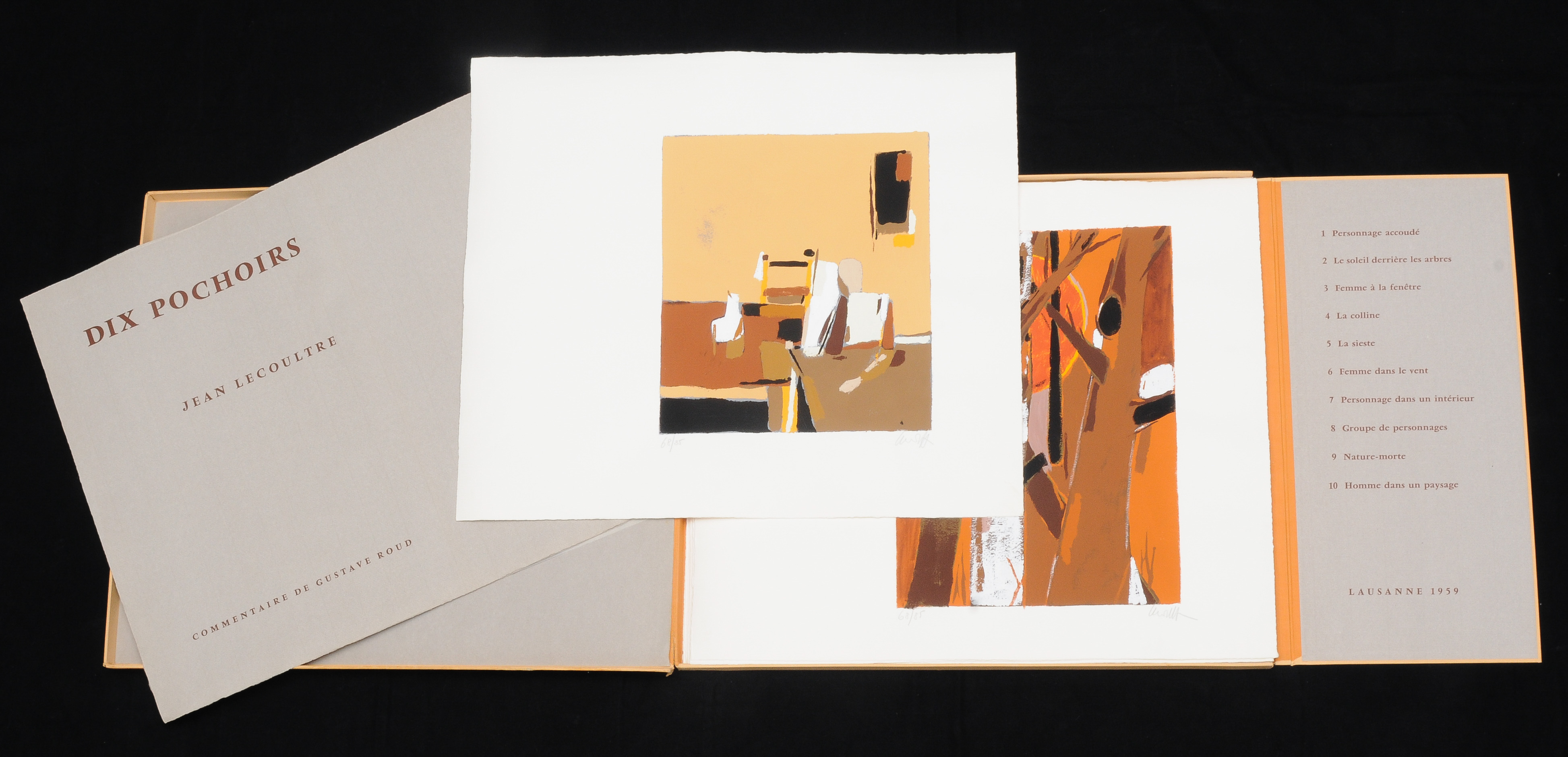 "Dix Pochoirs". 1959. 10 Farbpochoirs. 68/85. Alle unten rechts signiert. In papierbezogener Kassette. Mit Kommentar von Gustave Roud. 51x60 cm.