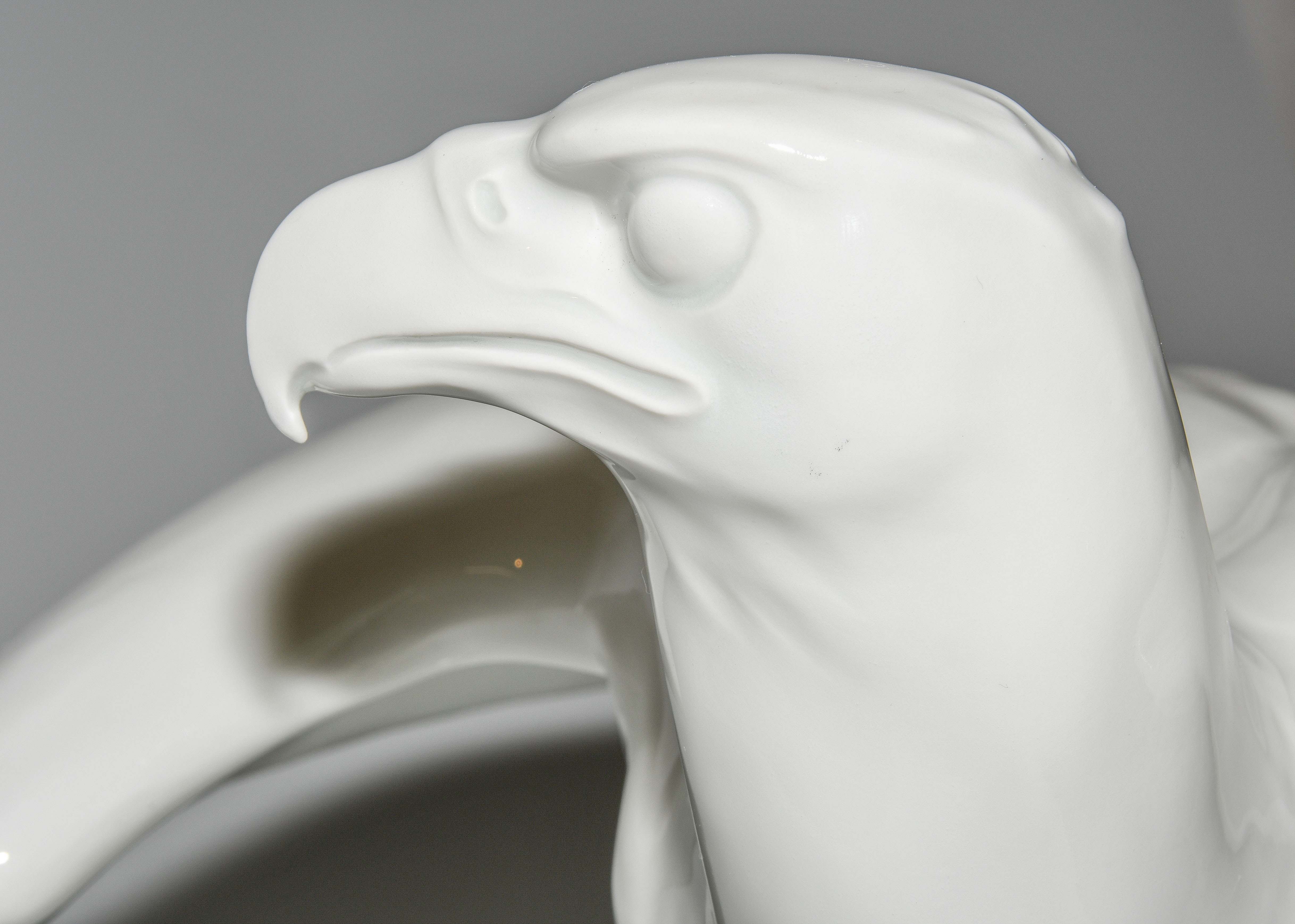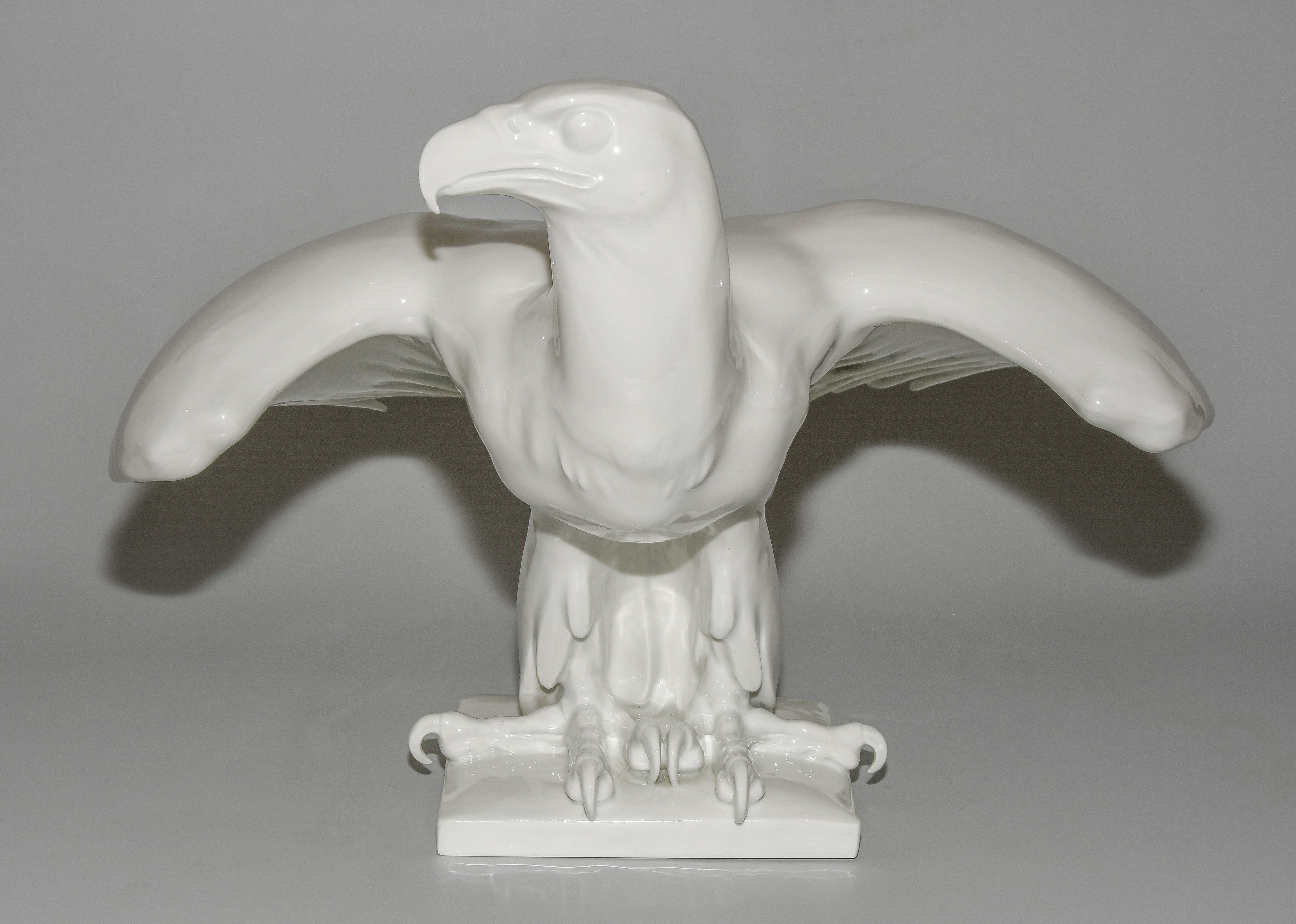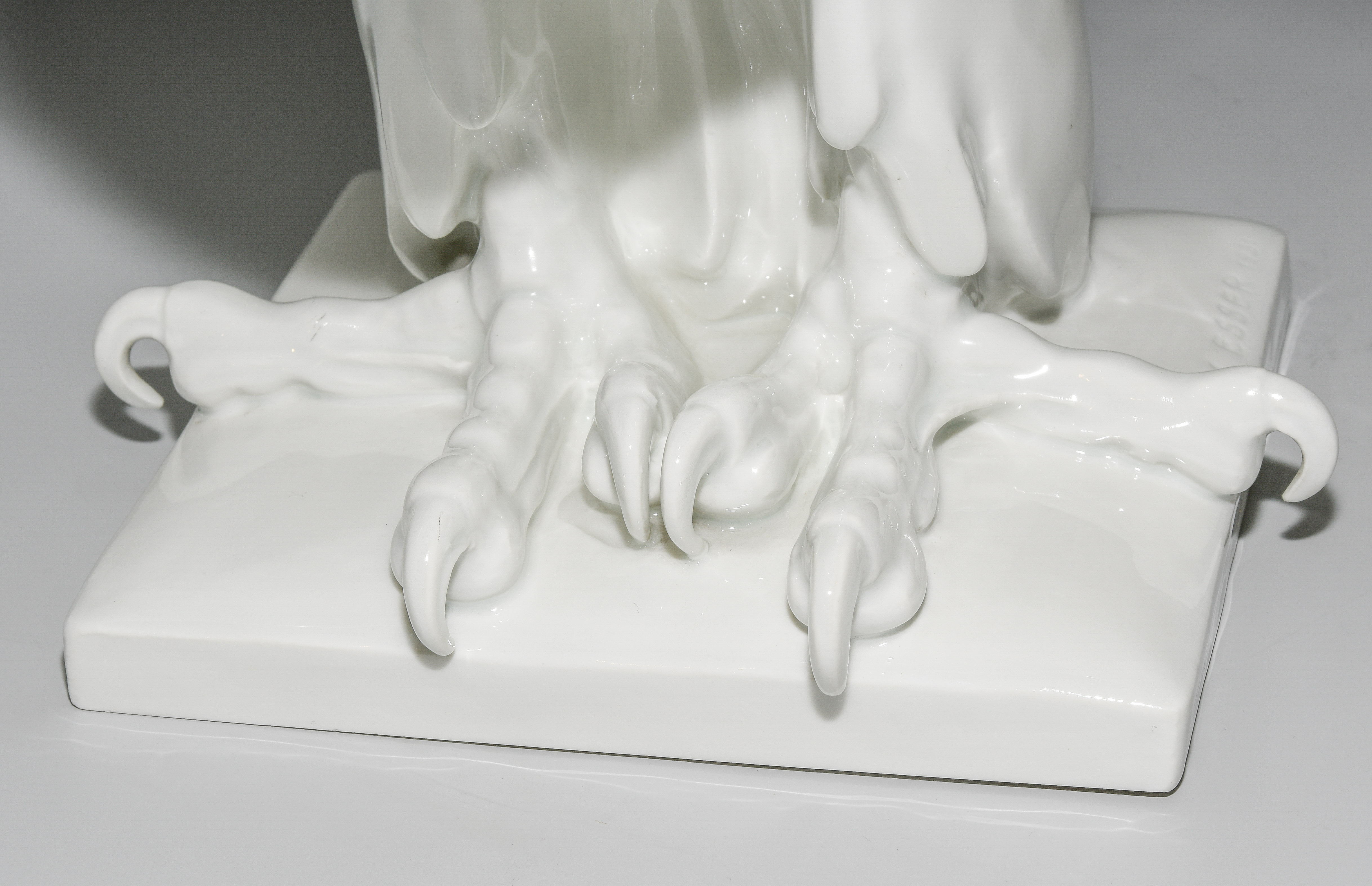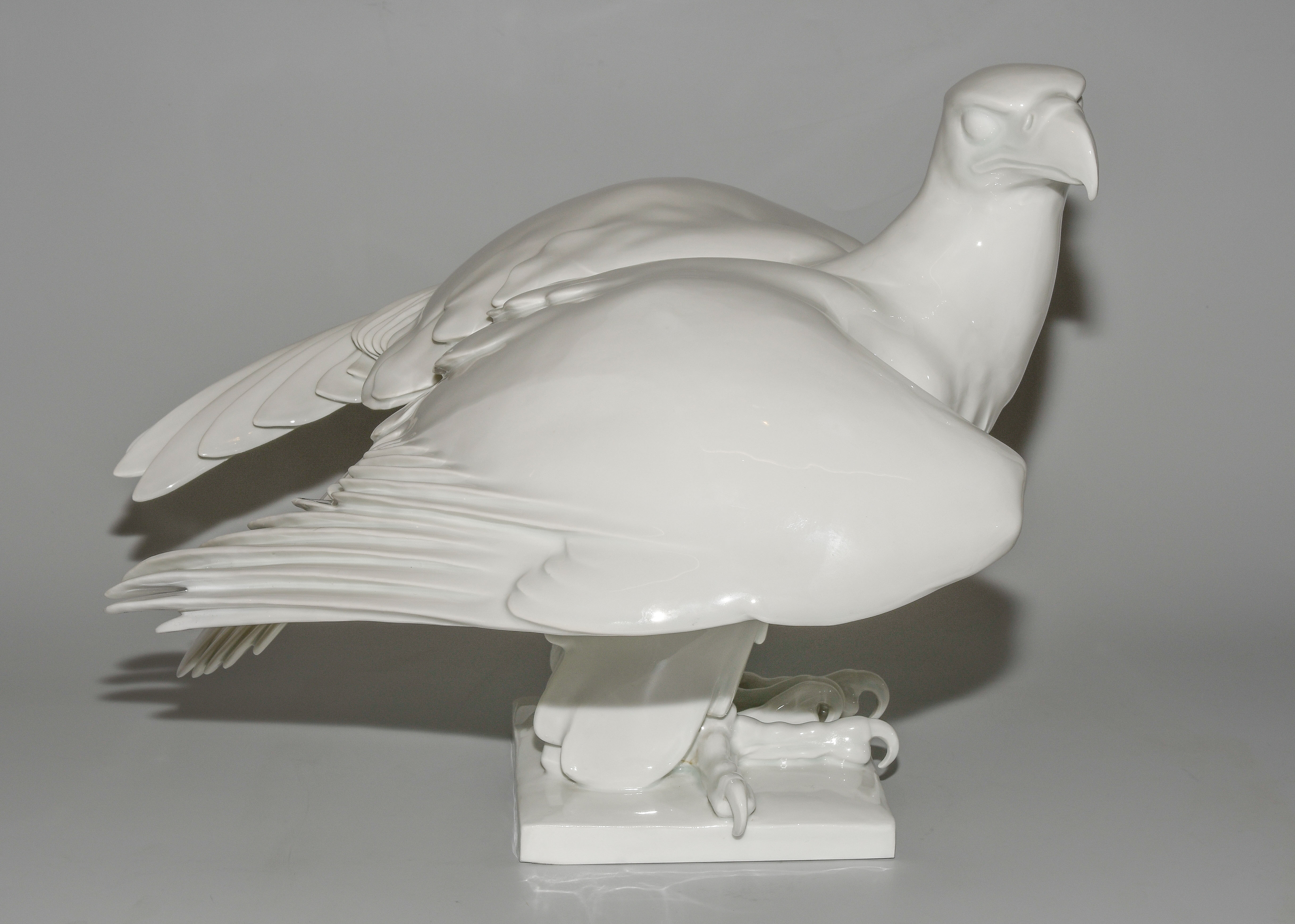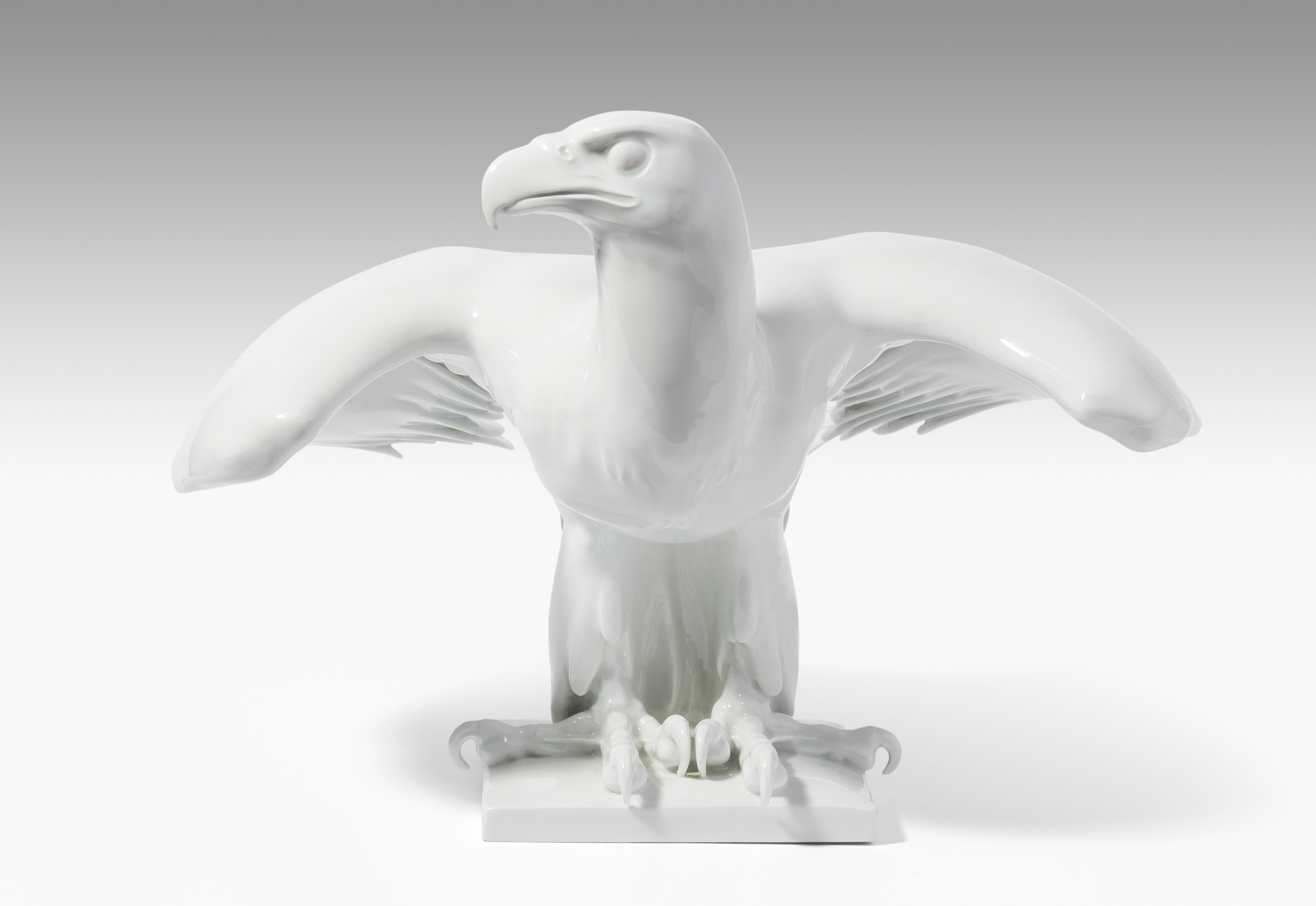 Adler. Entwurf: Max Esser 1931, Ausführung um 1934–1945. Porzellan, weiss. Bezeichnet: Schwertermarke "weiss" (1. Wahl). H 29 cm.