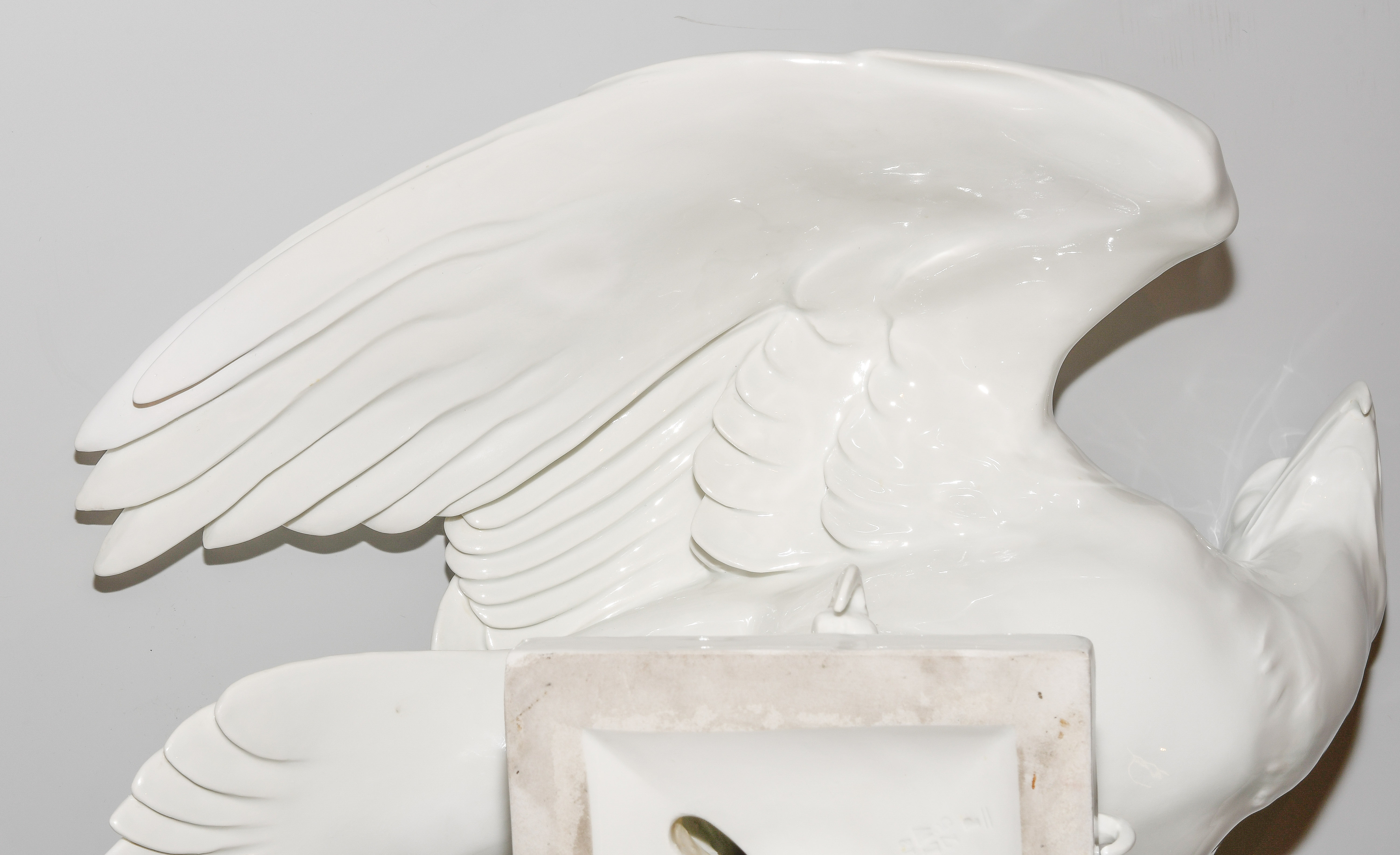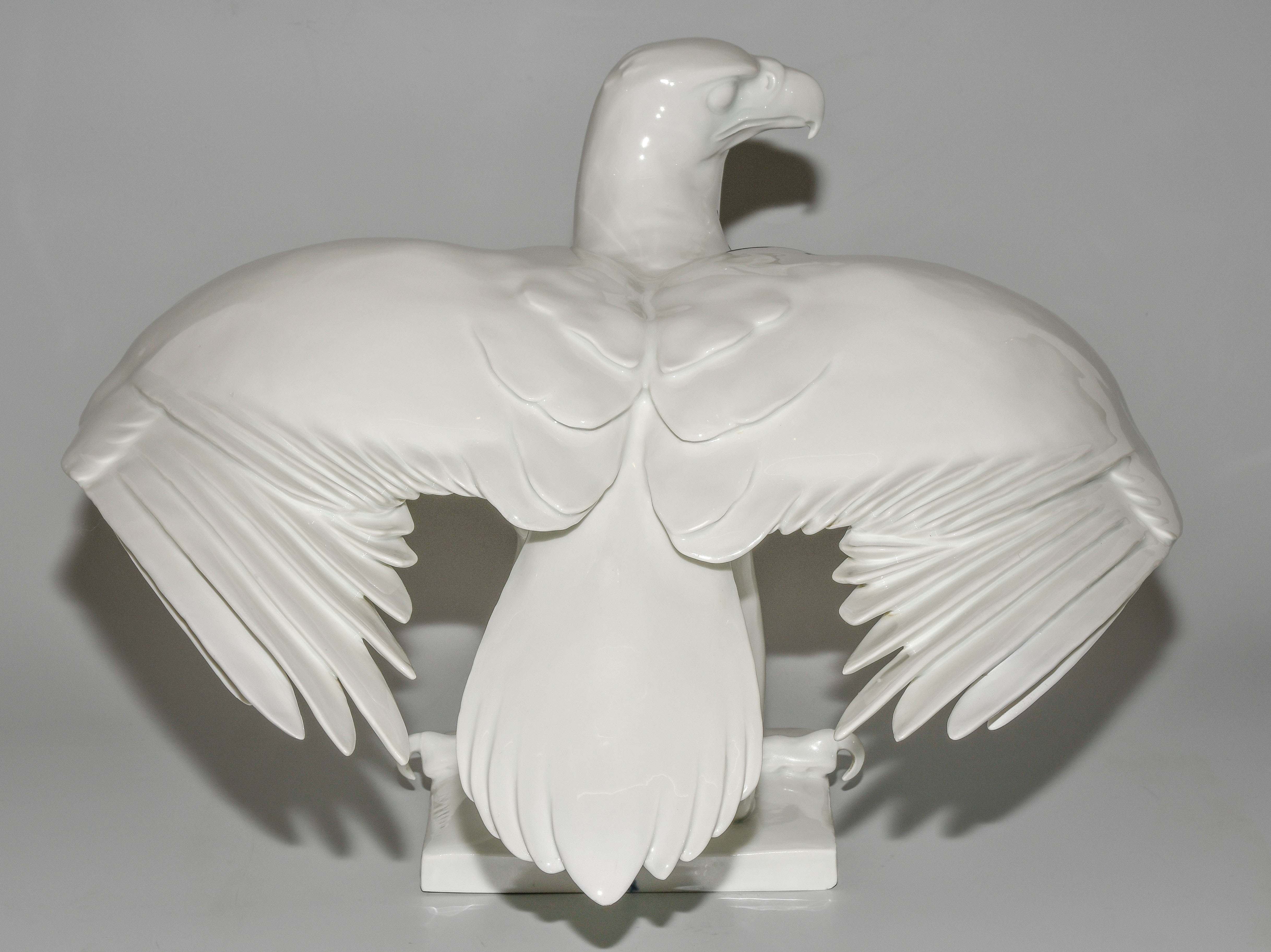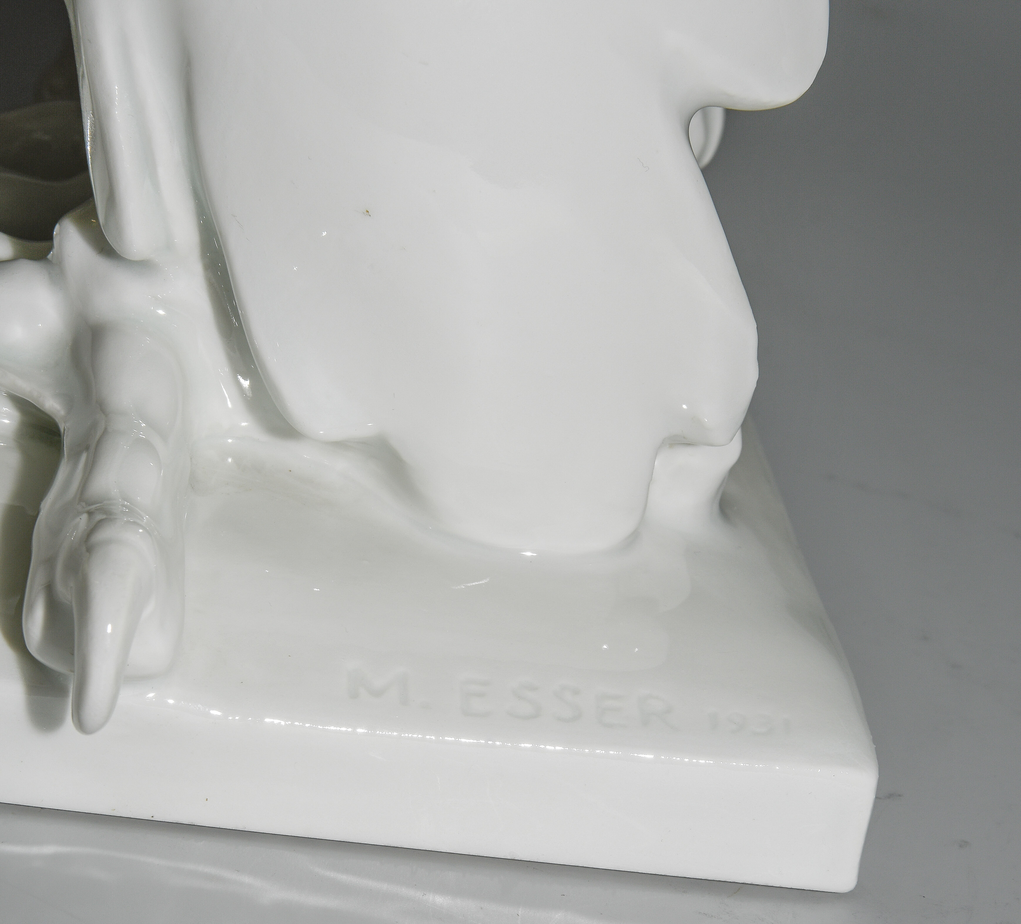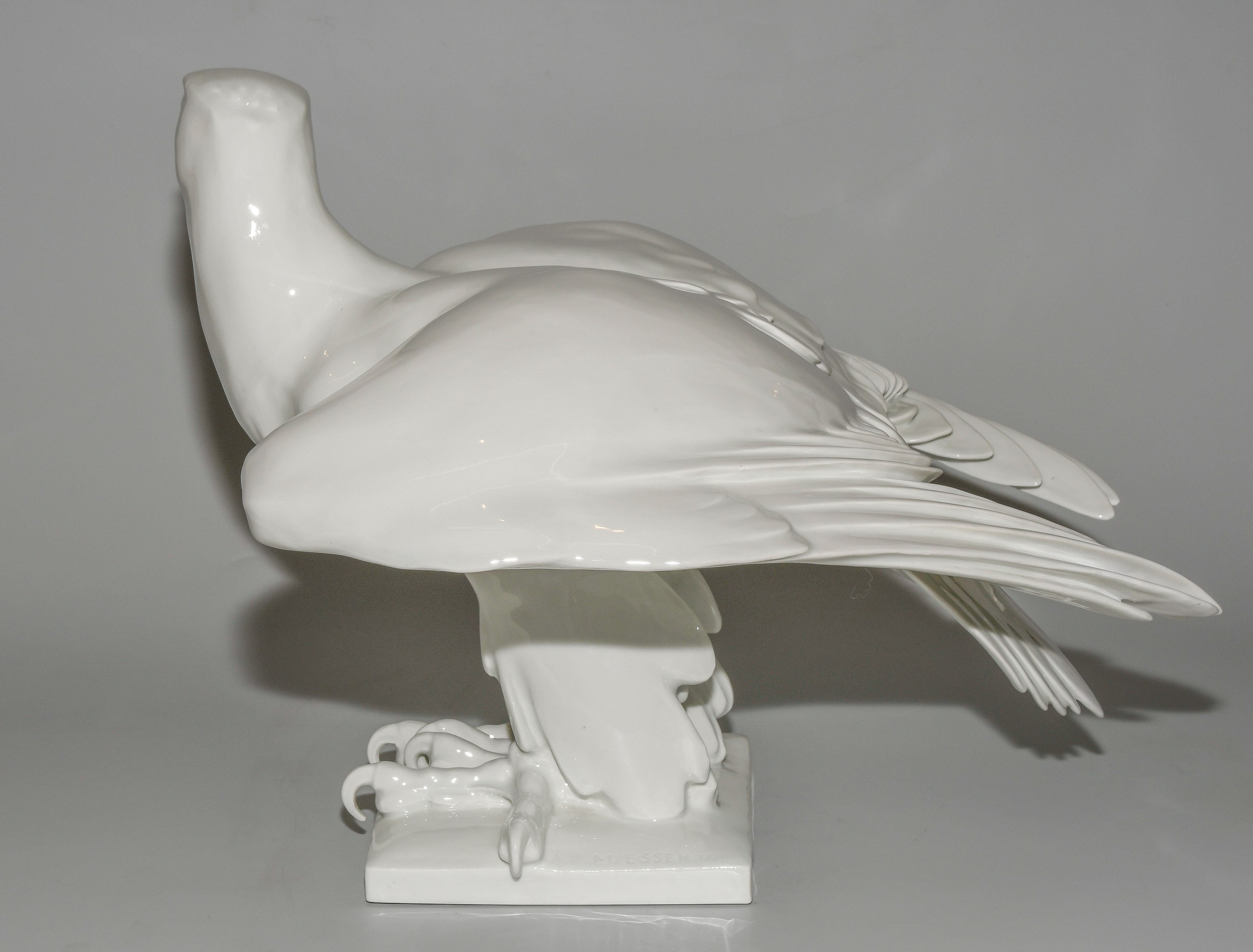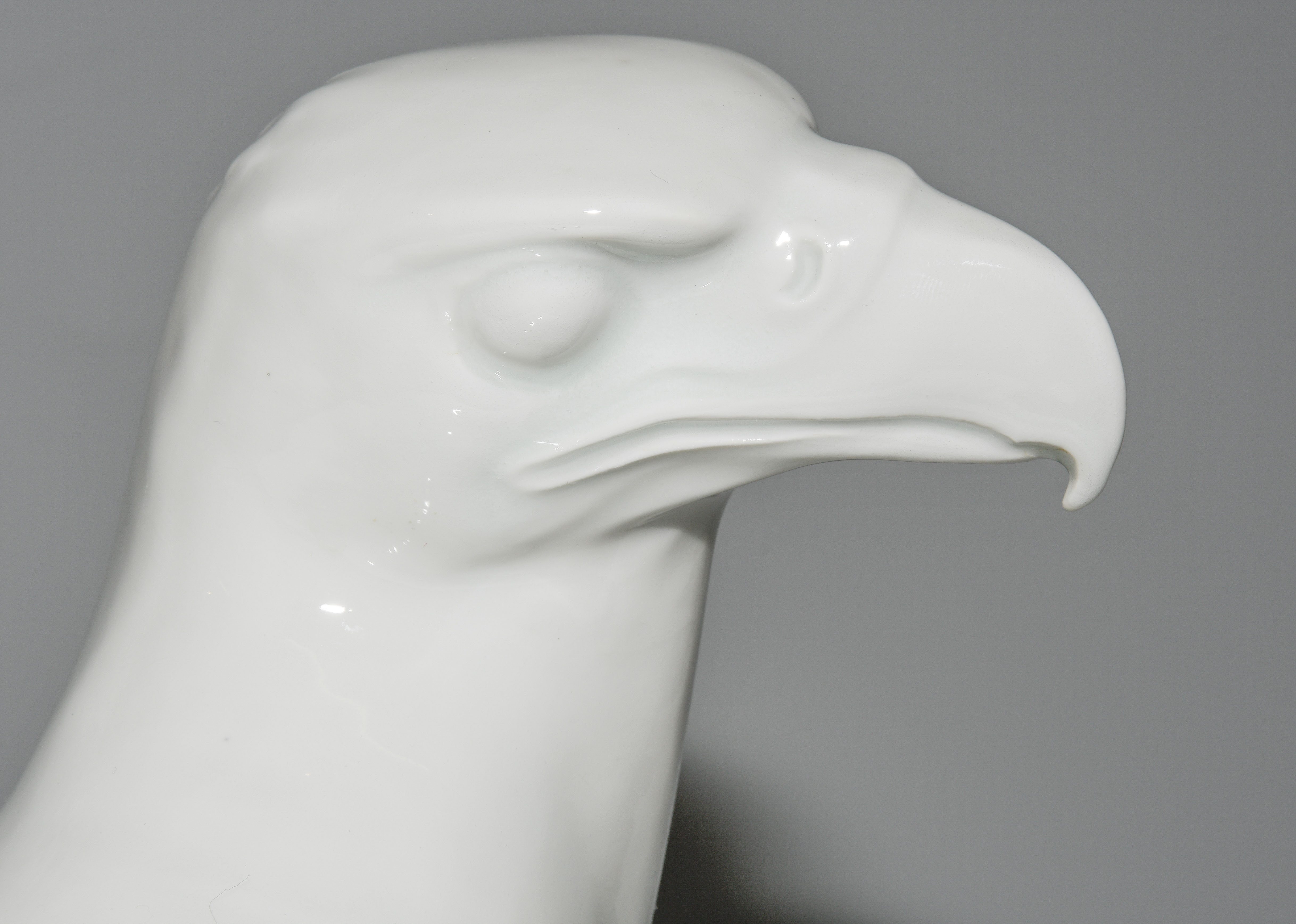 Adler. Entwurf: Max Esser 1931, Ausführung um 1934–1945. Porzellan, weiss. Bezeichnet: Schwertermarke "weiss" (1. Wahl). H 29 cm.