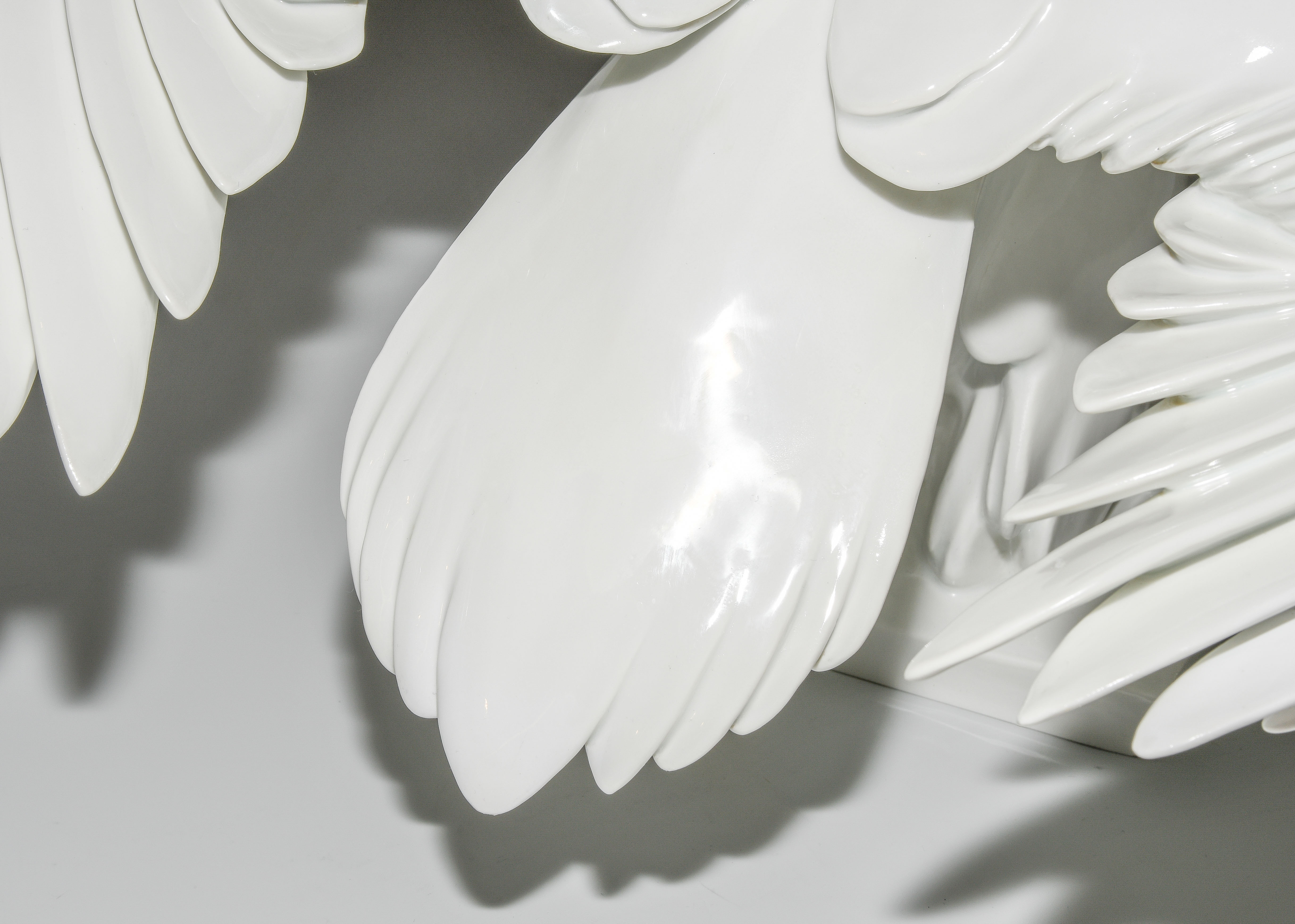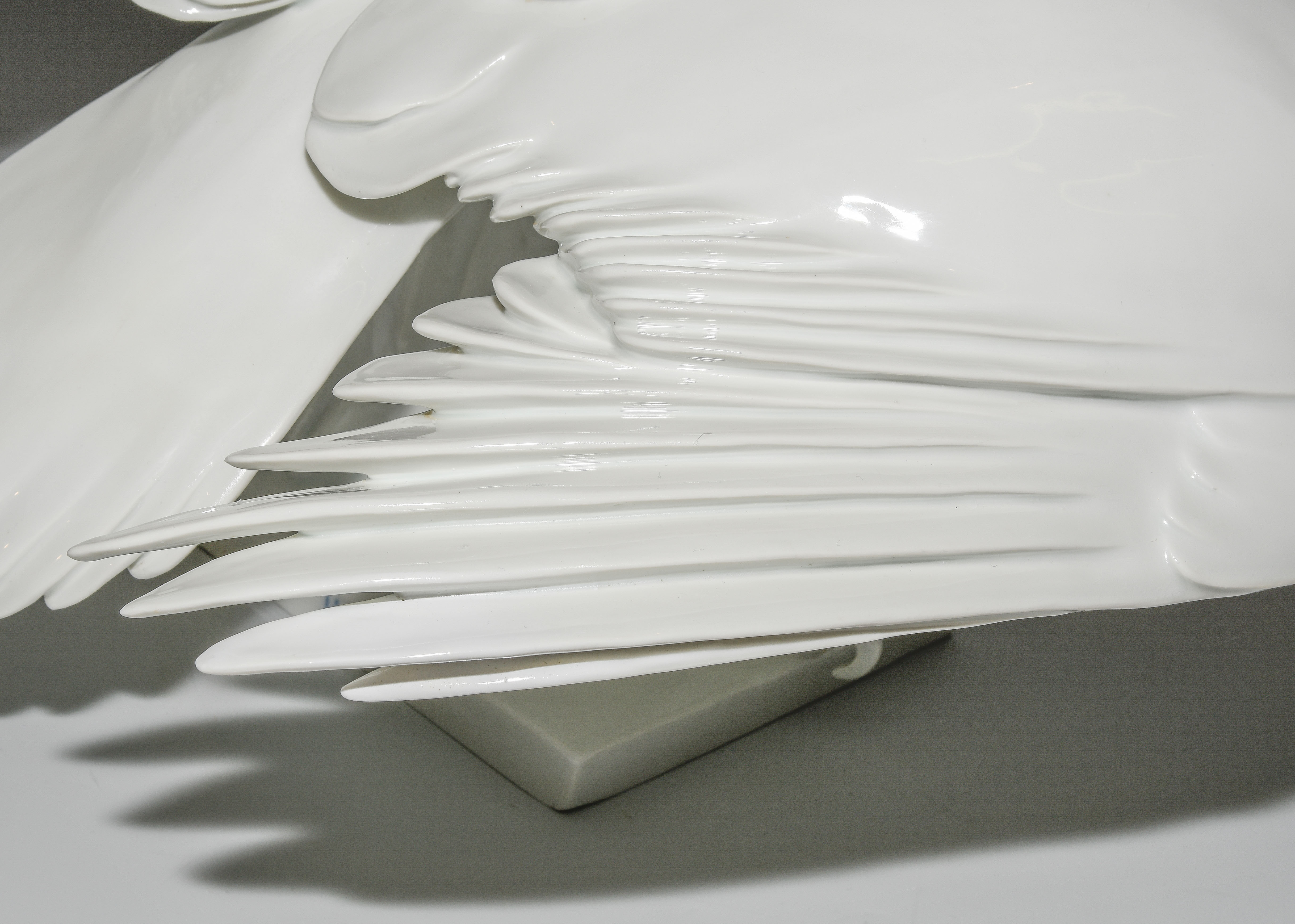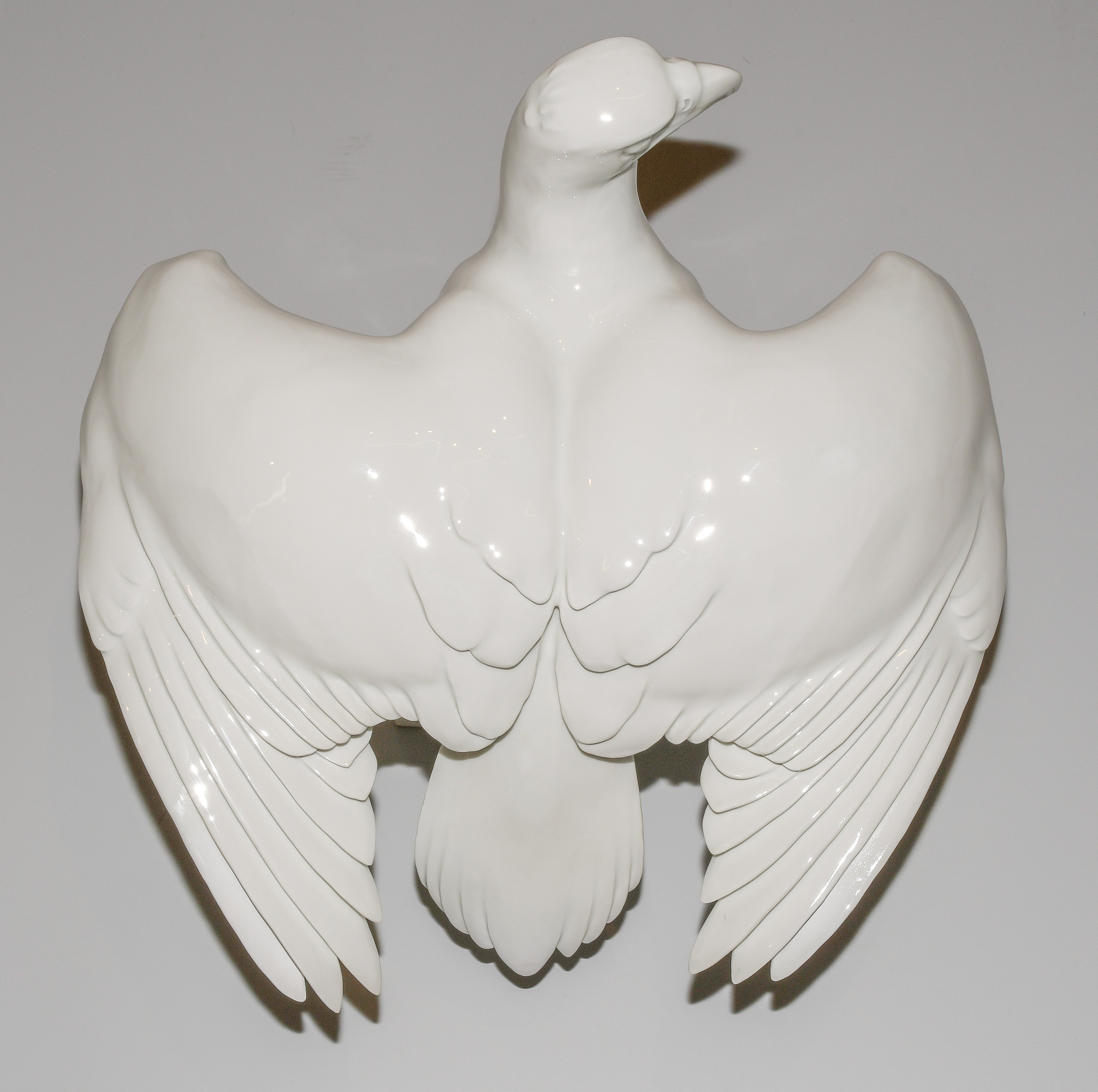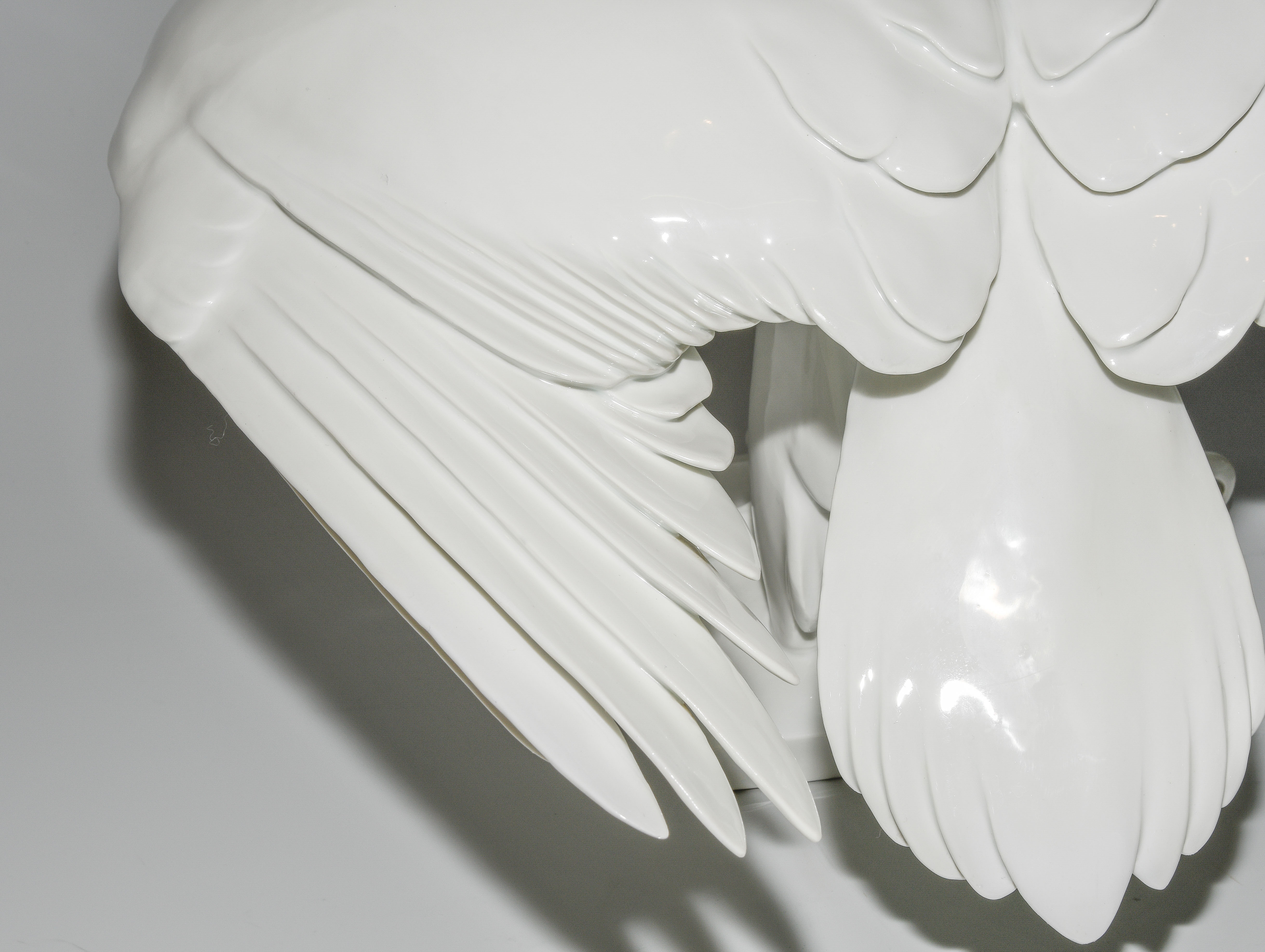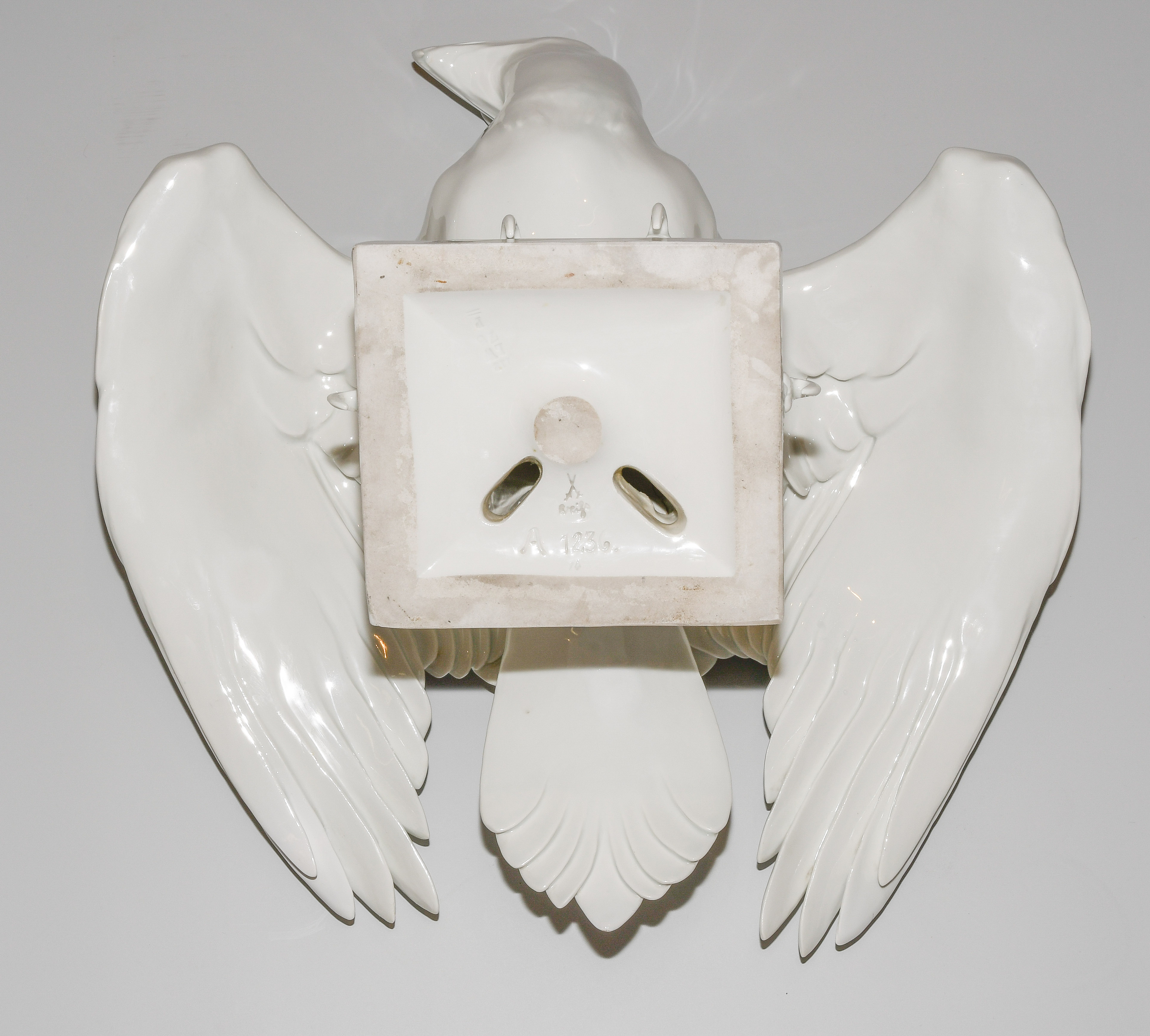 Adler. Entwurf: Max Esser 1931, Ausführung um 1934–1945. Porzellan, weiss. Bezeichnet: Schwertermarke "weiss" (1. Wahl). H 29 cm.