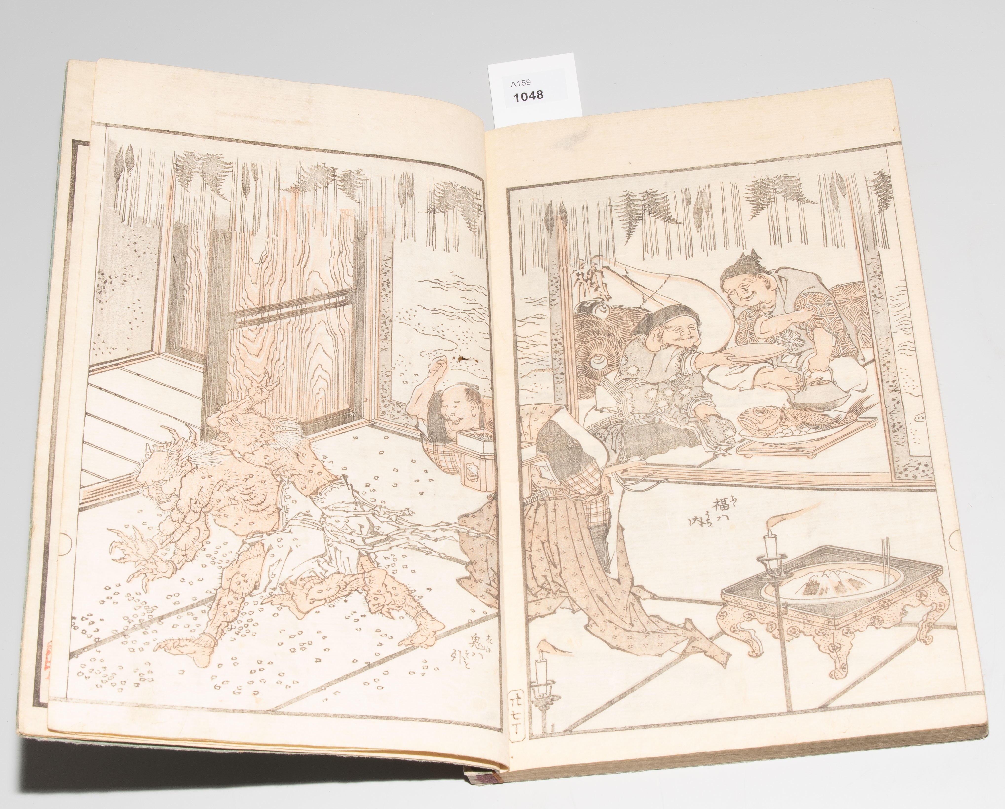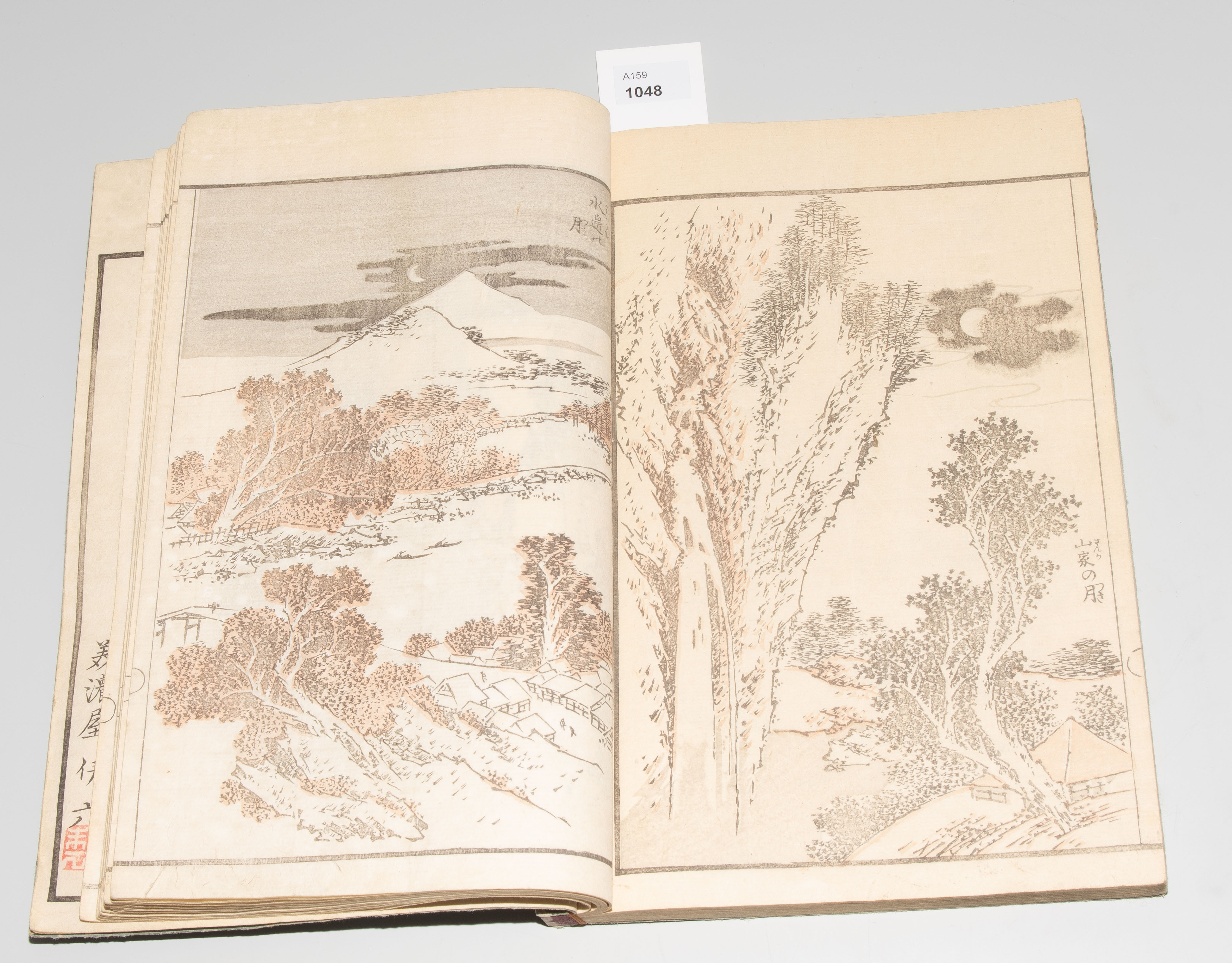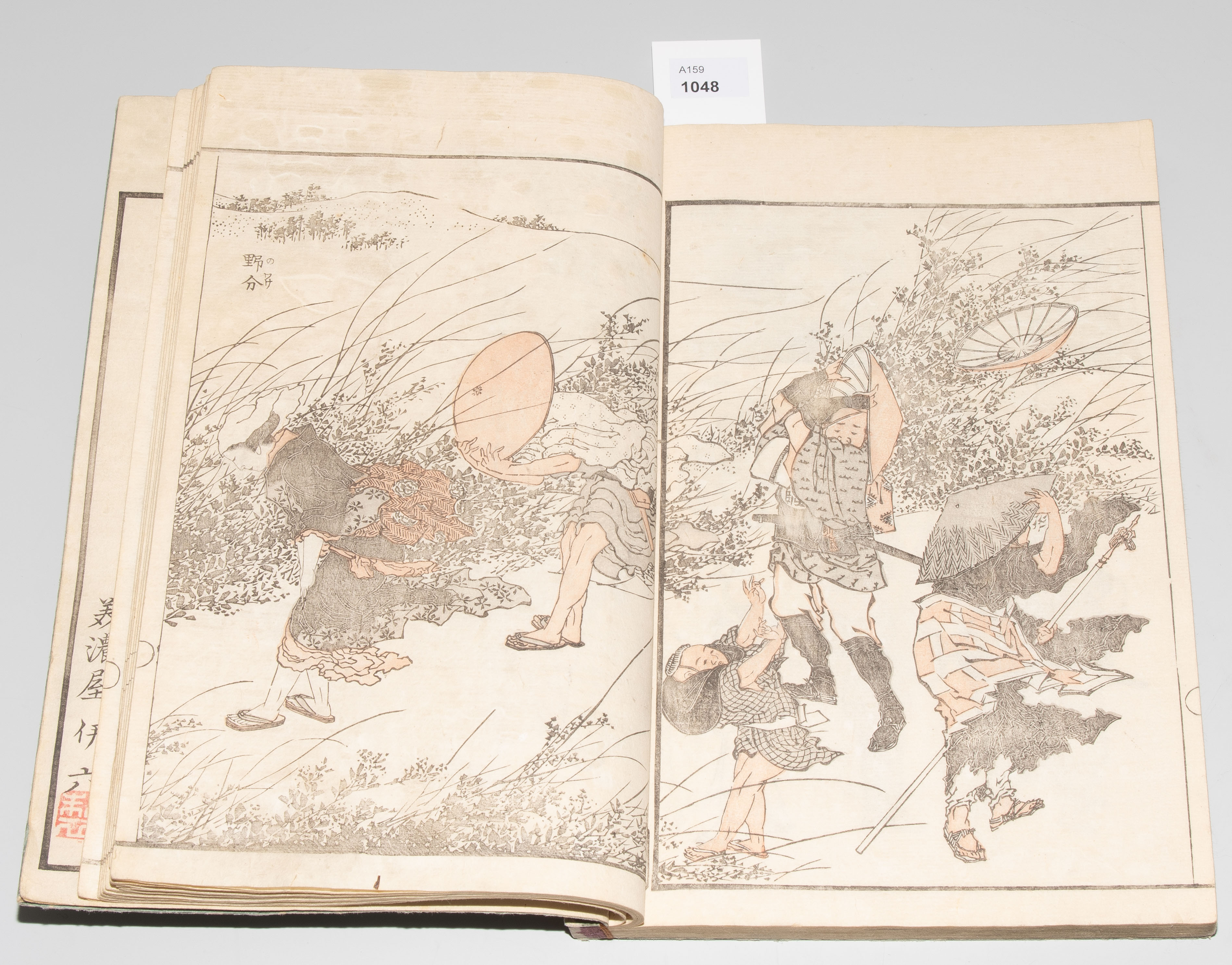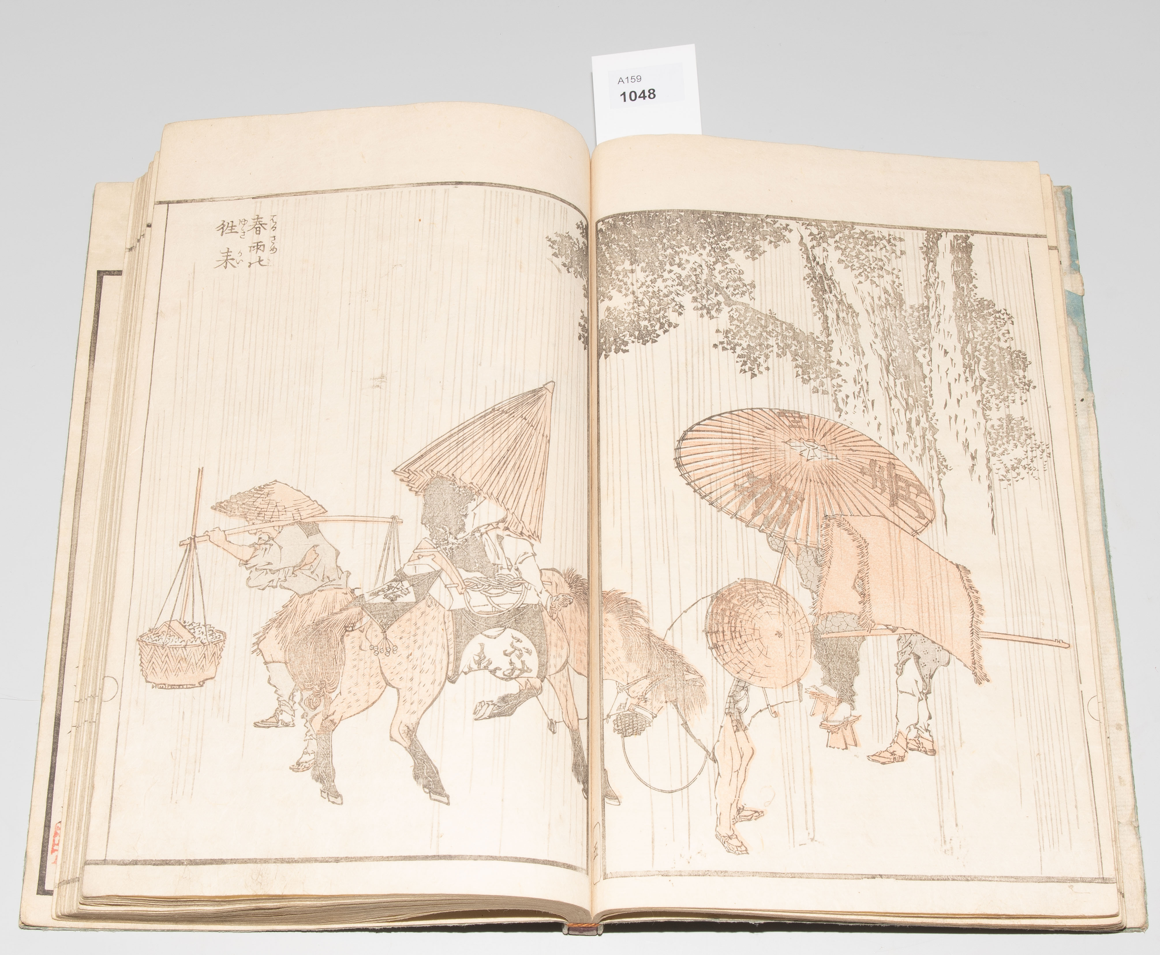 Japan. Datiert Bunsei 3 (1820). Farbholzschnitt. "Grobe Skizzen von Hokusai". Illustriertes Buch mit Landschaftsdarstellungen, Alltagsszenen, Tiermotiven usw. Signiert Tôto gakô Katsushika Taito hitsu.