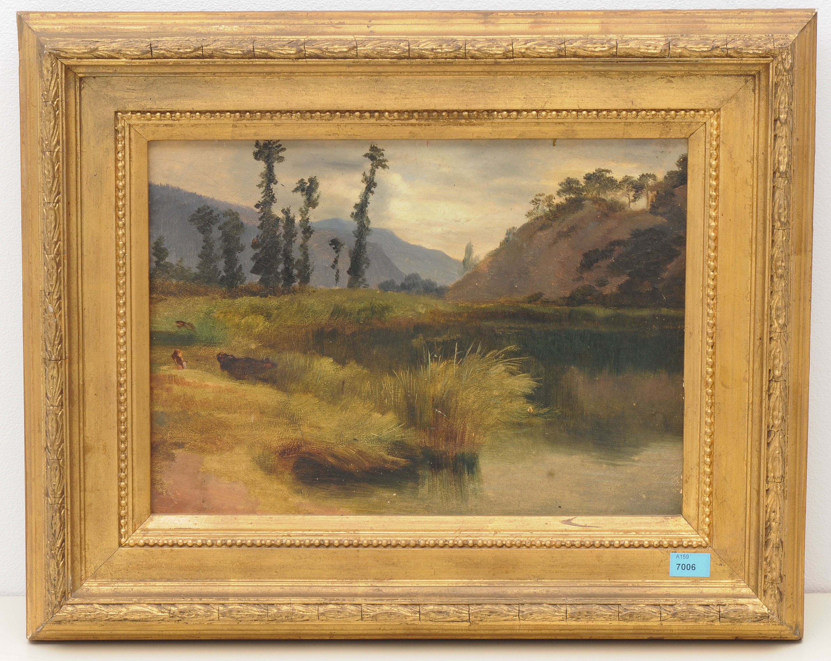 "Vue à Sierre en Valais". Ölstudie auf Papier über Karton. Verso signiert und bezeichnet. 26,5x36 cm.