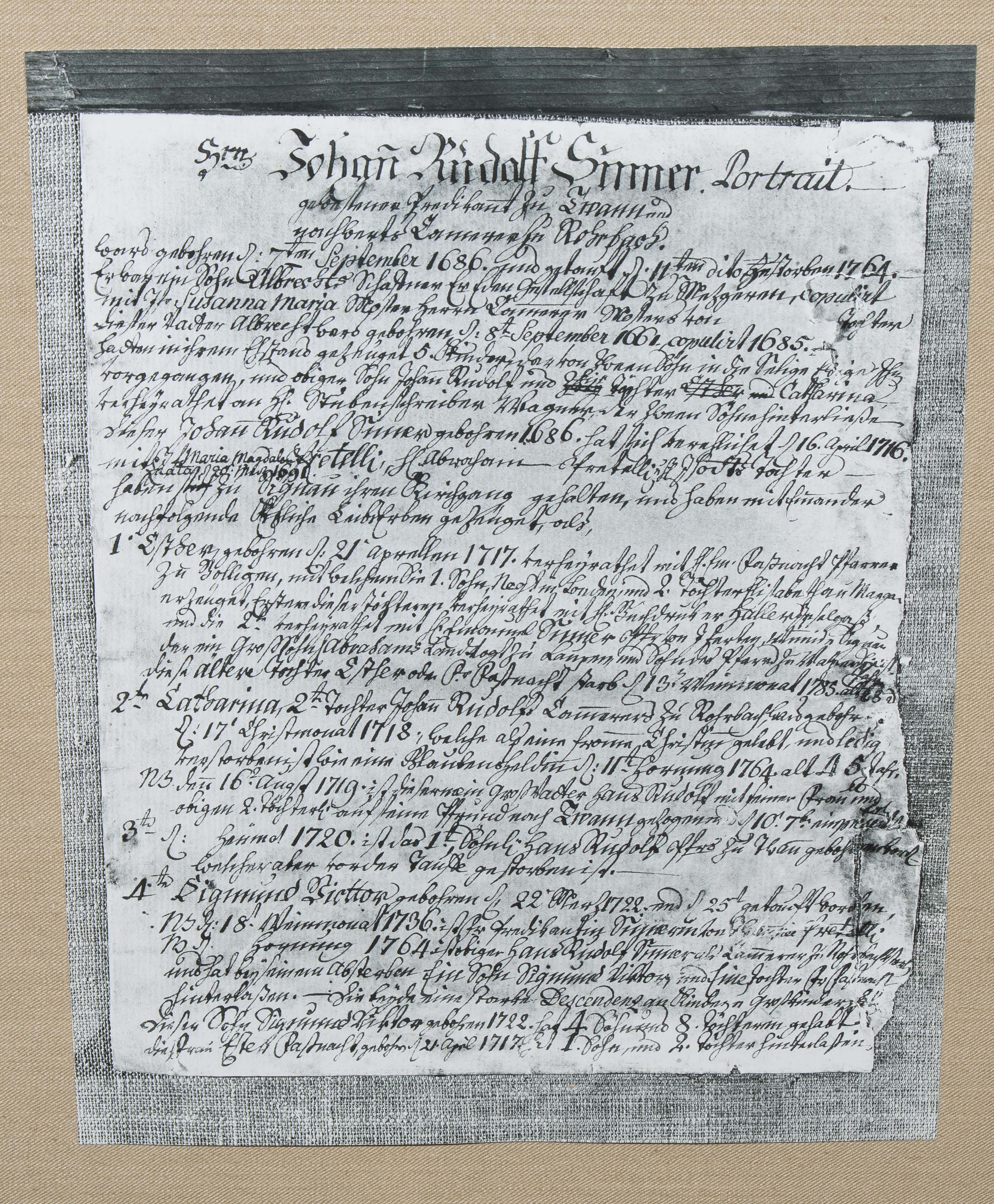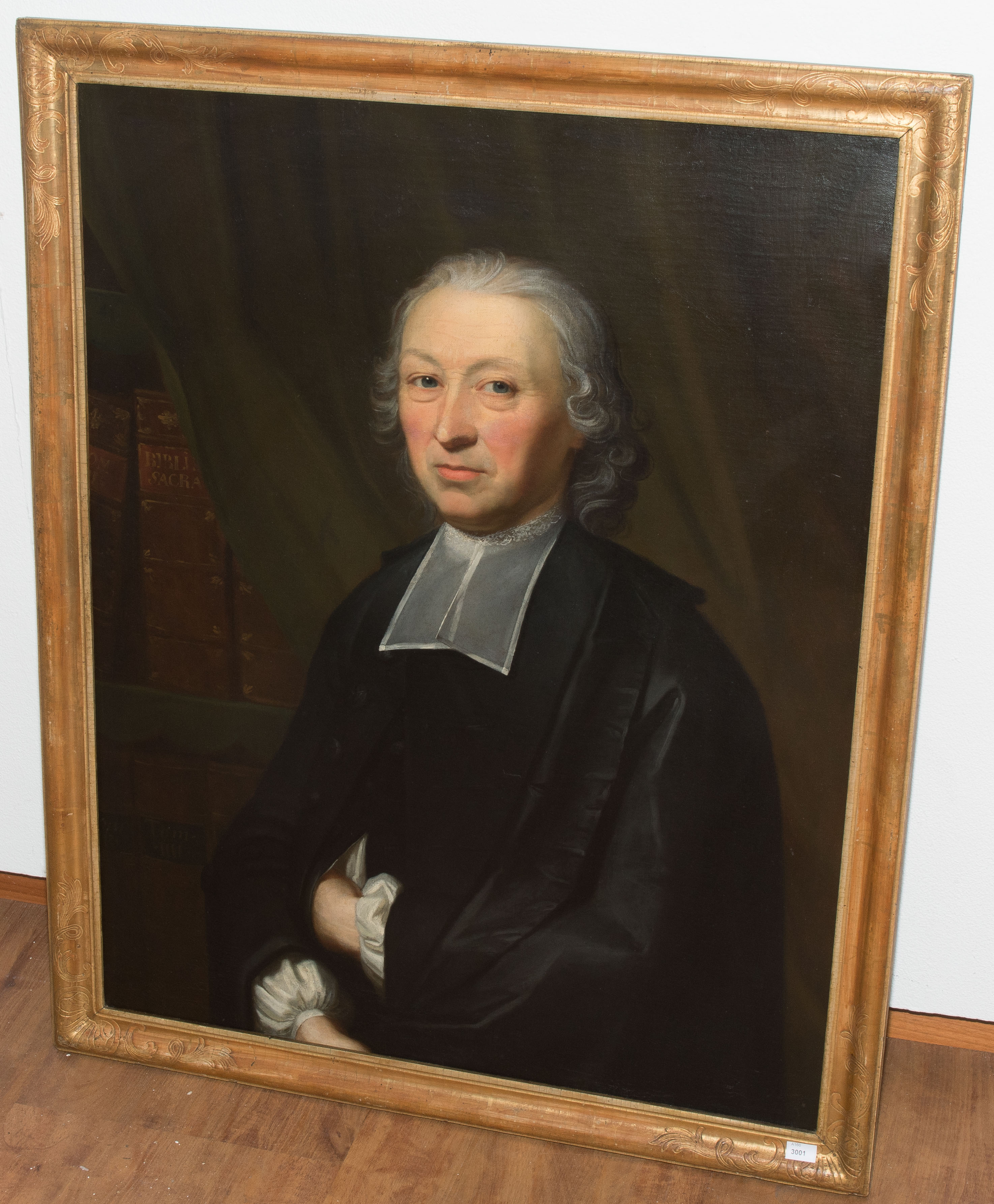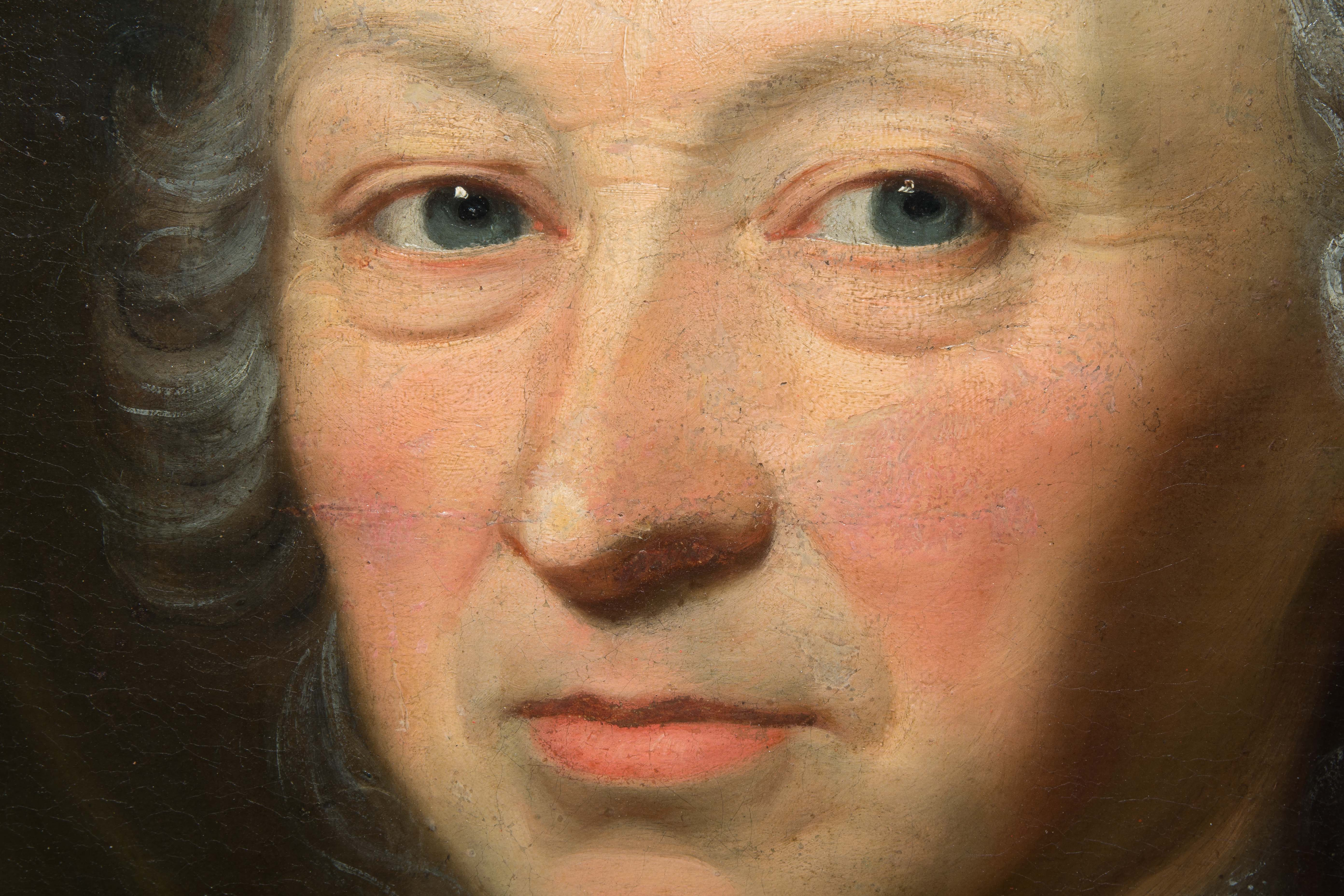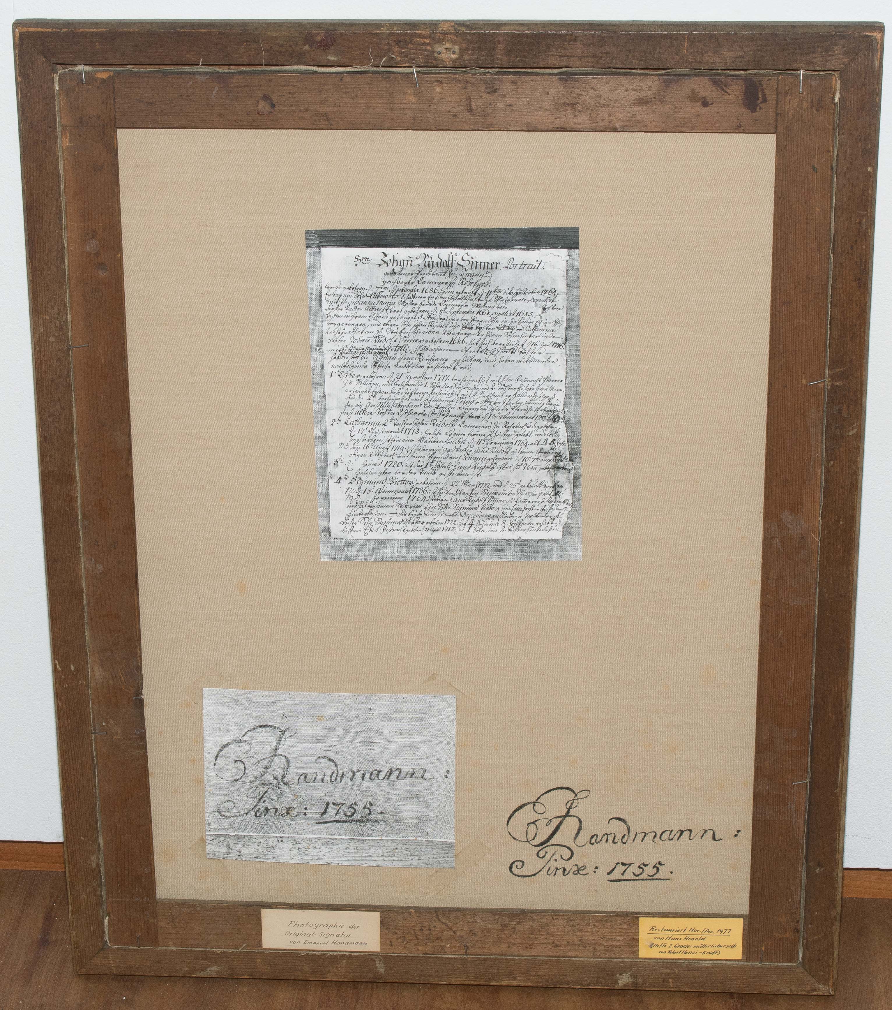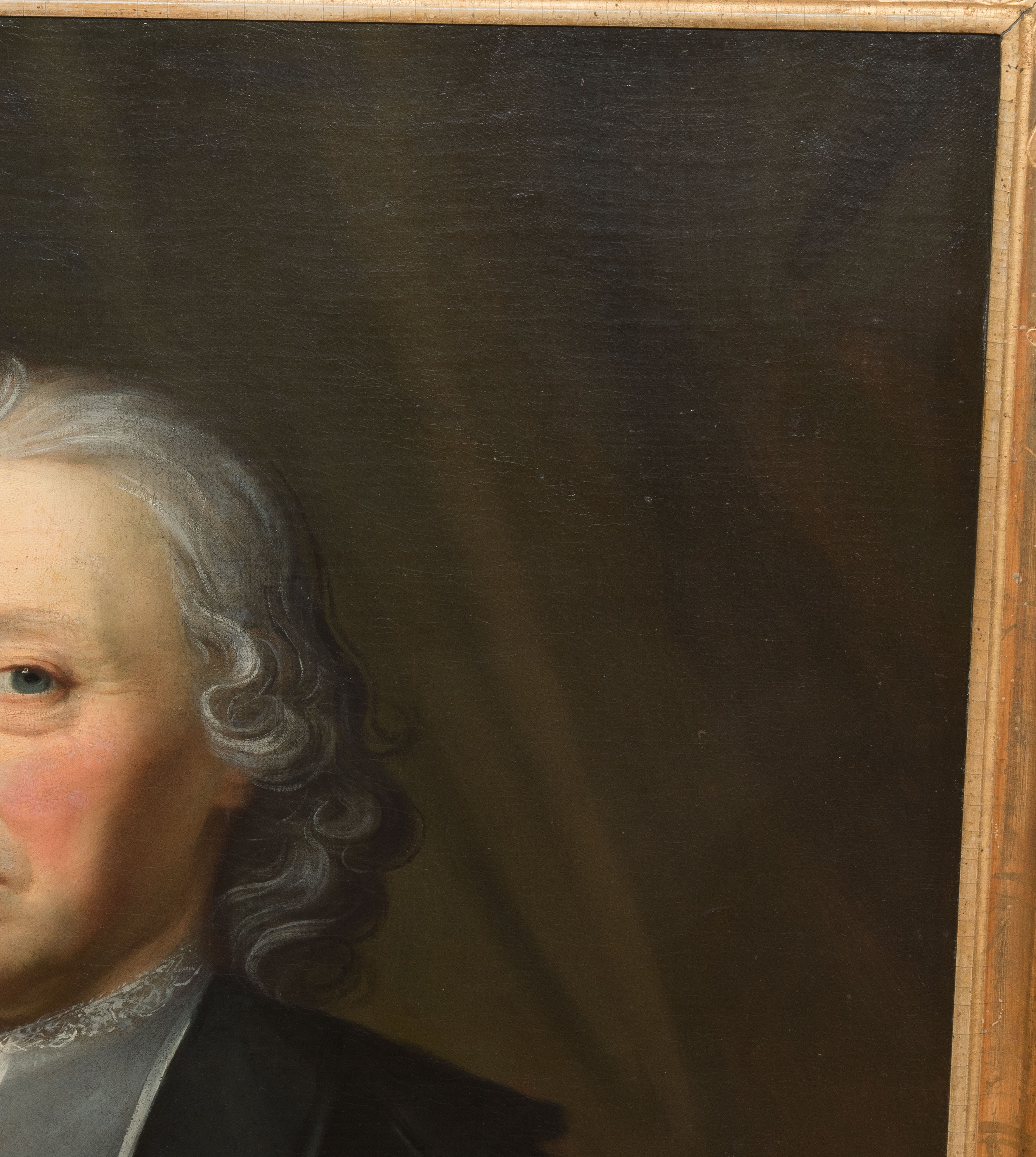 Portrait von Johann Rudolf Sinner, 1755. Öl auf Leinwand. Verso mit übertragener Signatur und Datierung. 92x73 cm. - Doubliert.