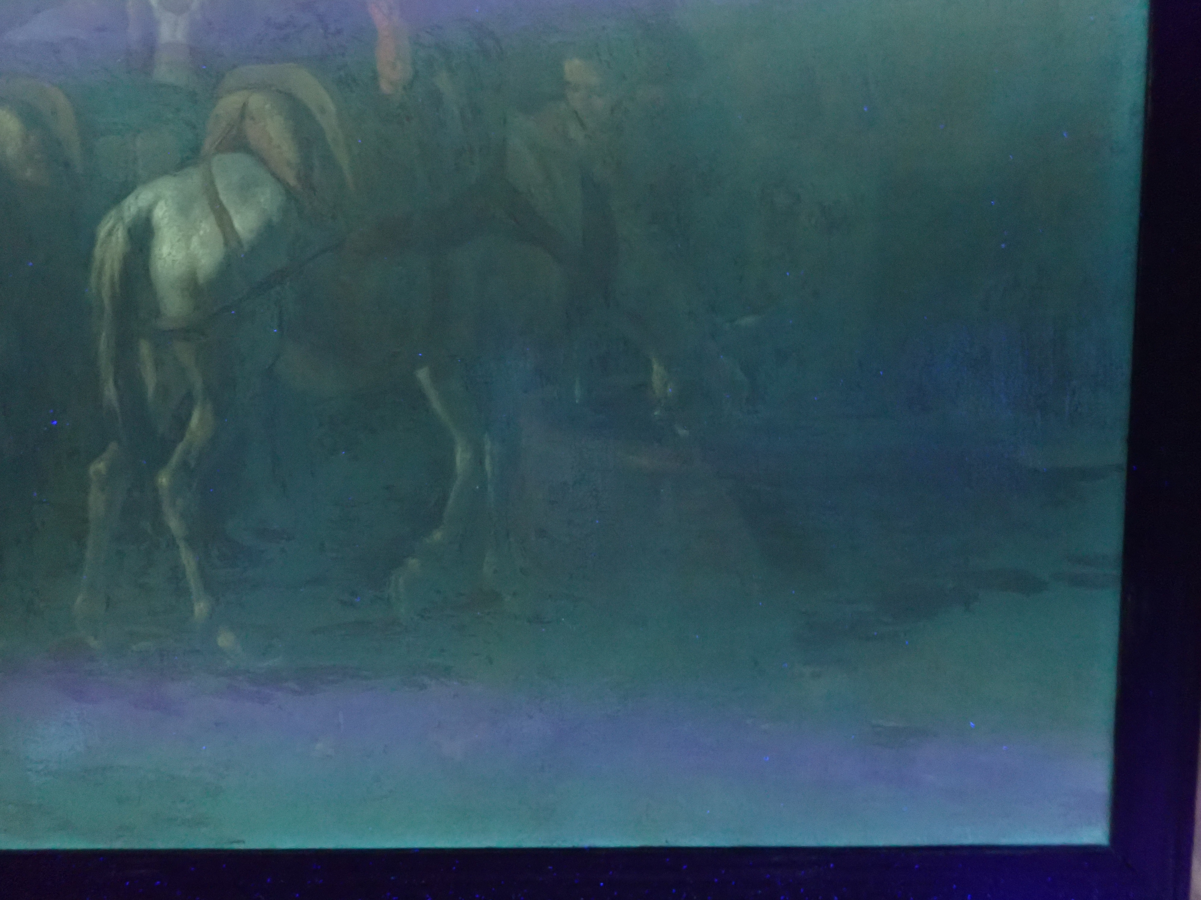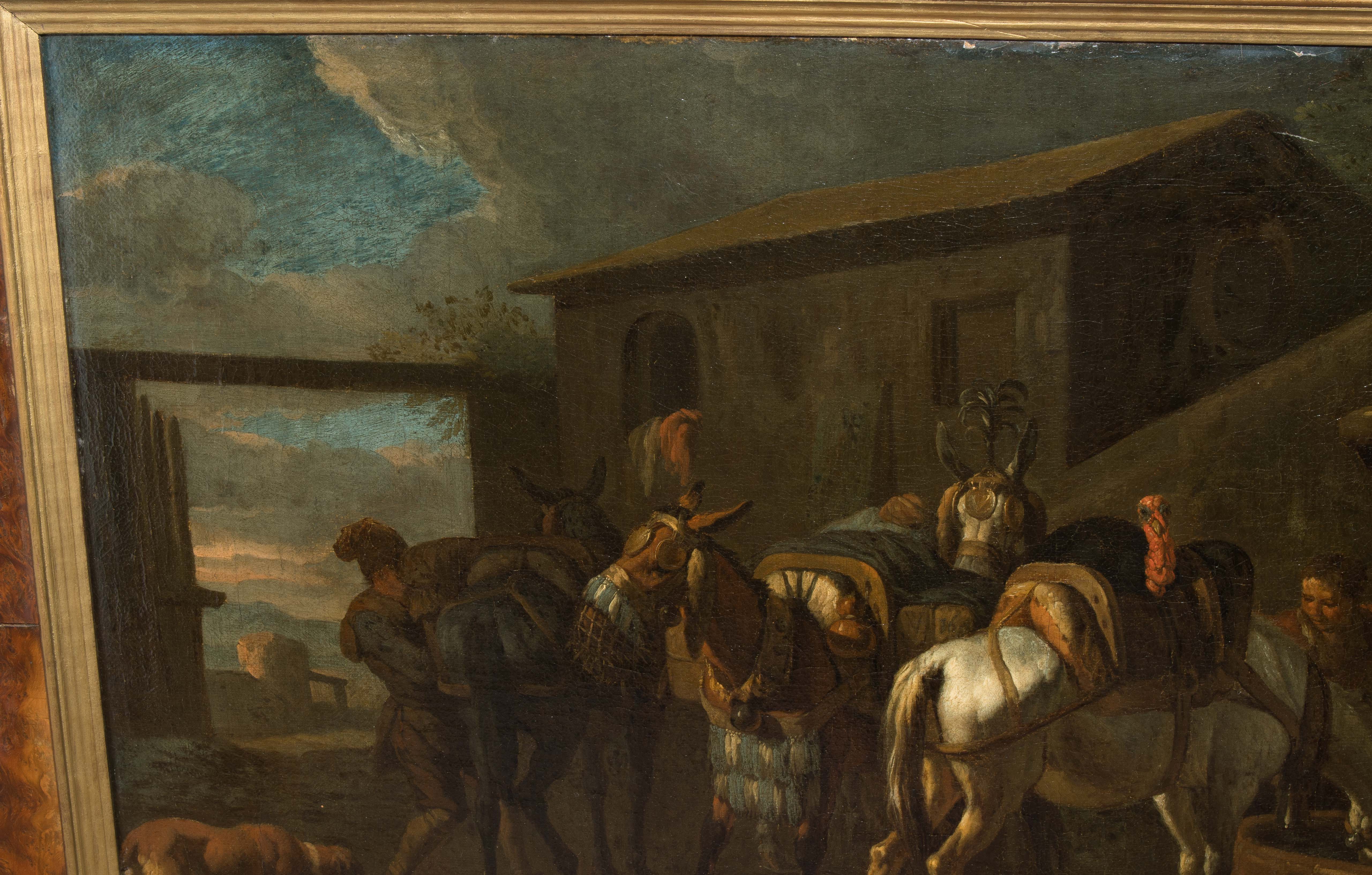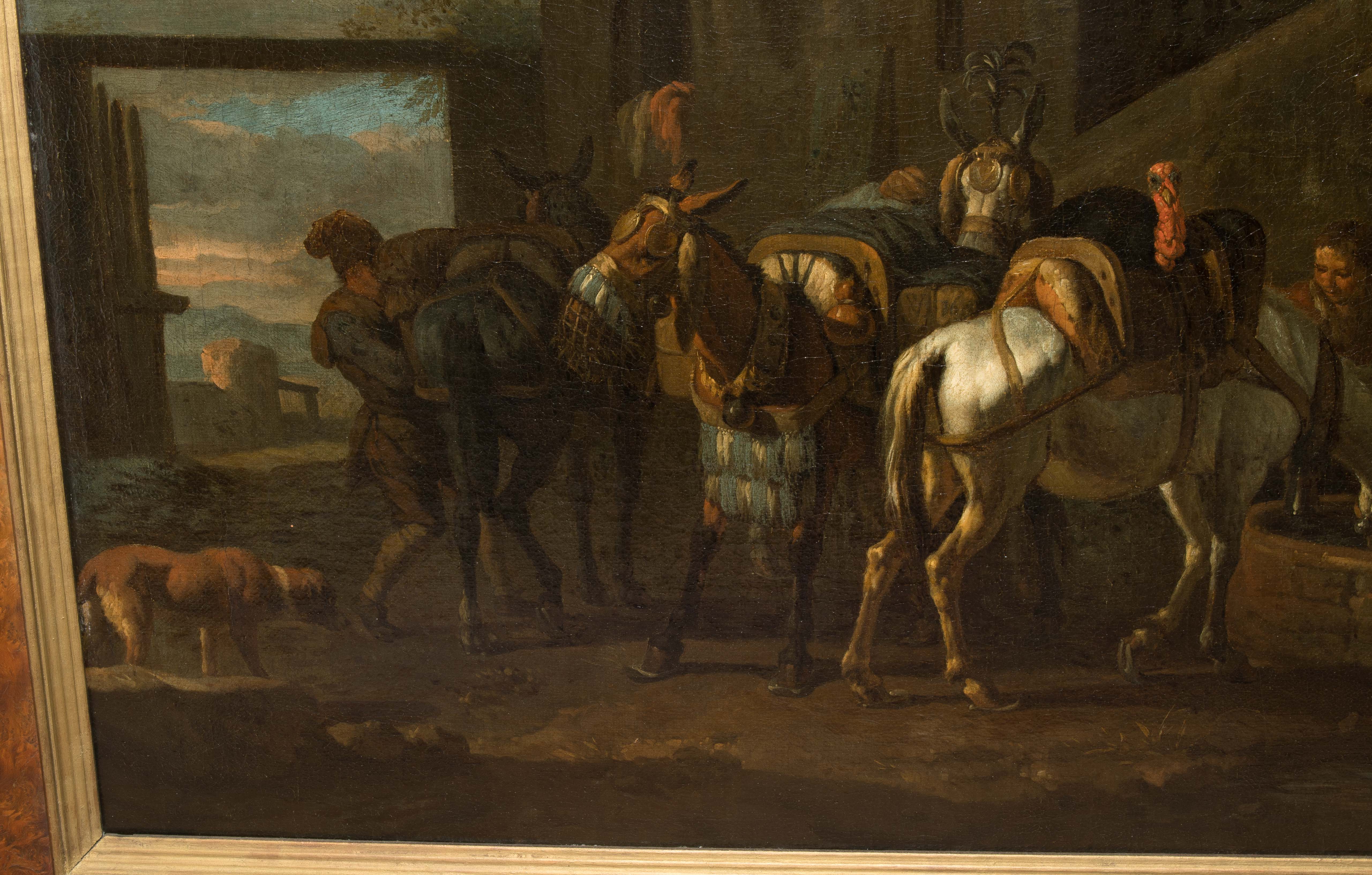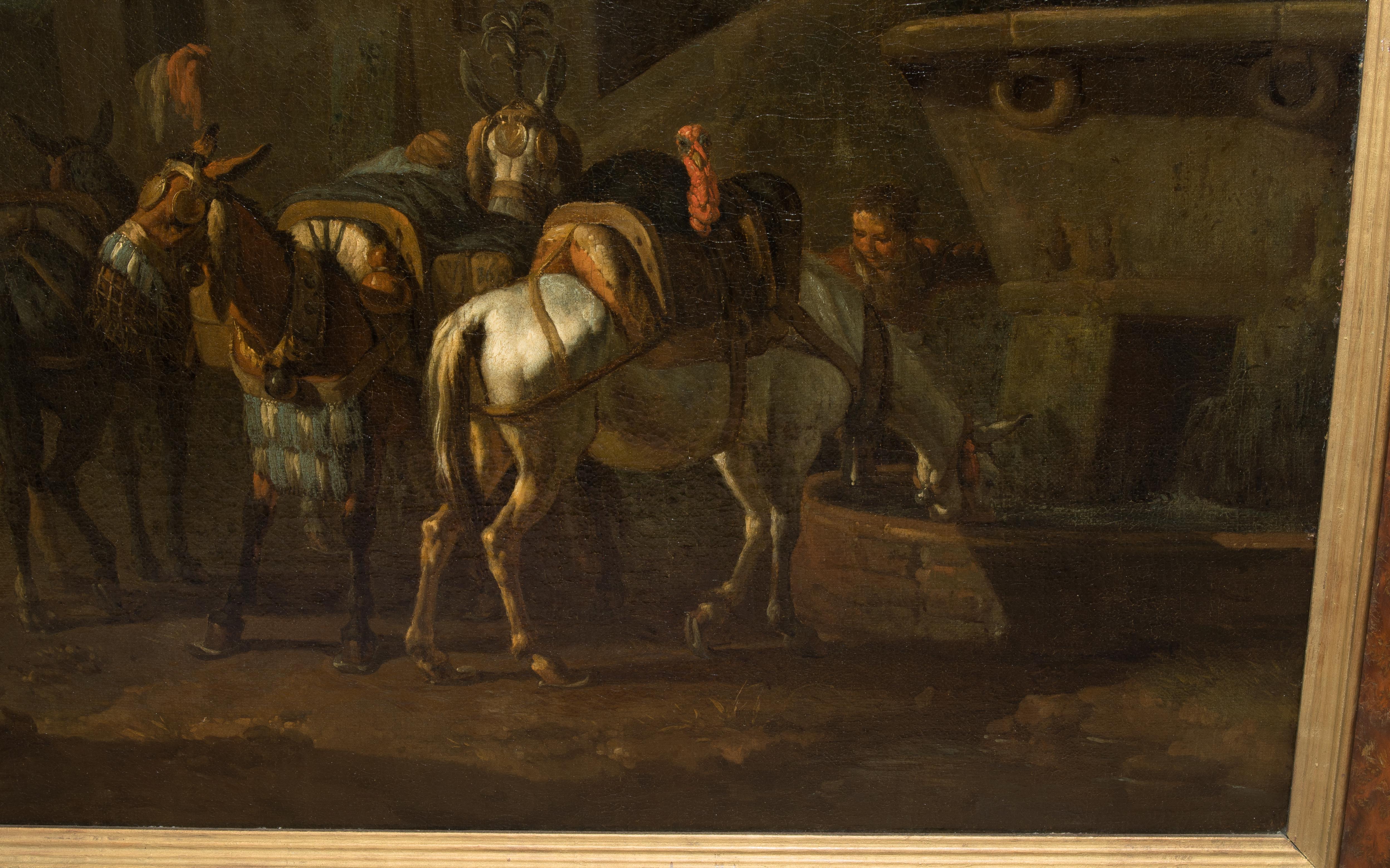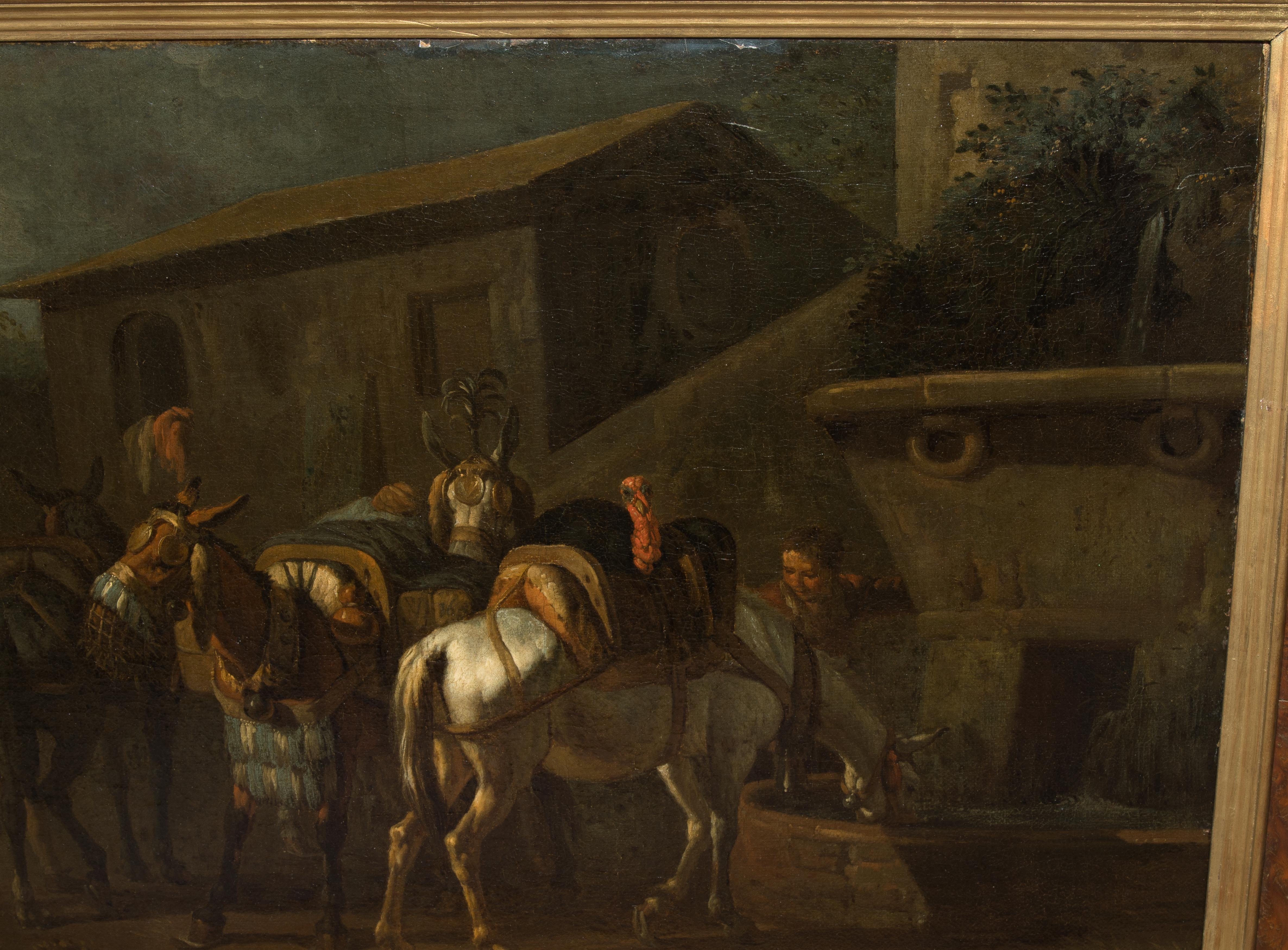 Pferde an der Tränke. Öl auf Leinwand. 41x57 cm.