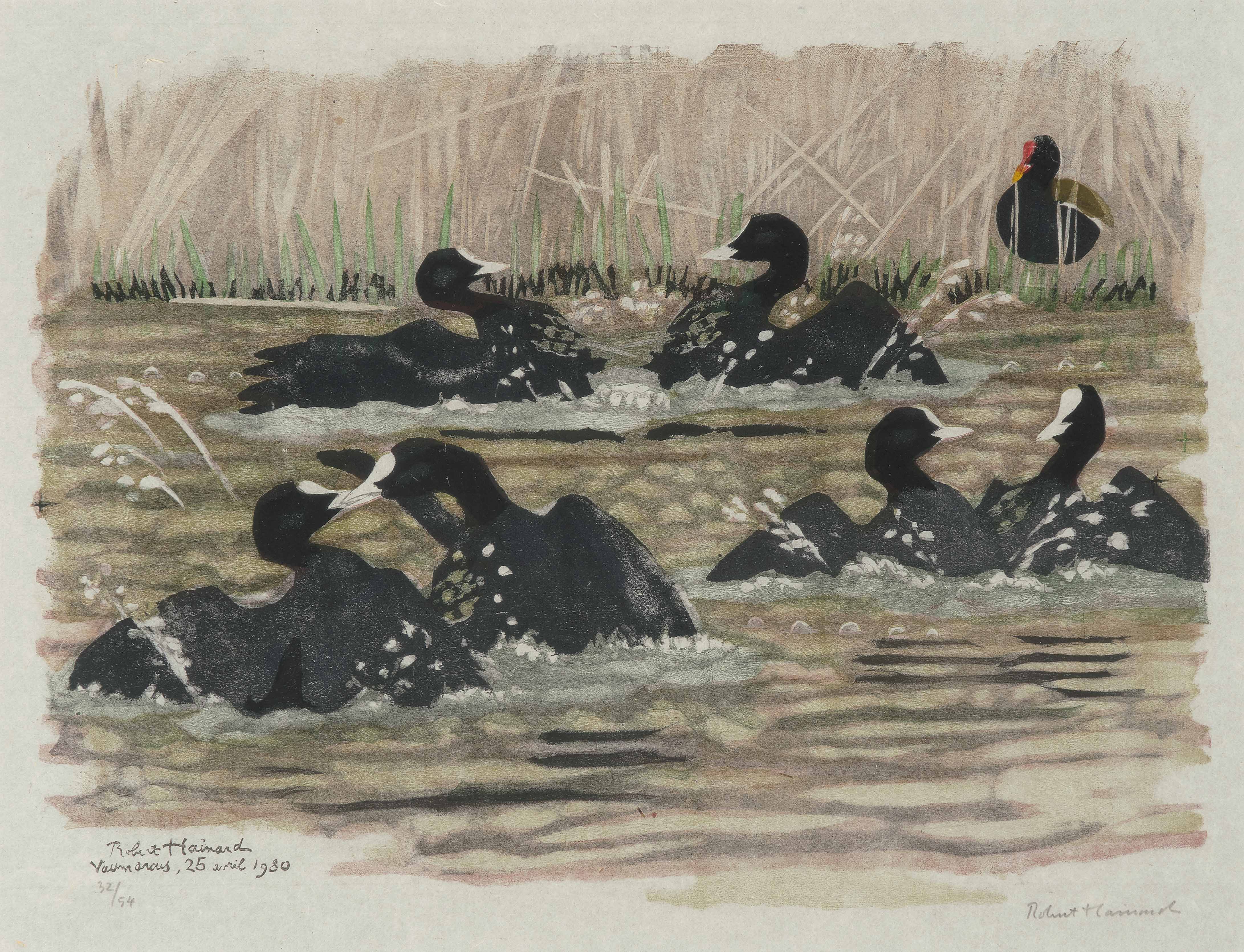 Taucherli. 1980. Farbholzschnitt. 32/54. Unten rechts in Bleistift signiert. Unten links im Druck signiert, bezeichnet: "Vaumarcus" und datiert: "25 avril 1980". Blattgrösse 39,5x49,7 cm. Gerahmt. -Blatt minimst gebräunt. Am oberen Rand an Rückkarton montiert.