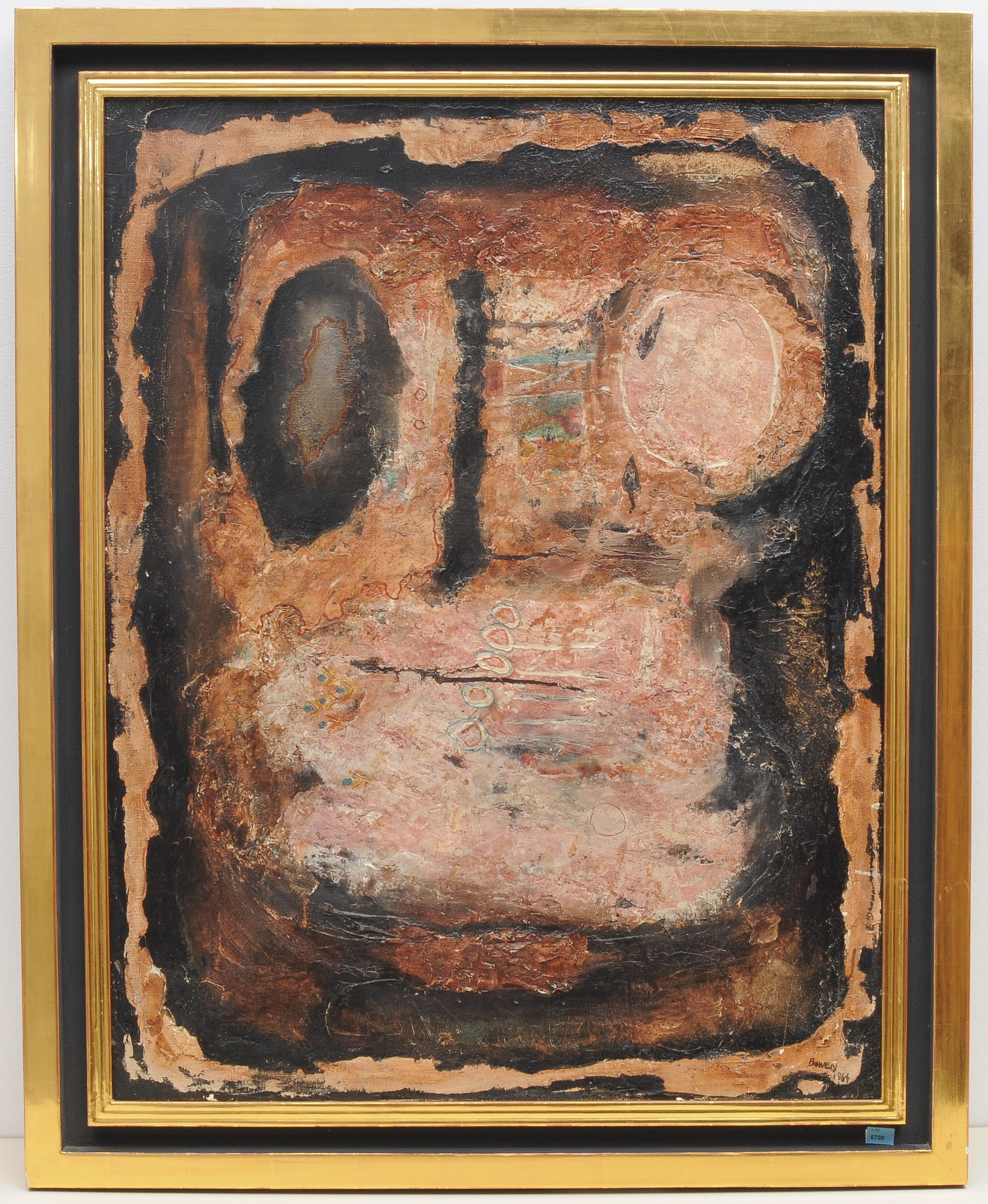 Ohne Titel.1964. Mischtechnik auf Leinwand. Unten rechts signiert und datiert. Verso bezeichnet und Stempel der Galerie Bürdeke, Zürich. 89,5x70 cm.