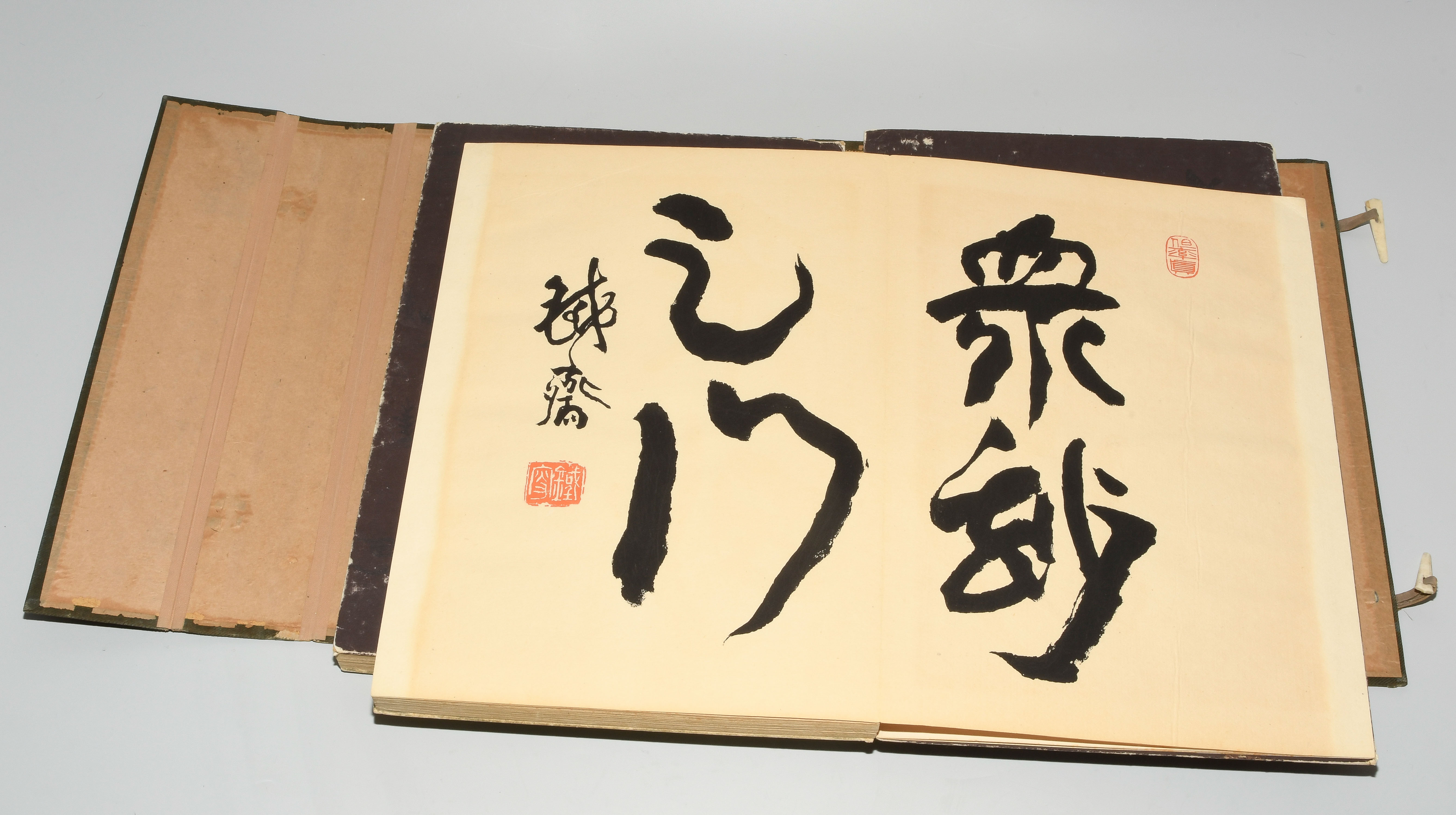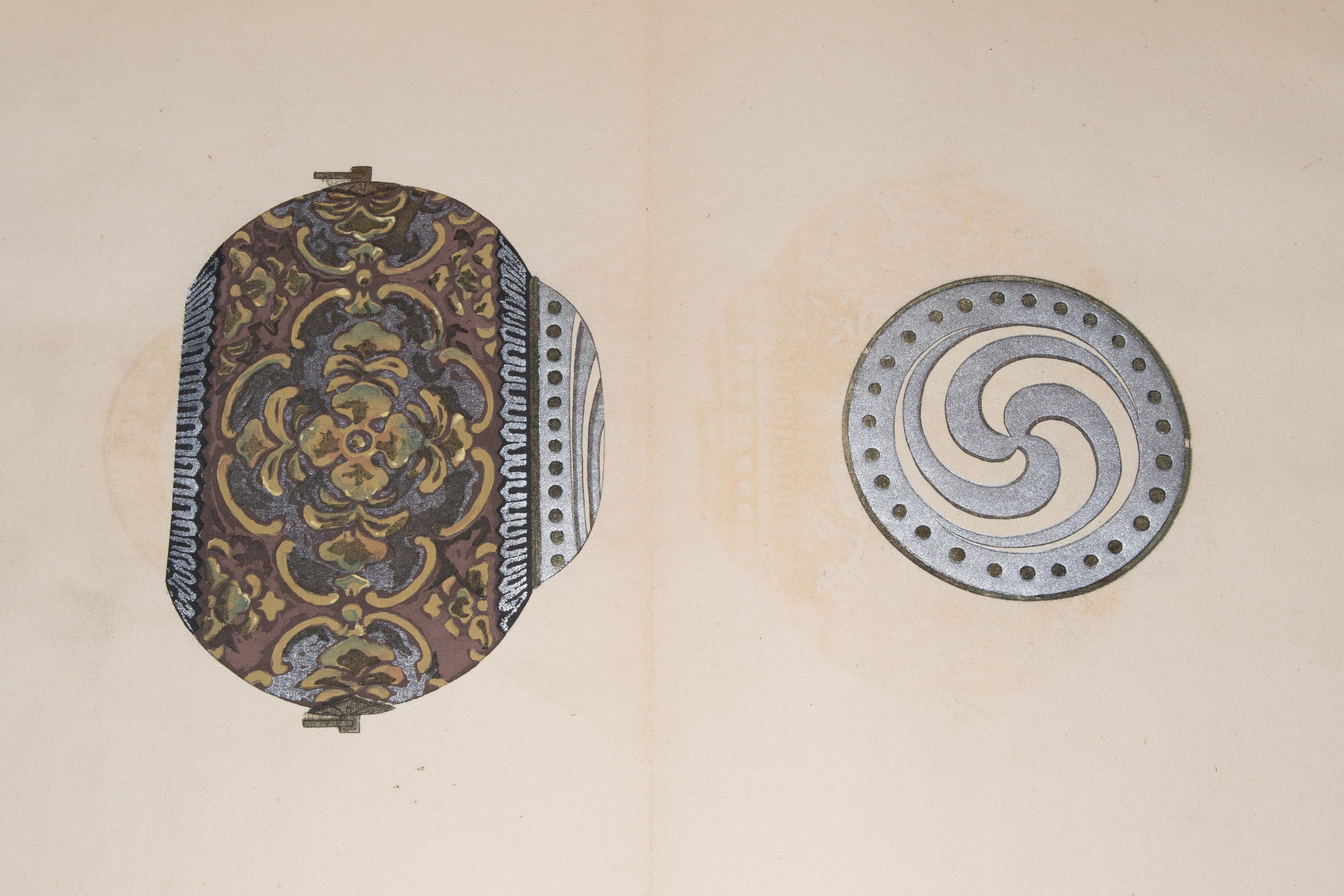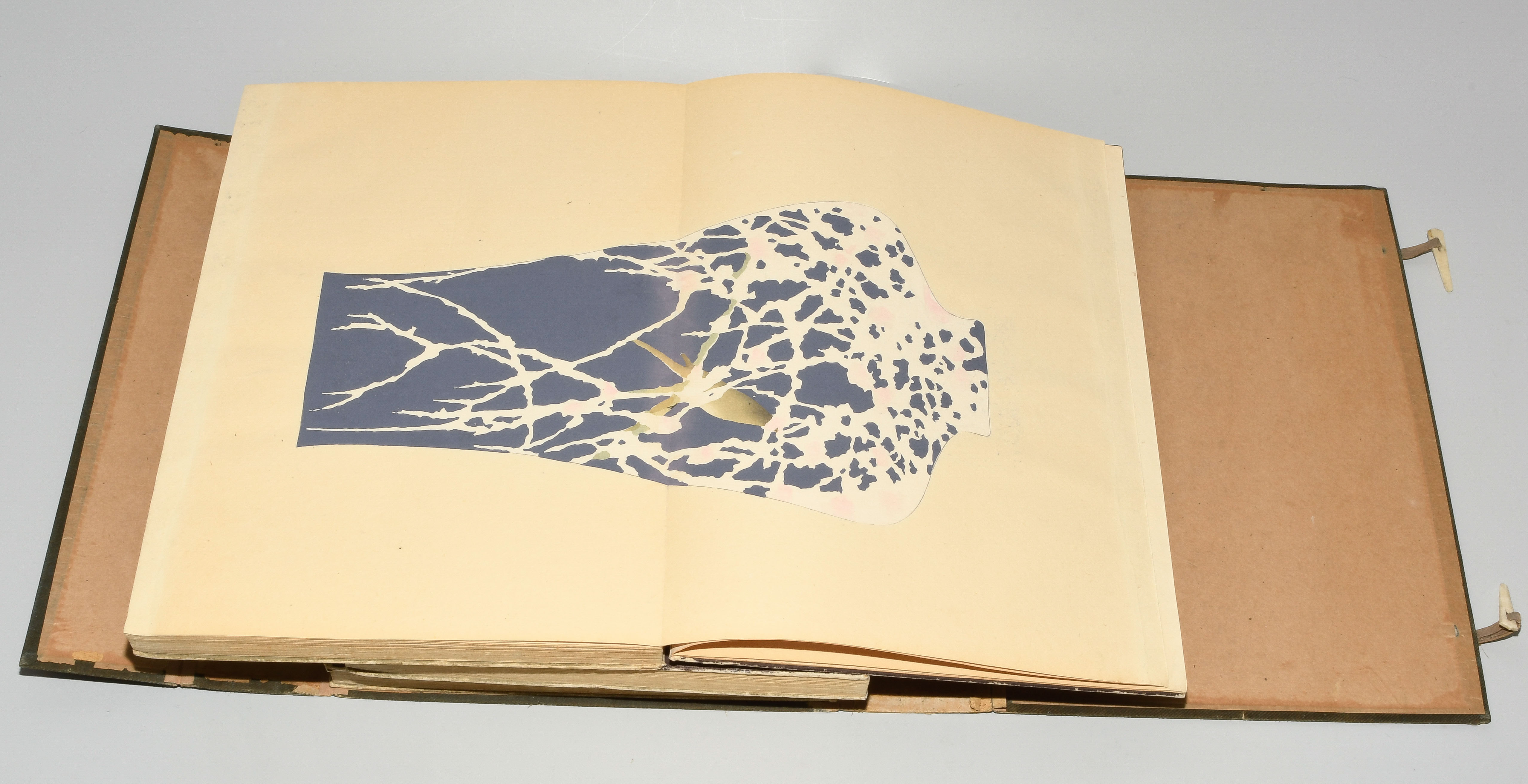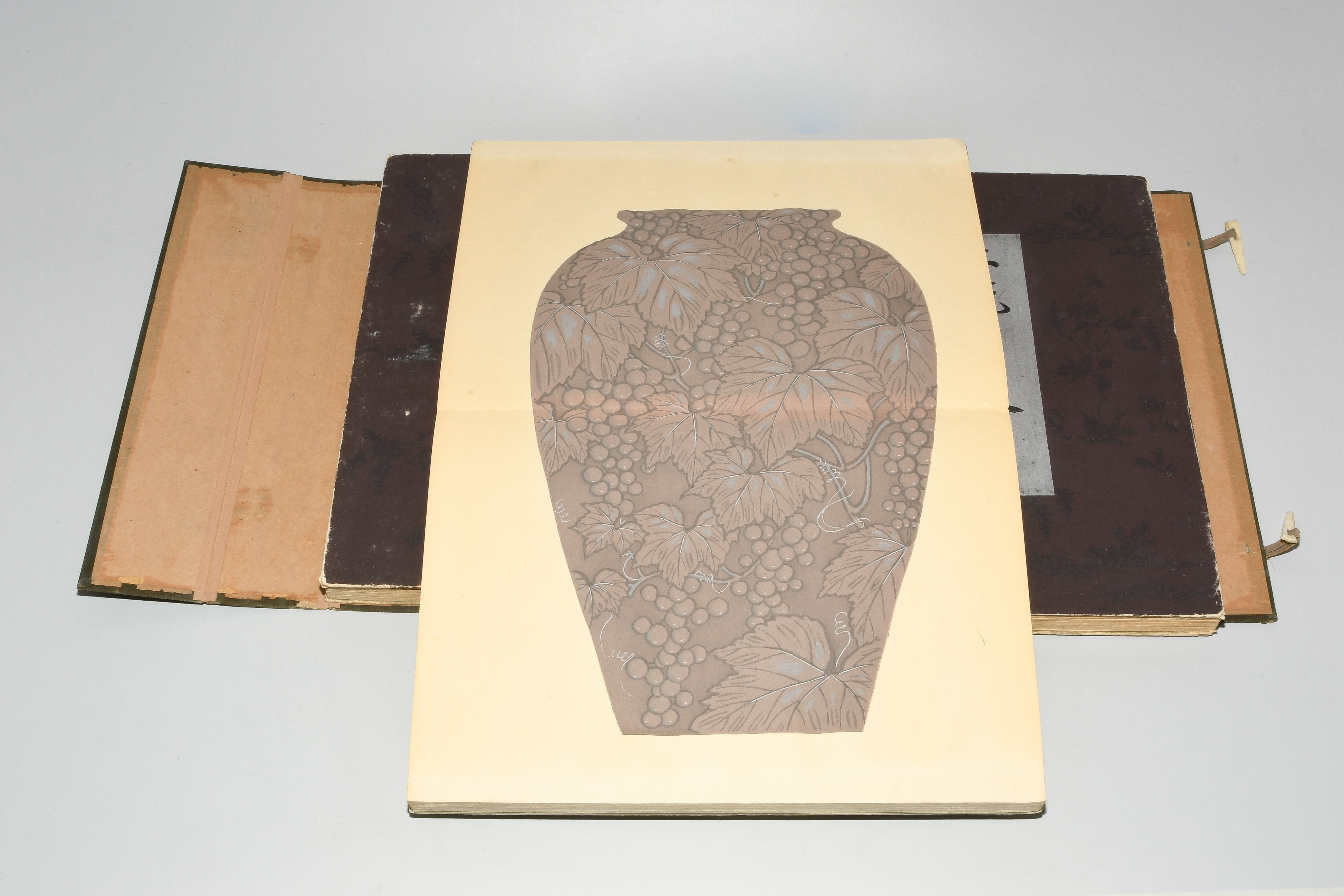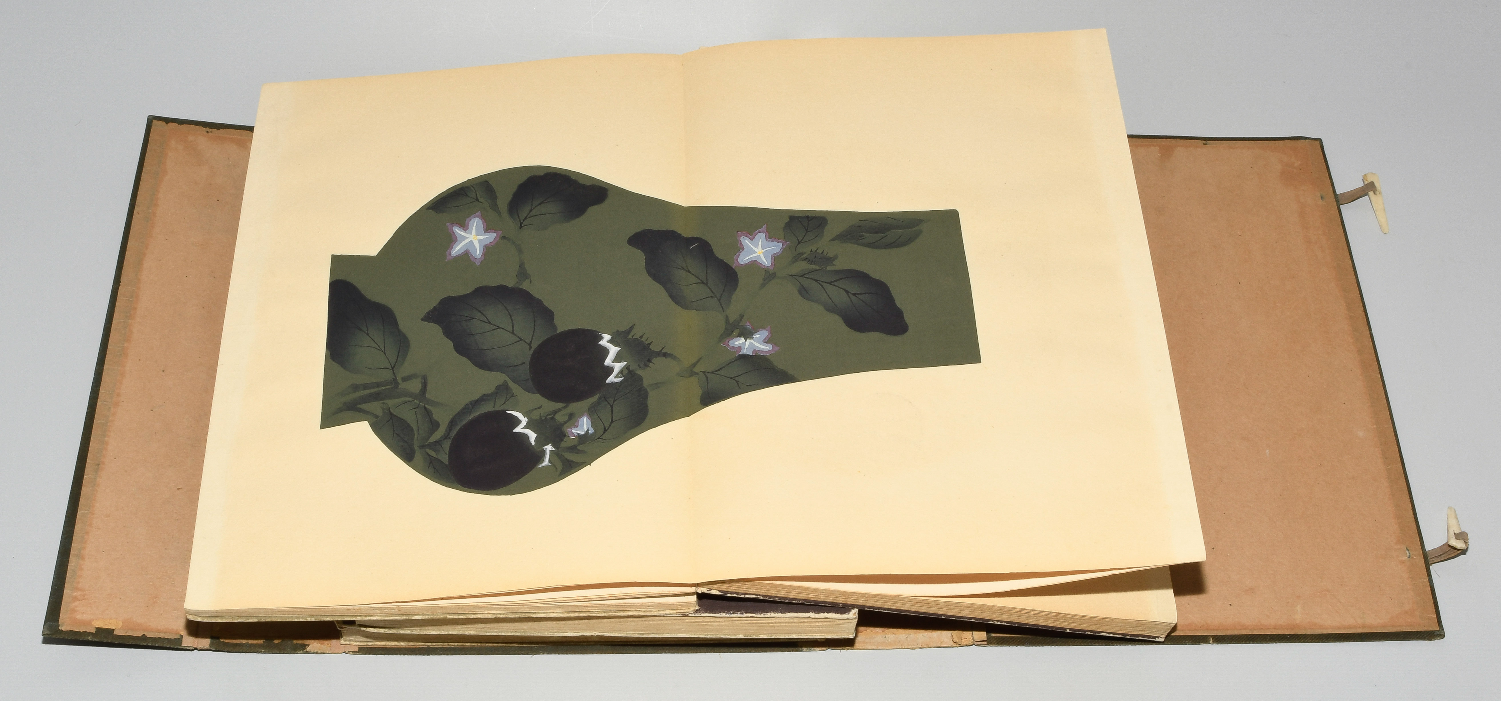 Japan. Farben und Metallpigmente auf Papier. Ori-hon-Bindung. Die Schönheit der Handwerkskunst. Kyôto, Meiji 41 (1908), Unsôdô (Hrsg.). 3 Bde. Mit Kartonschuber.