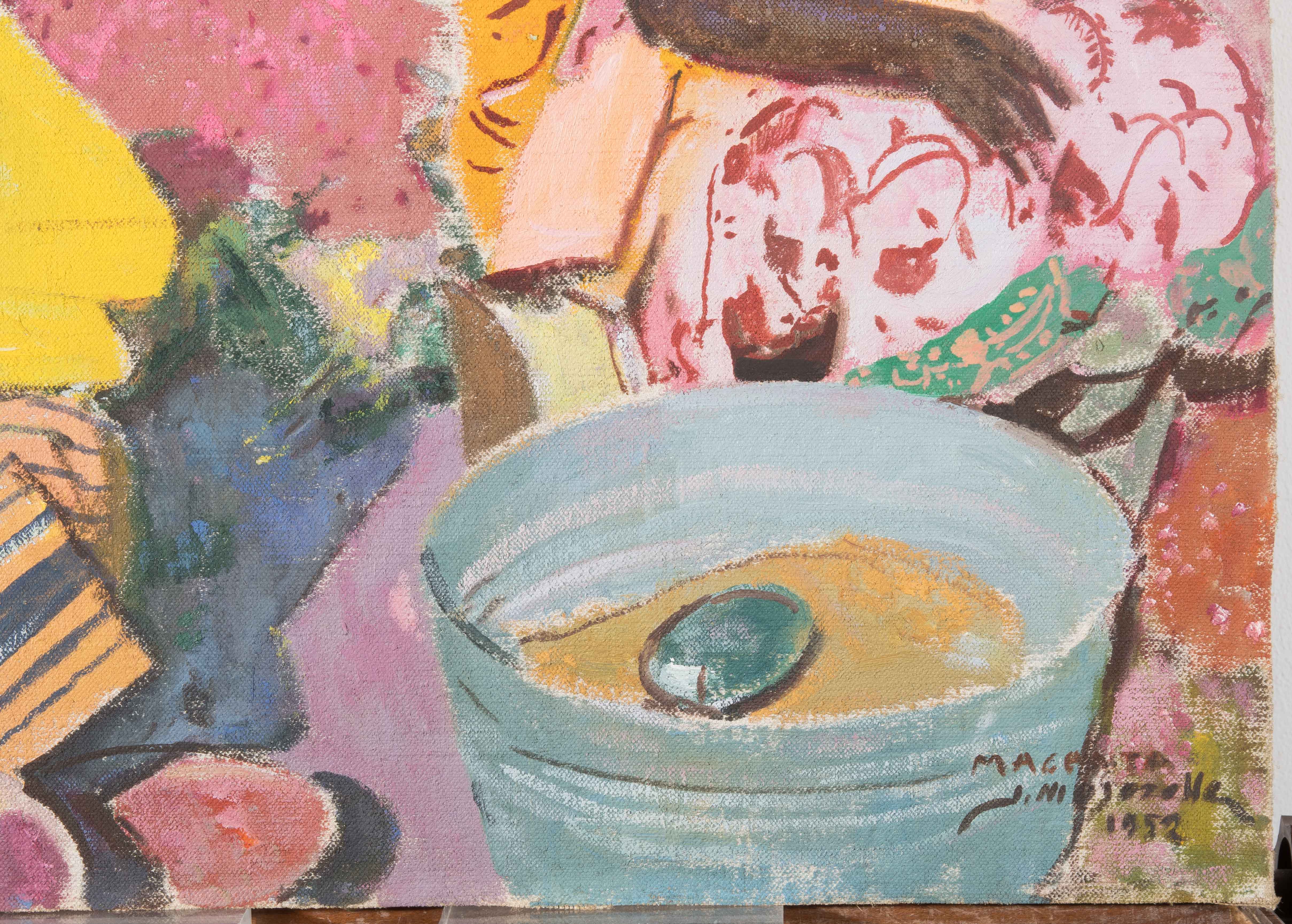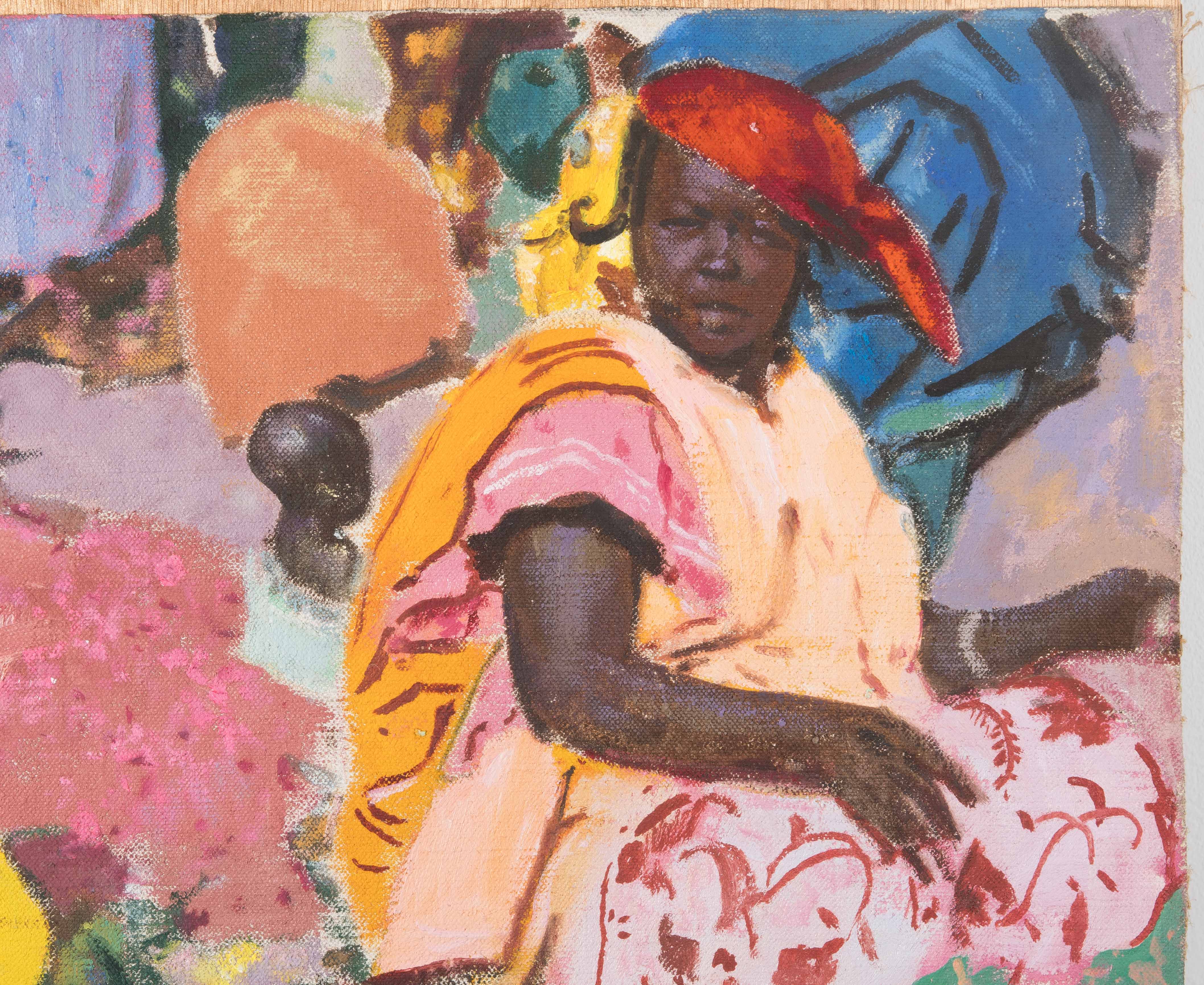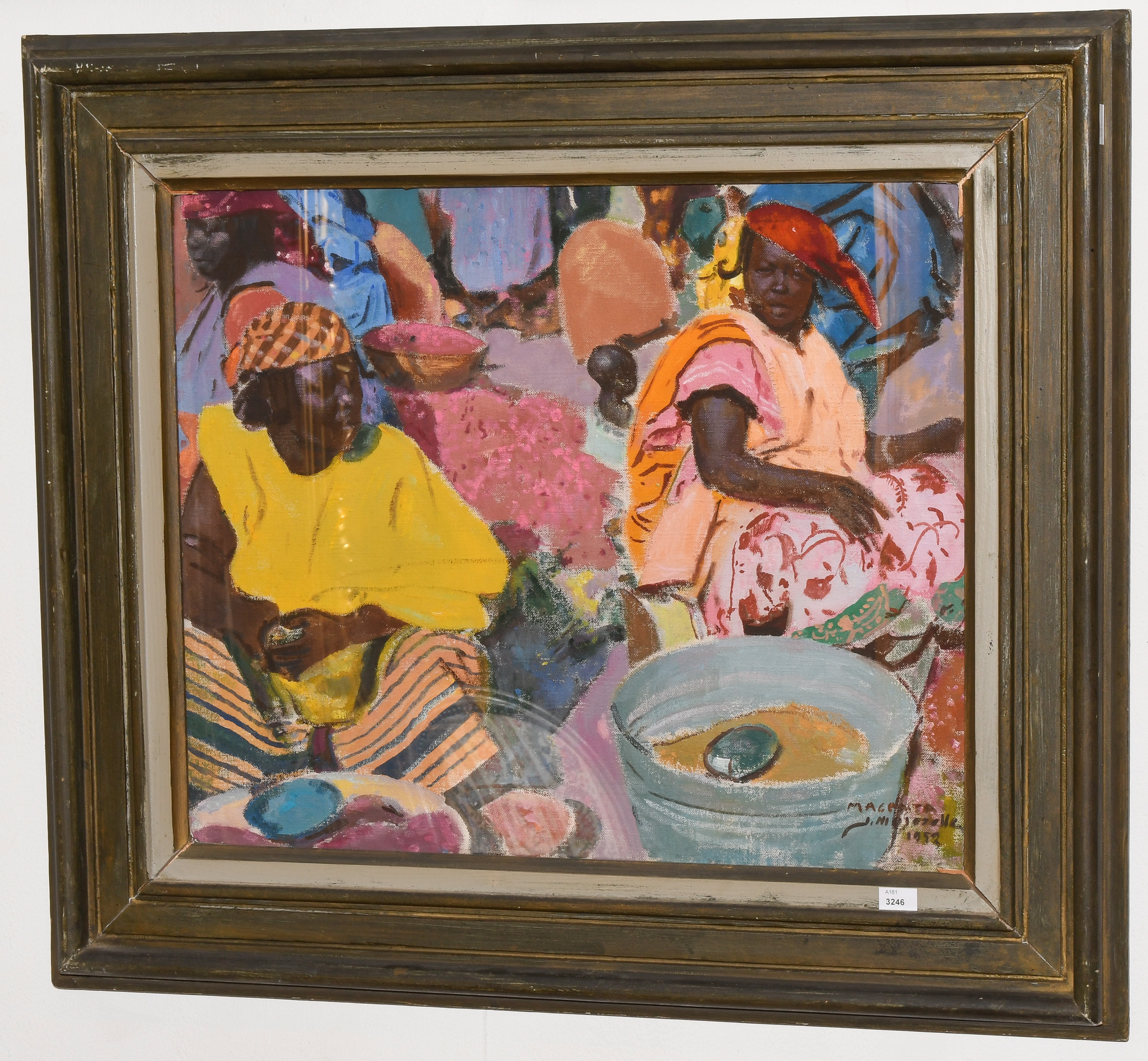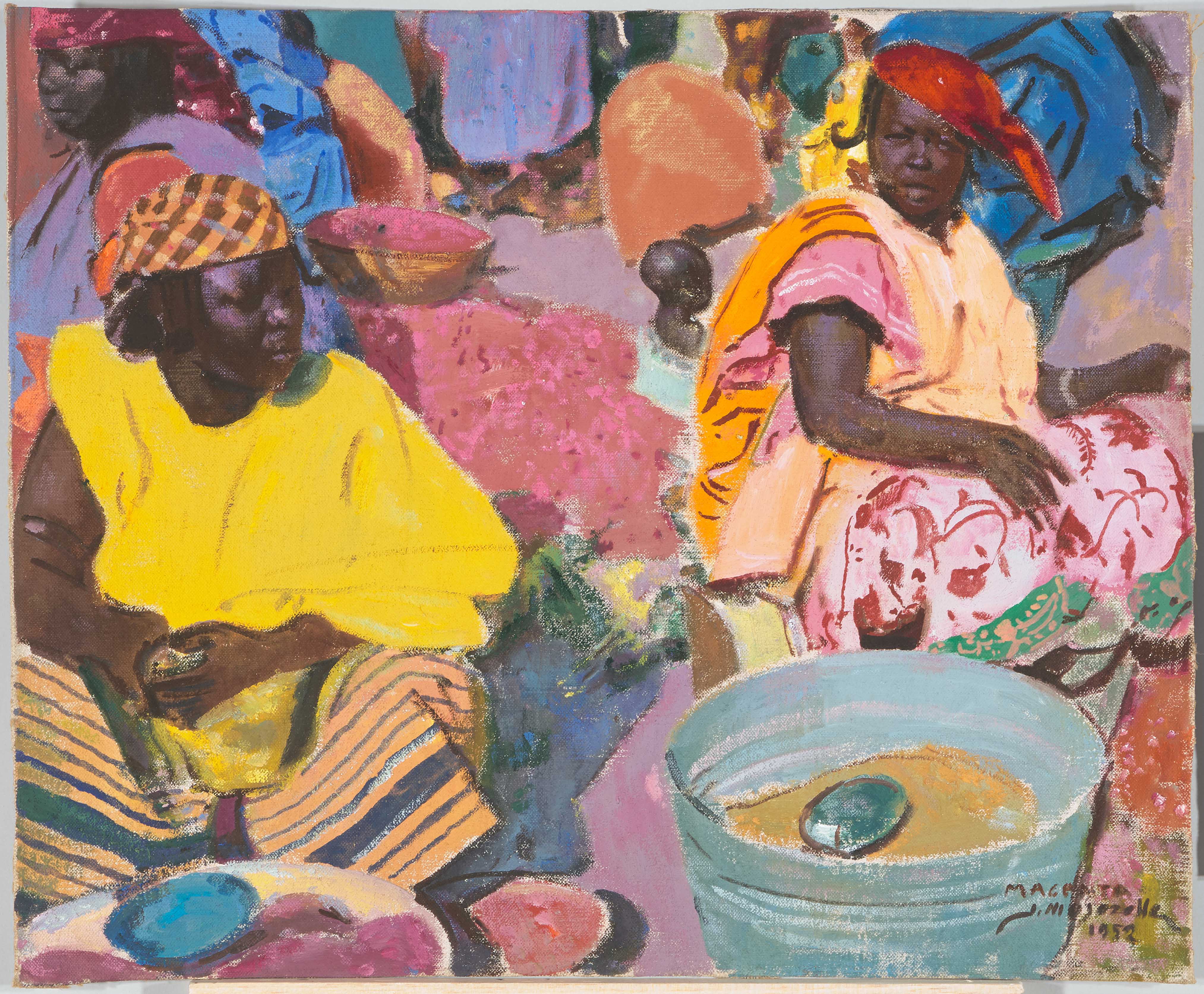 Markt von Macenta, Guinea. 1952. Öl auf Leinwand. Unten rechts ortsbezeichnet, signiert und datiert. Verso auf altem Etikett nummeriert XII. 45x55 cm.