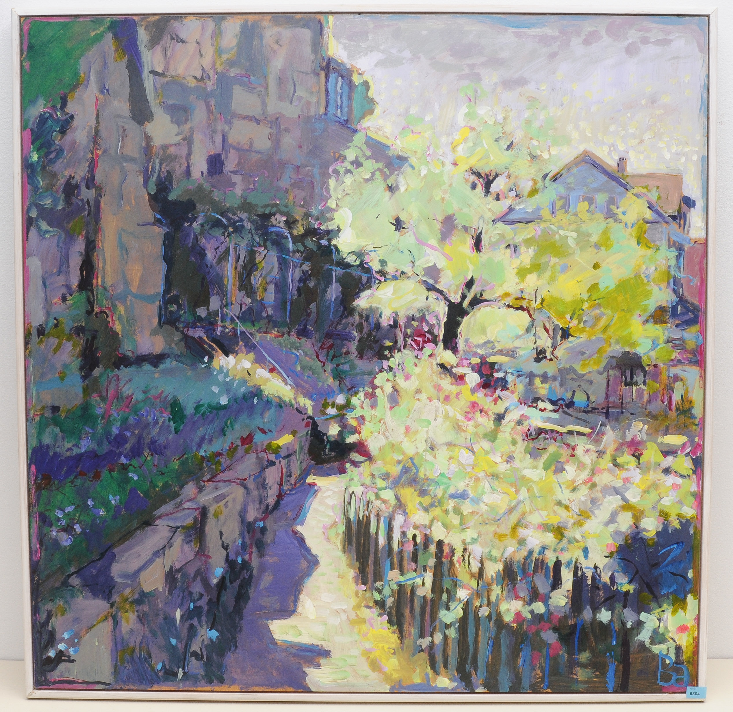 Burgdorf, Garten Kreuzbühl. Öl auf Hartfaserplatte. Unten rechts monogrammiert. 83x82 cm.