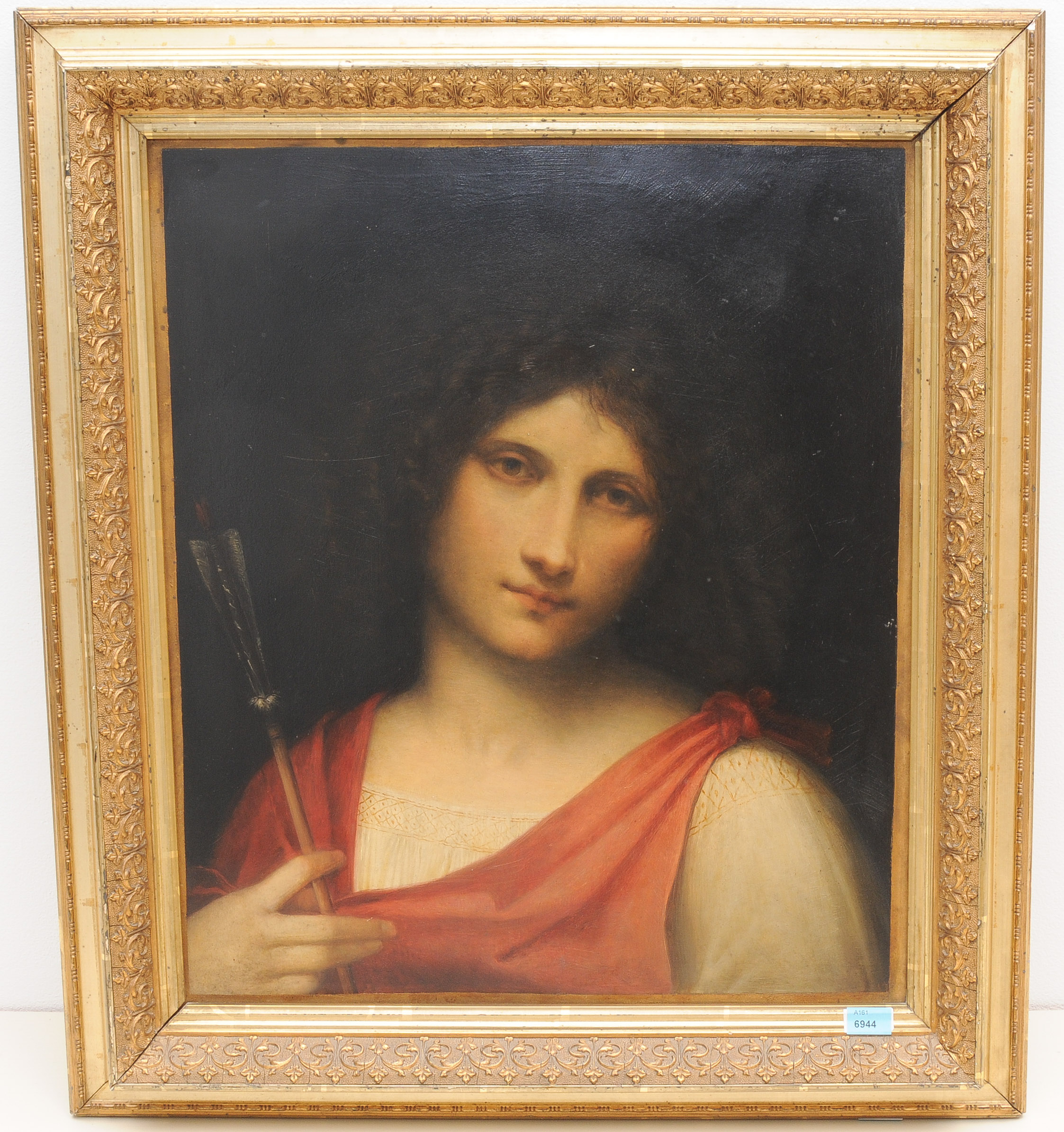 Der heilige Sebastian. 1899. Öl auf Holz. Oben links bezeichnet "Copie nach Correggio von Maria Schöffmann Wien" und datiert. 49x41,5 cm.