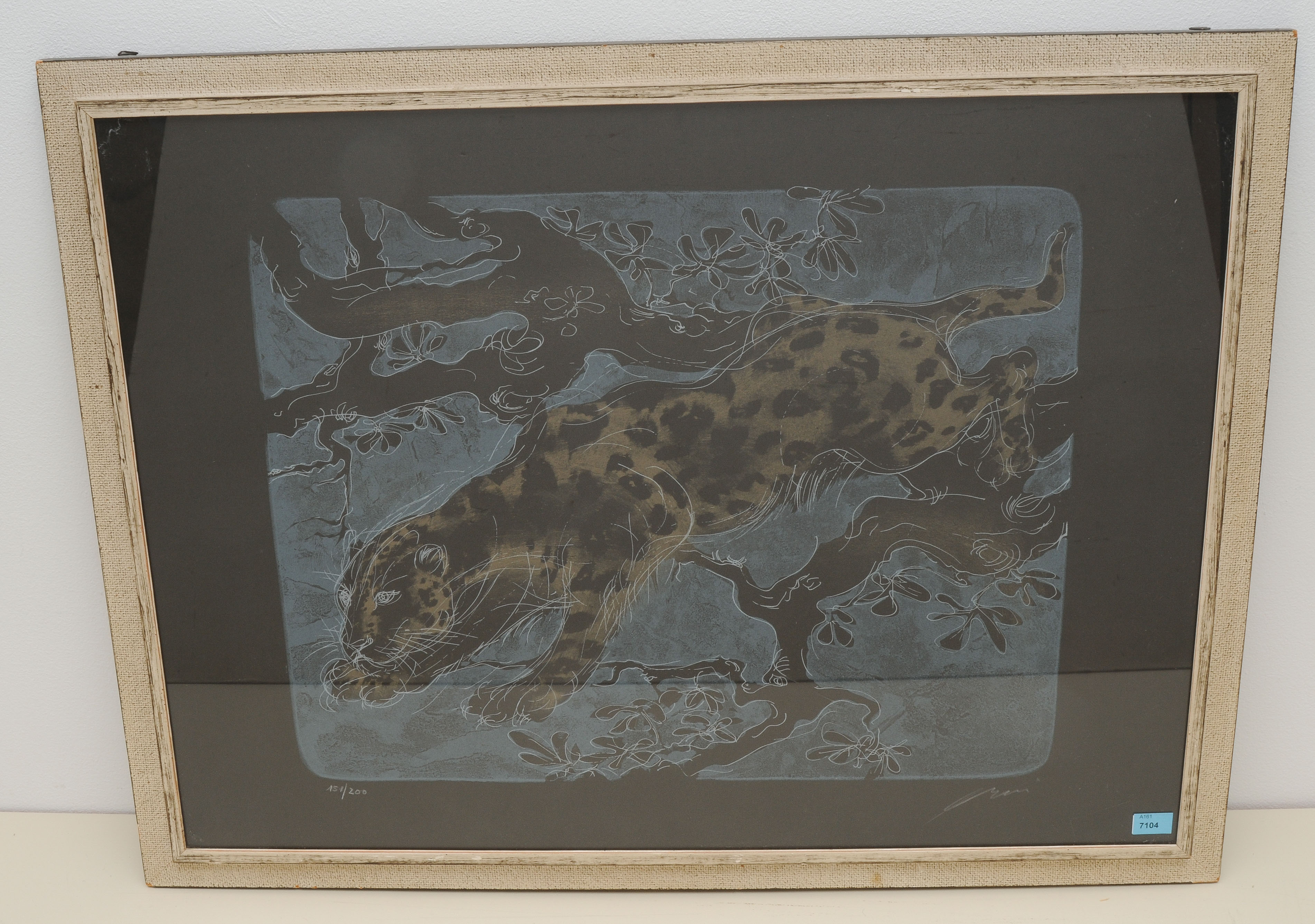 "Panther". 1956. Farblithographie. 151/200. Unten rechts signiert. Lichtmass 47x64 cm. Gerahmt.