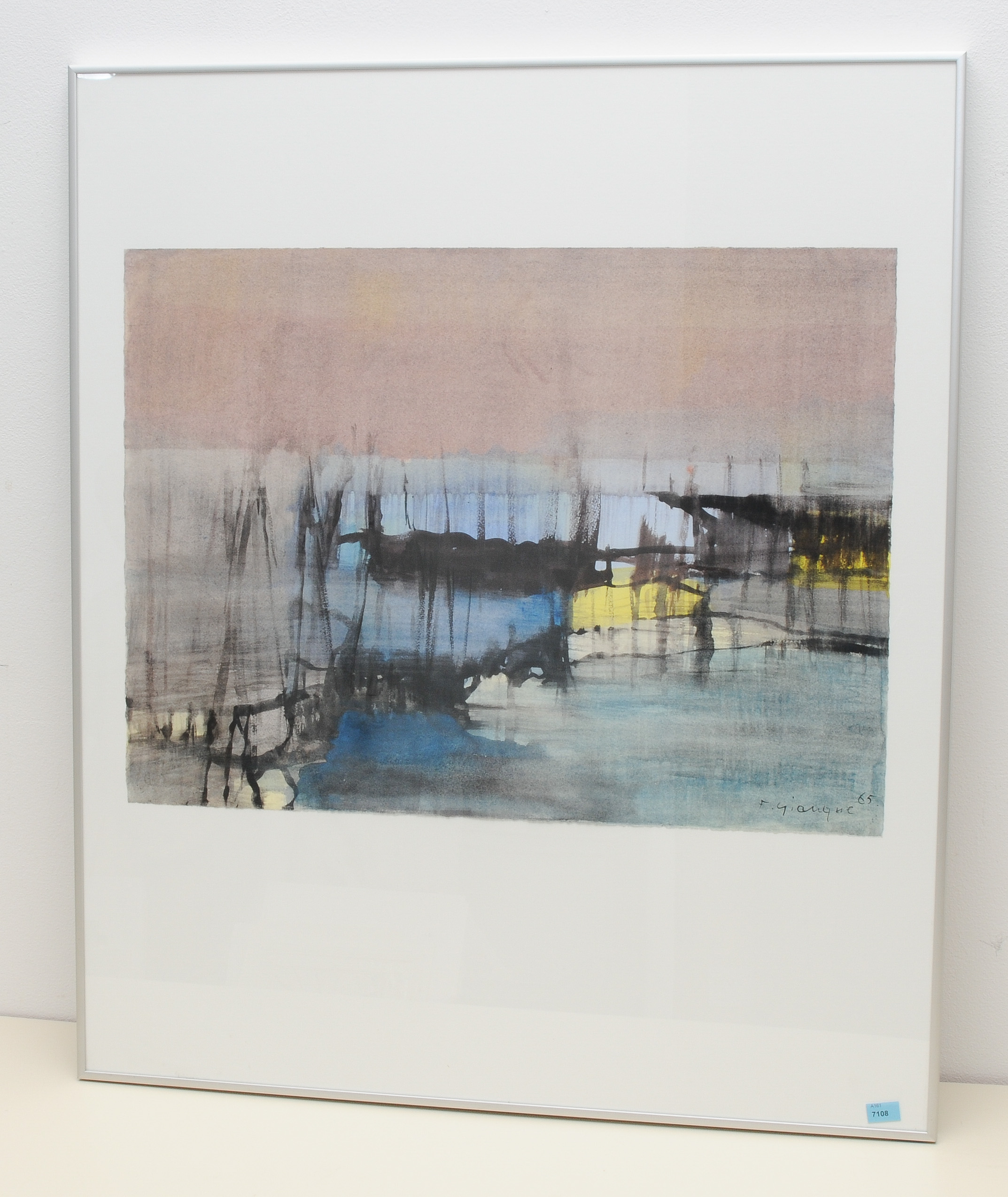 Schilf am See. 1965. Aquarell auf Papier. Unten rechts signiert und datiert. Blattgrösse 43,3x59,2 cm. Gerahmt.