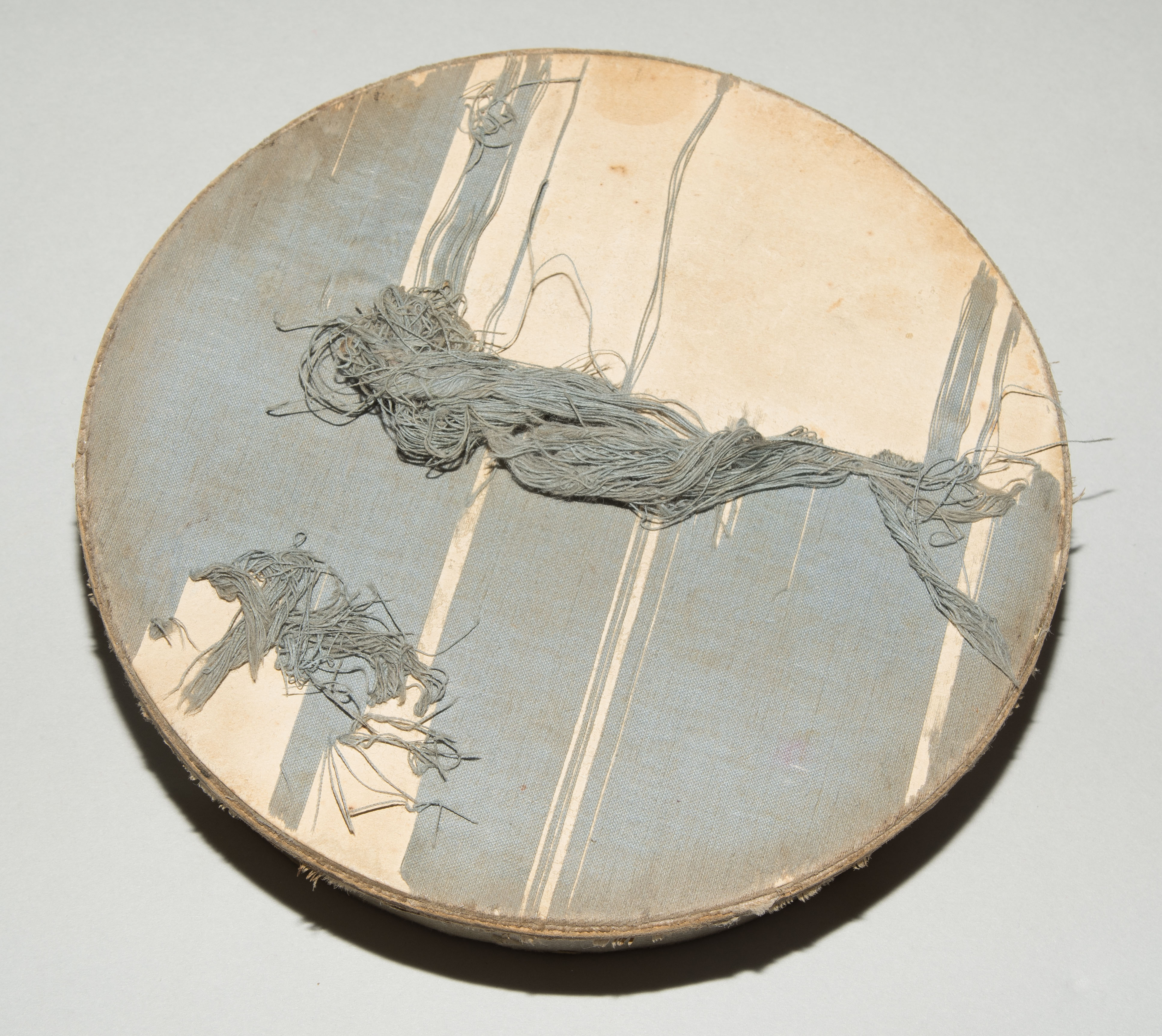 - Alters- und Gebrauchsspuren. 1 Flakon und Stöpsel fehlen. Seide brüchig.