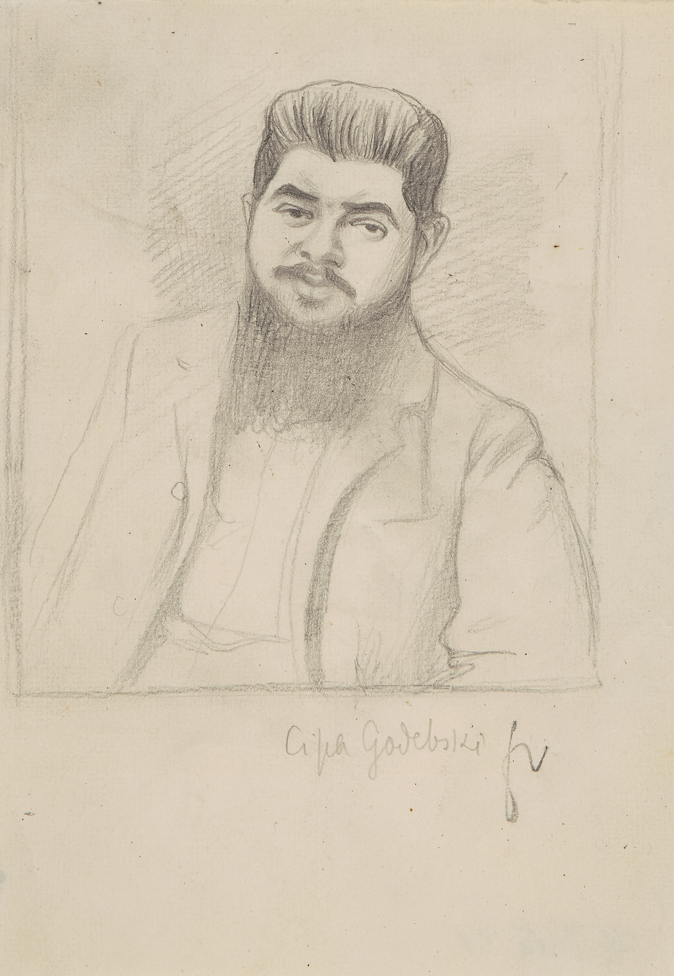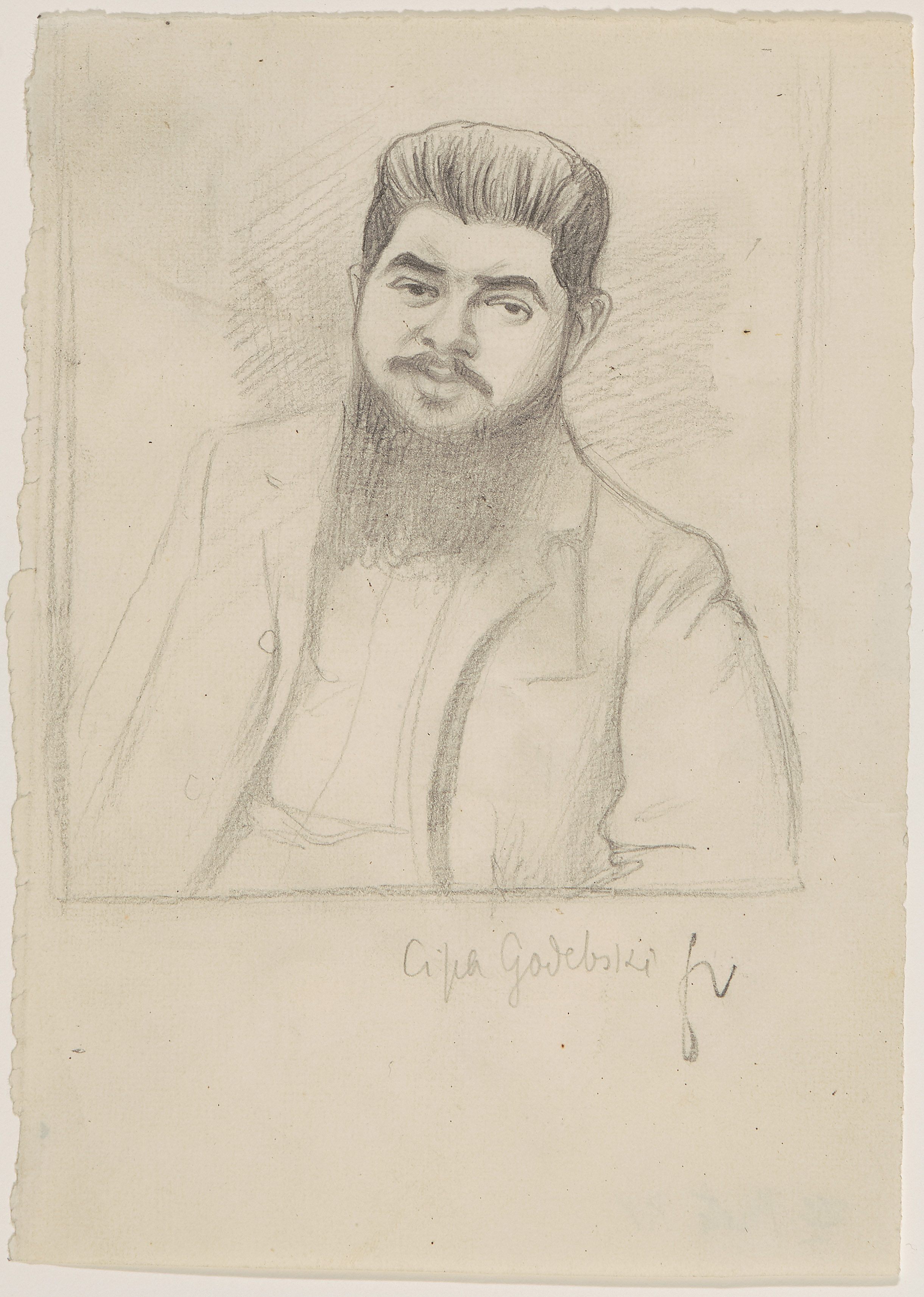 "Cipa Godebsky". Bleistift auf Papier. Unten rechts monogrammiert. Unten mittig betitelt. Verso in Bleistift bezeichnet: "599 Photo P.V." Blattgrösse 18,1x12,8 cm. -Blatt minimst gebräunt. Ränder und Ecken minimst bestossen. Verso am rechten Rand an Rückkarton montiert.