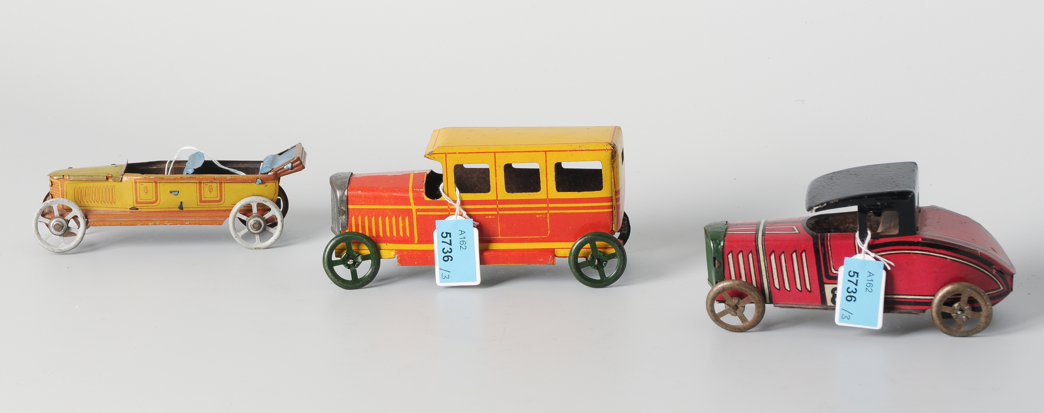 1920/30er Jahre. Blech, farbig lithographiert. U.a. Georg Fischer, Rico und Meier(?). 11–12,5 cm.