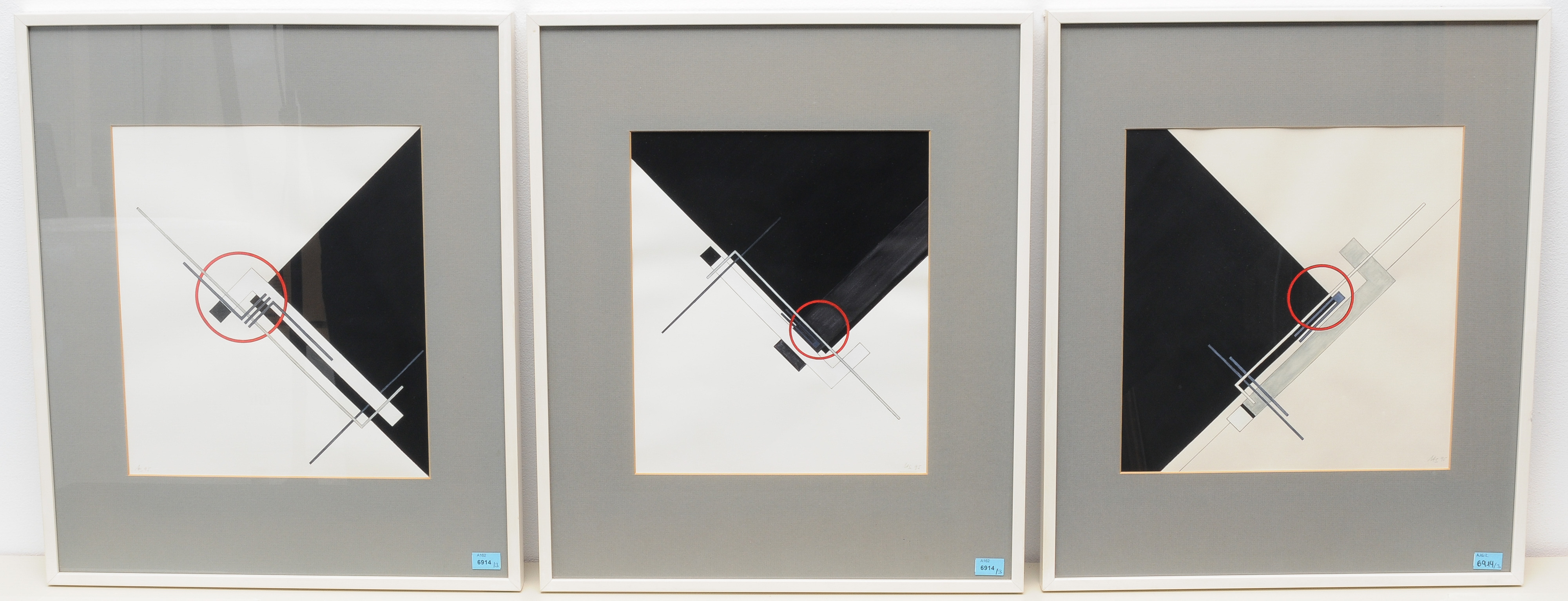 Ohne Titel. 1995. Lot drei Aquarelle. Alle unten rechts monogrammiert und datiert. Lichtmass 31x27; 30x29 und 30x25,5 cm. Alle gerahmt.