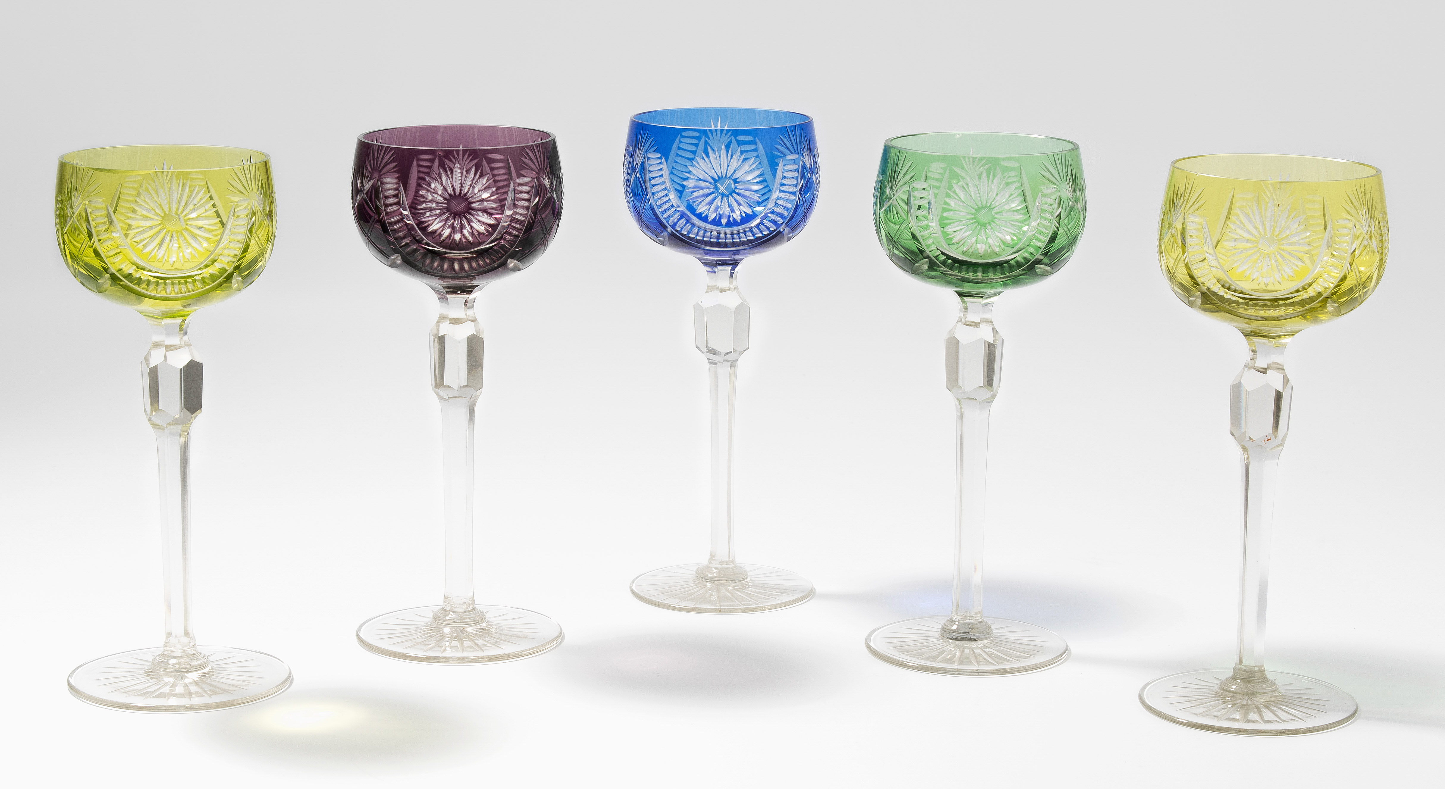 20.Jh. Farbloses Kristallglas, polychrom überfangen. Schliffdekor. H 20 cm.
