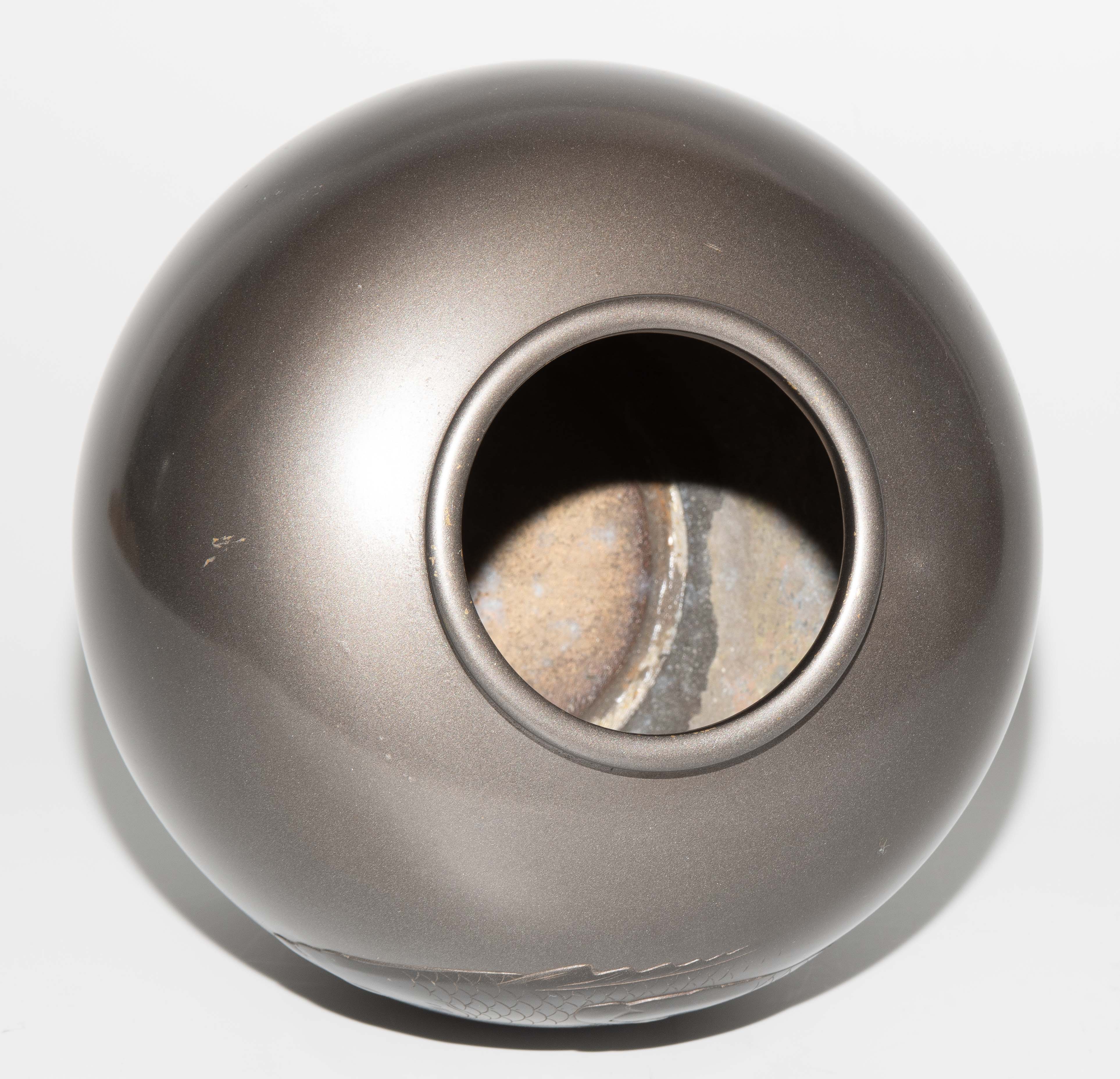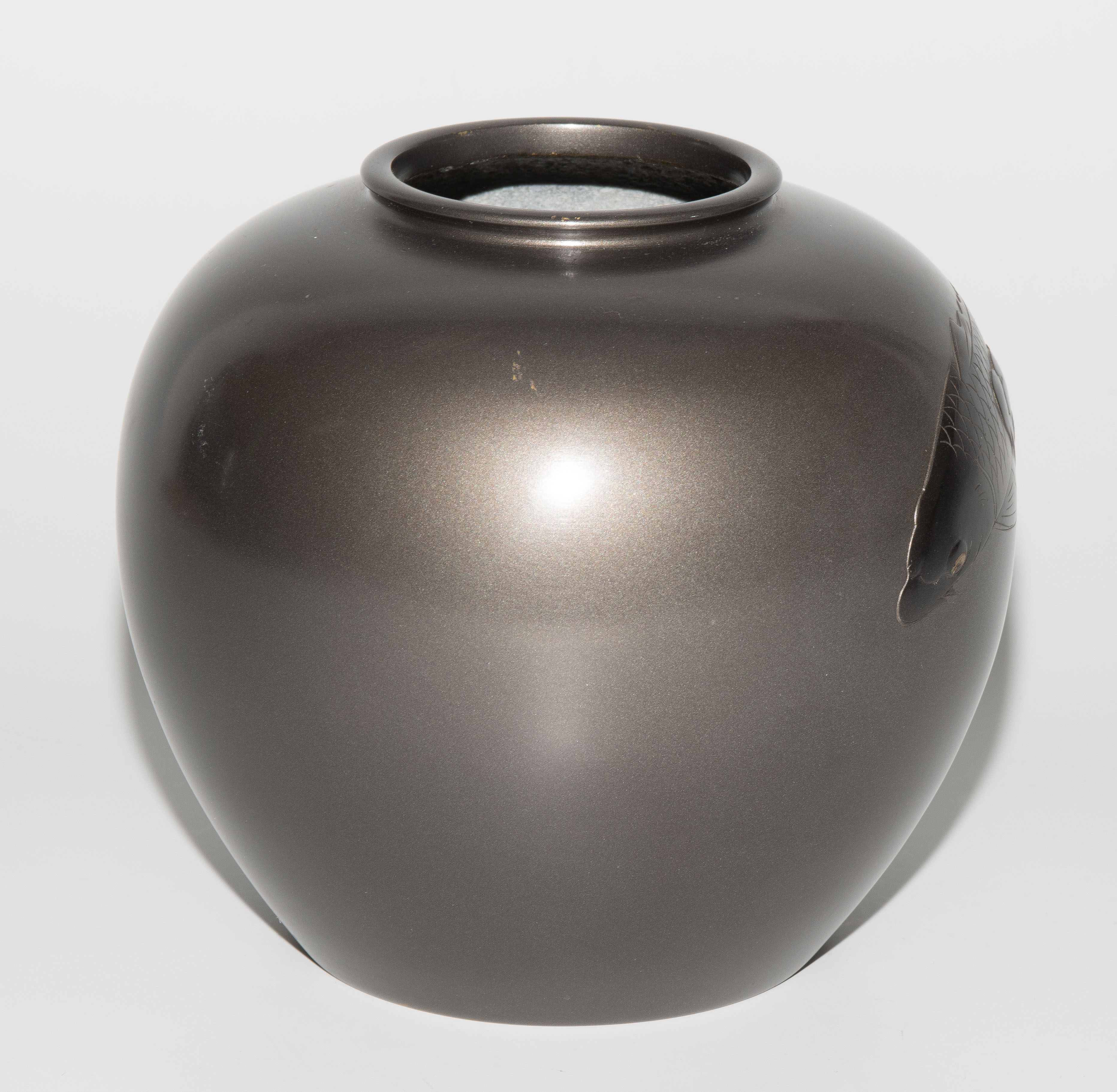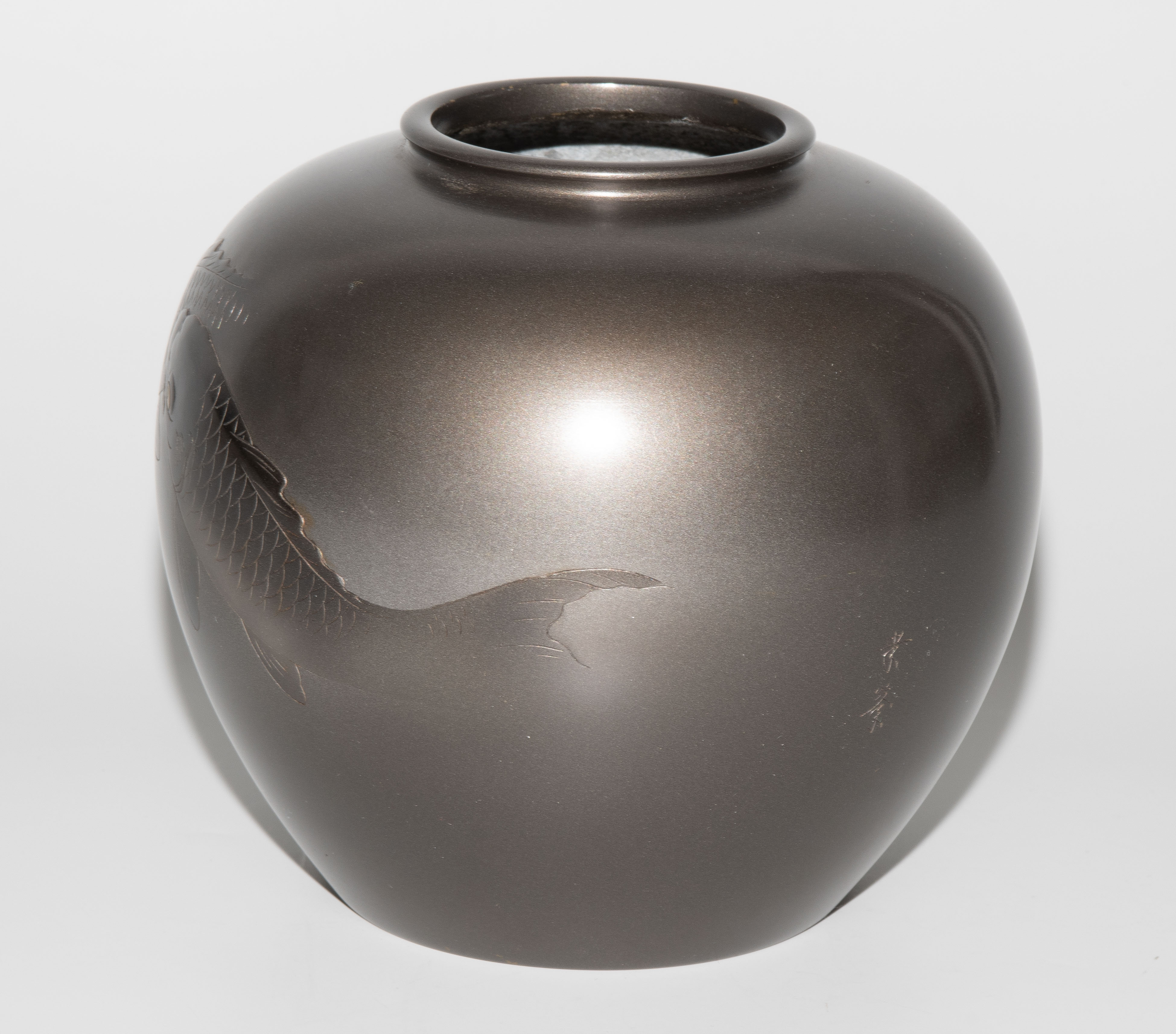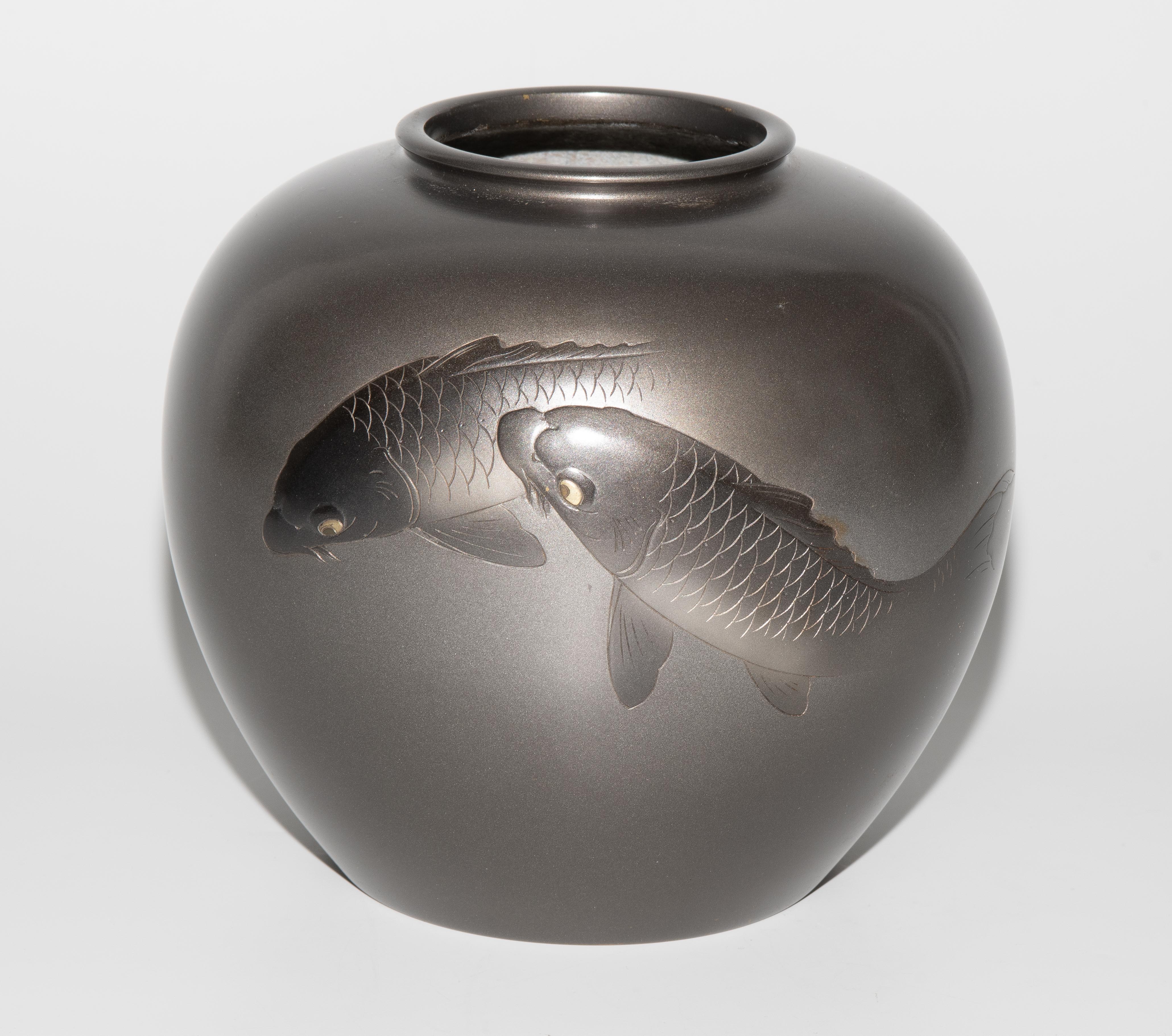 Japan, Anfang 20.Jh. Bronze. Signiert. Leicht gedrückt-kugelige Form mit schmaler Lippe. Dekor zweier Koi-Fische. H 15,5 cm. - Leichte Kratzer.