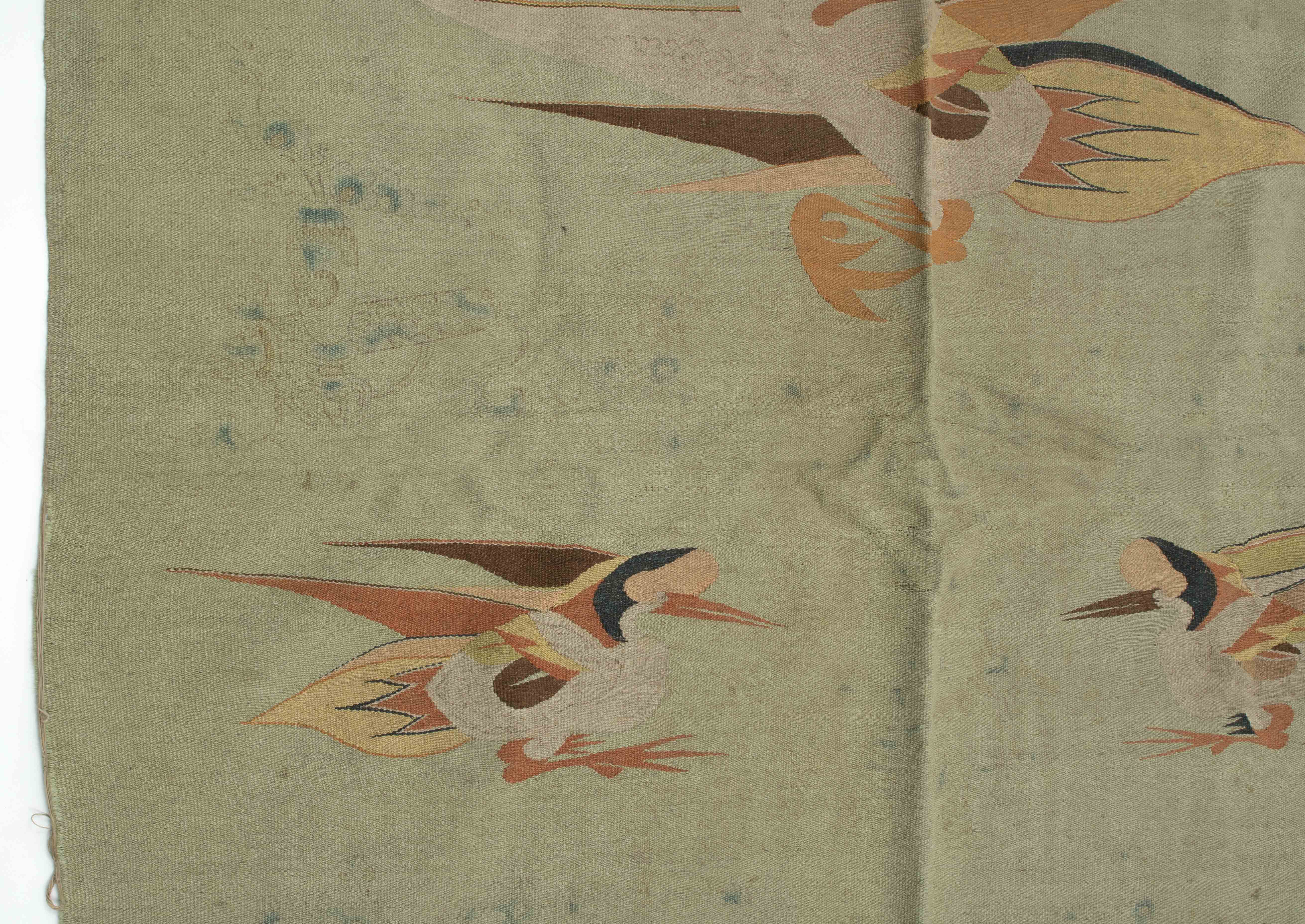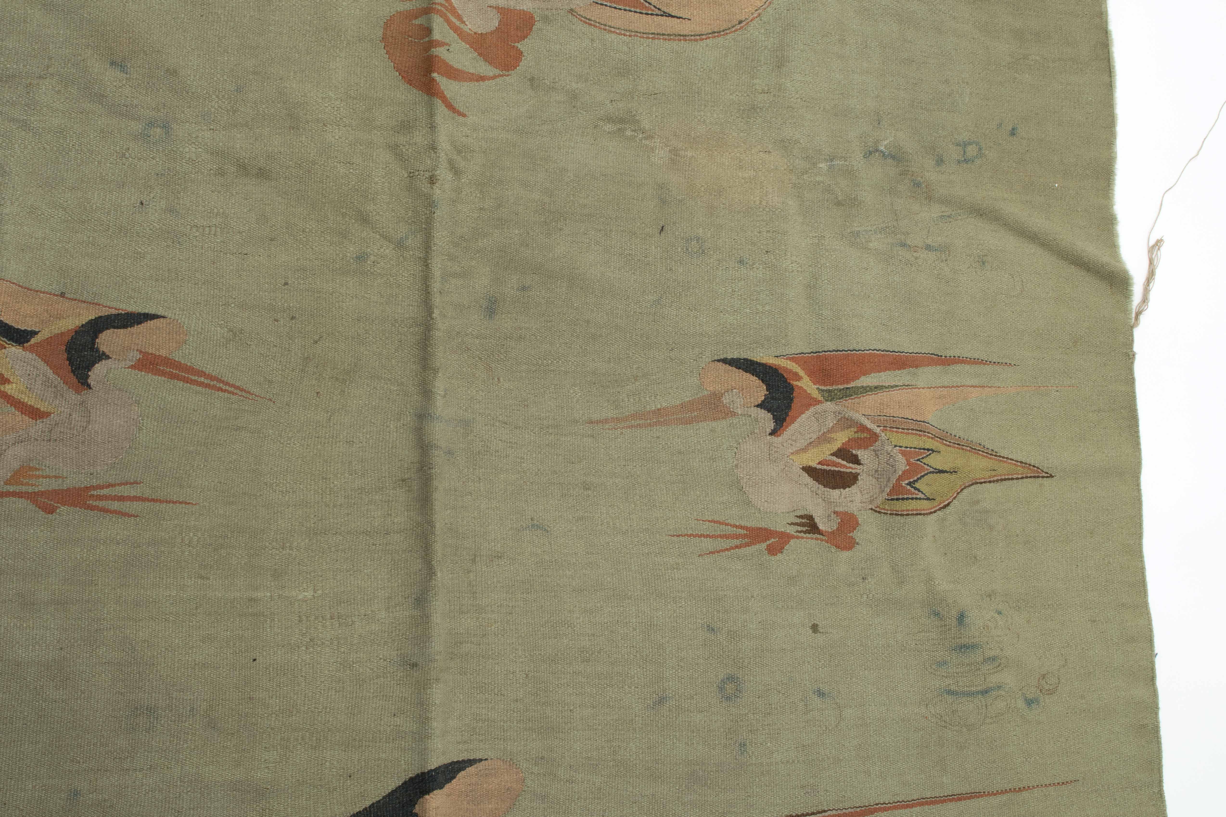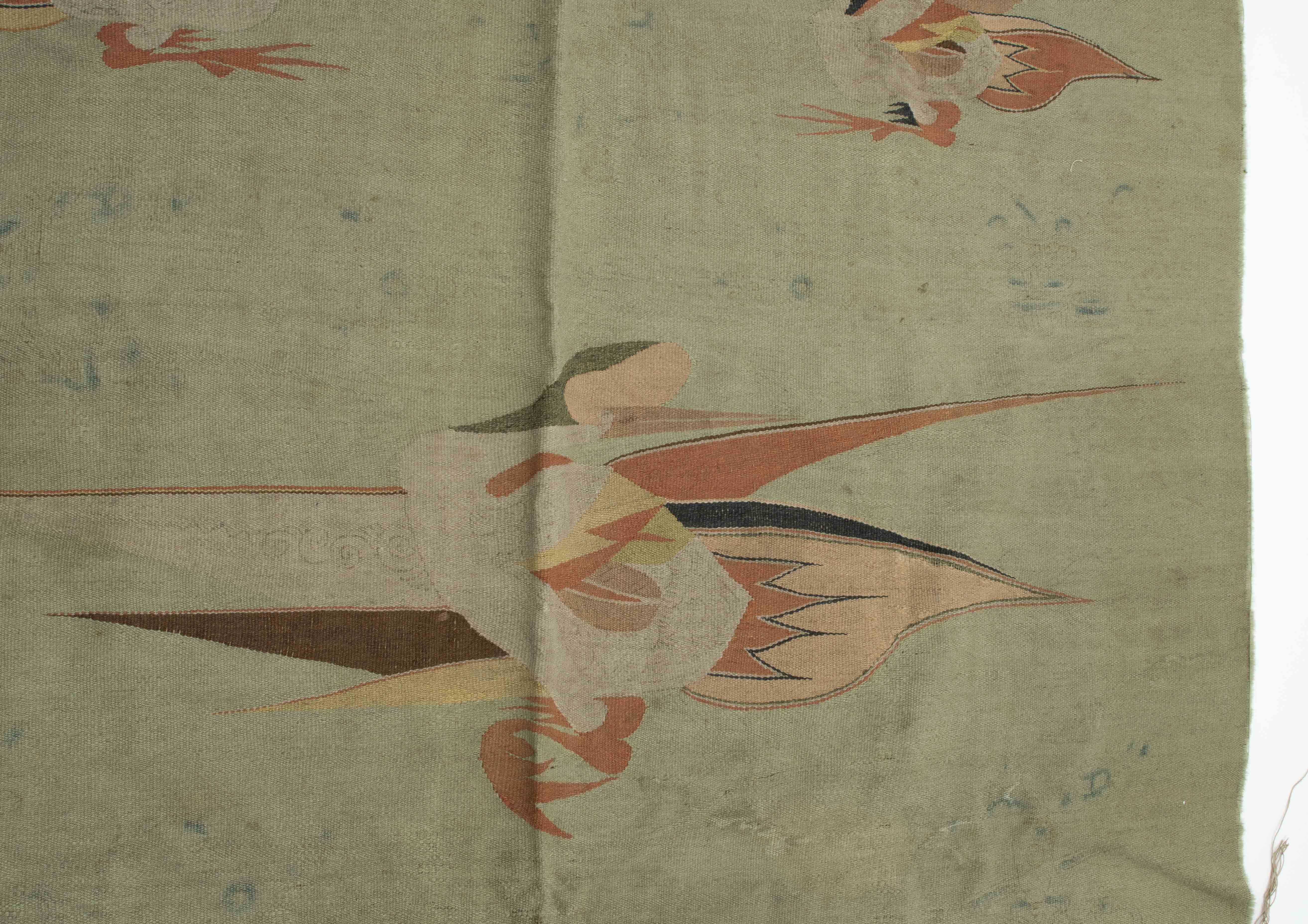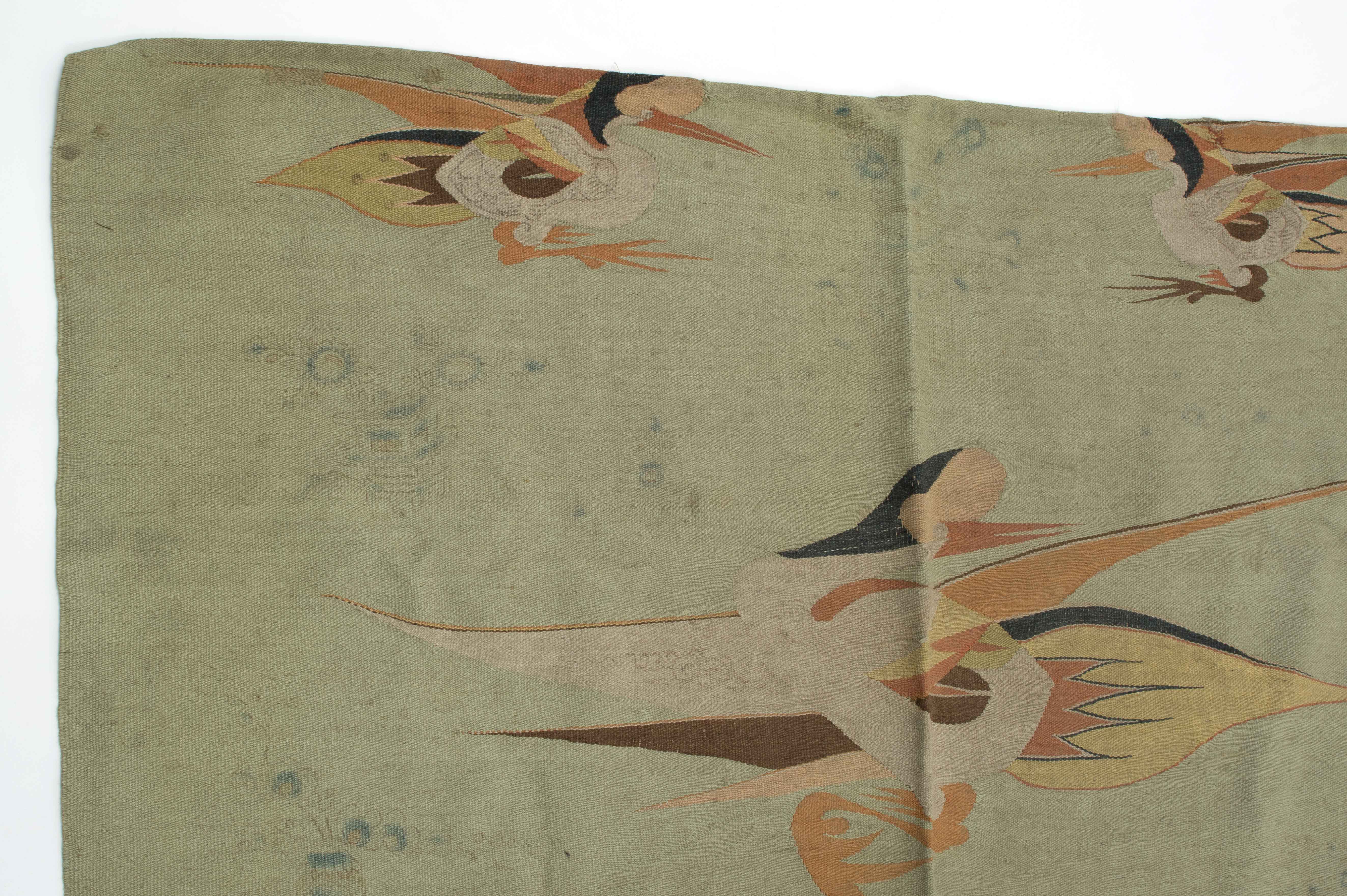 Mongolei, um 1920. Flachgewebe aus Wolle. Darstellungen von fliegenden Vögeln. 238x140 cm. - Alters- und Gebrauchspuren. Fleckig.