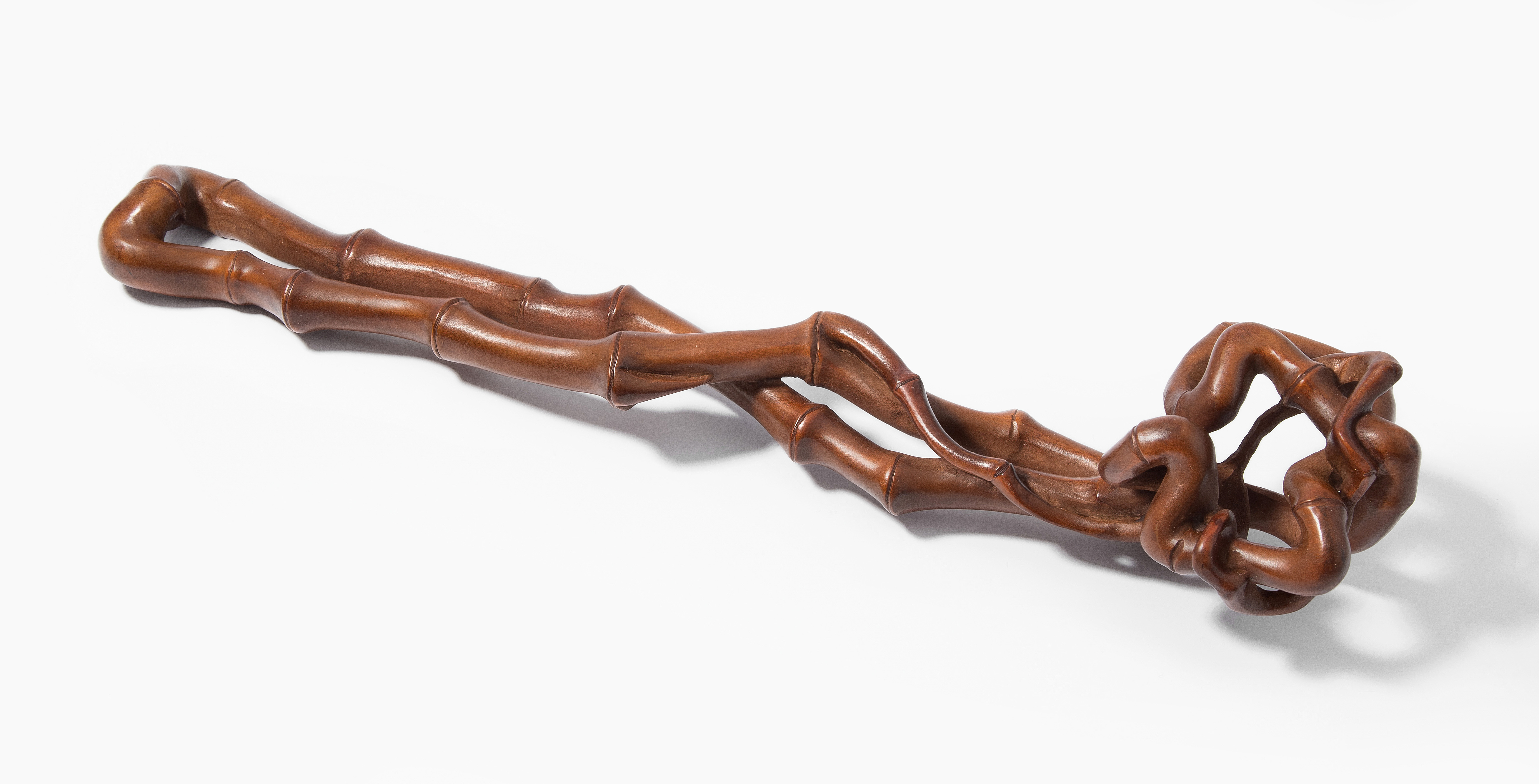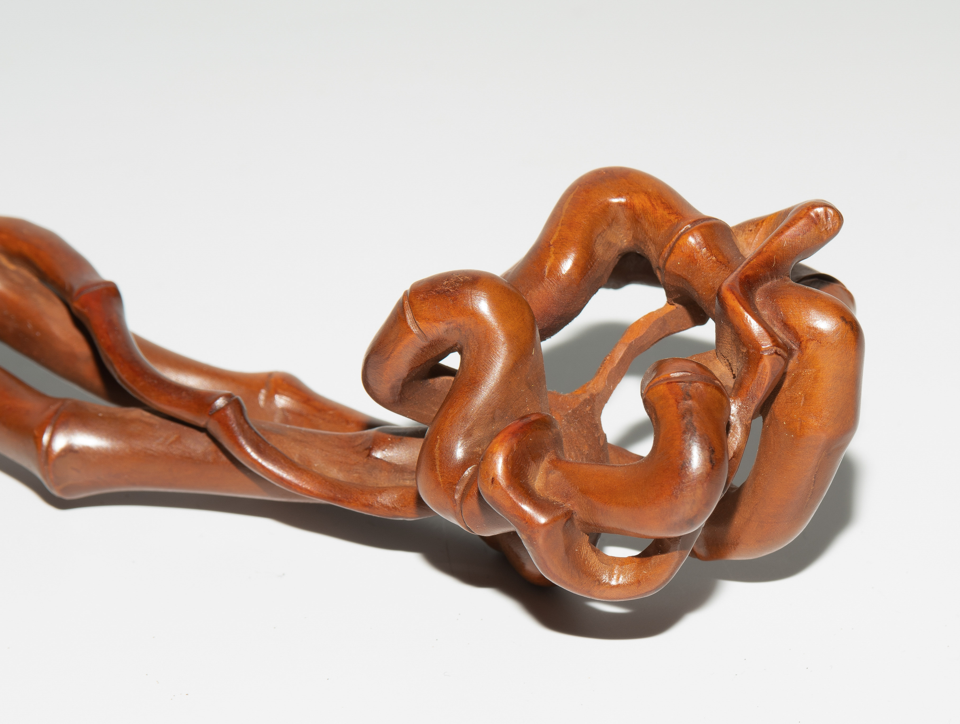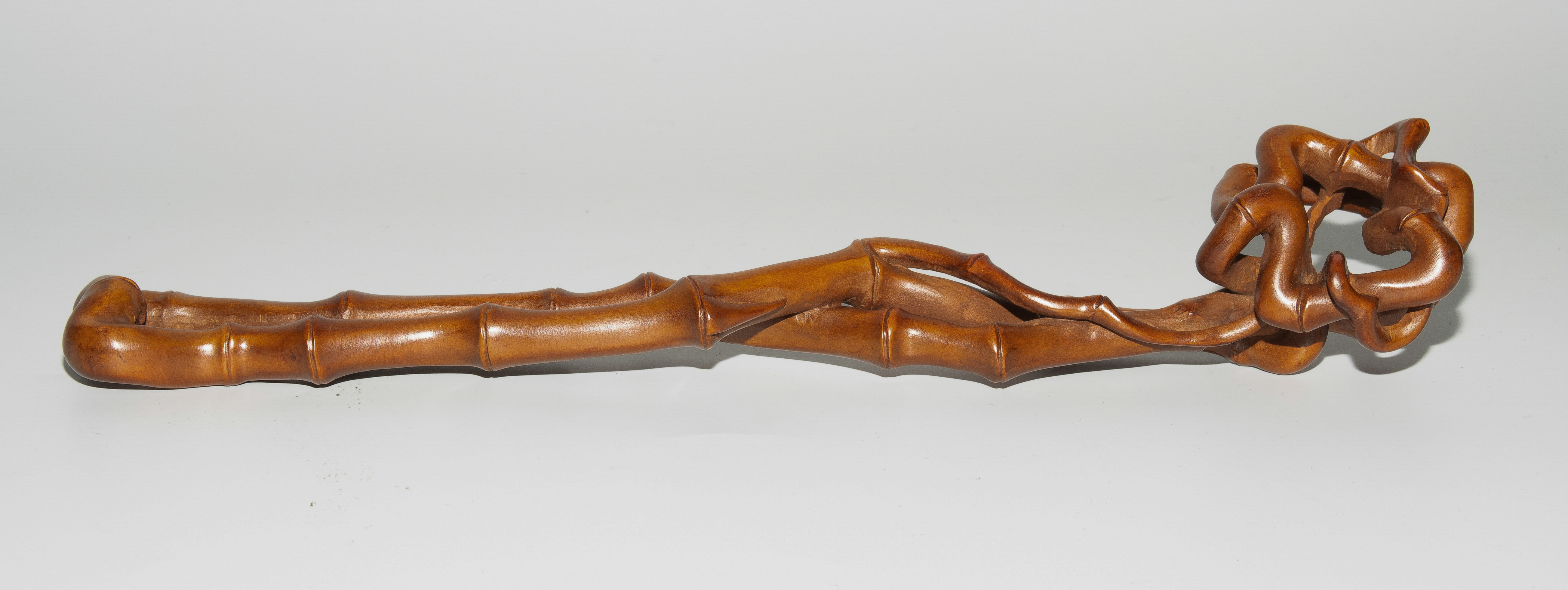 China, 19./20.Jh. Holz, geschnitzt. Windenden Bambus imitierend. L 29,5 cm.