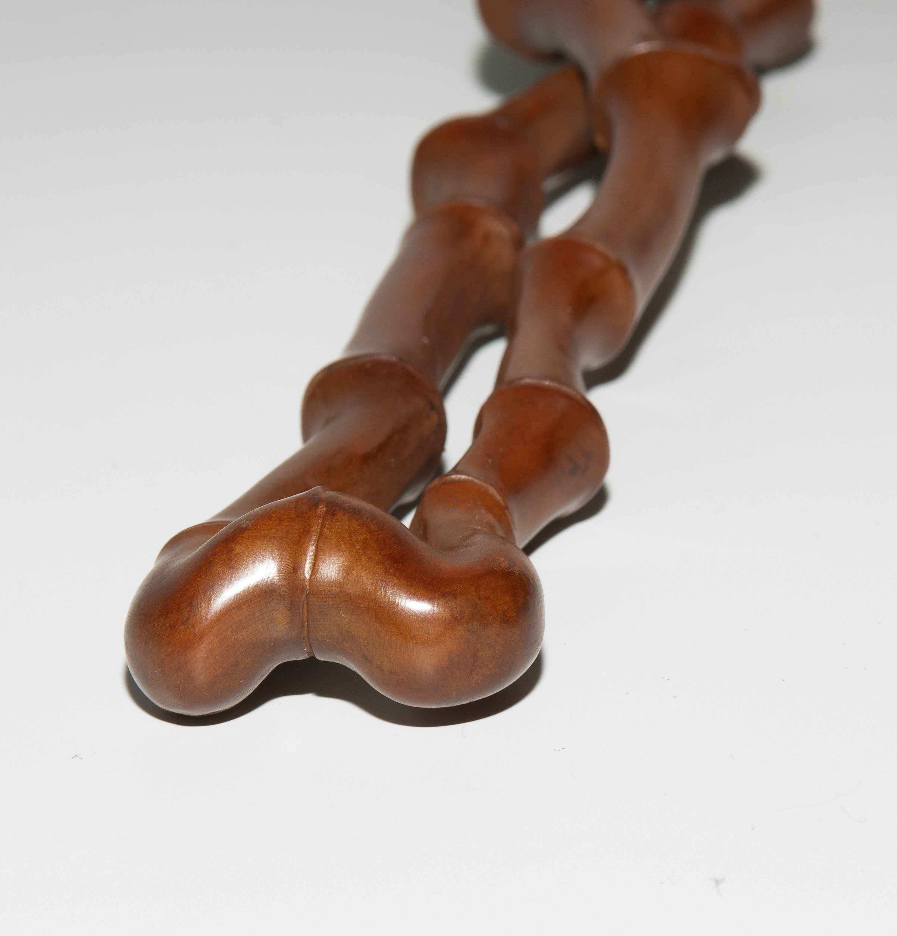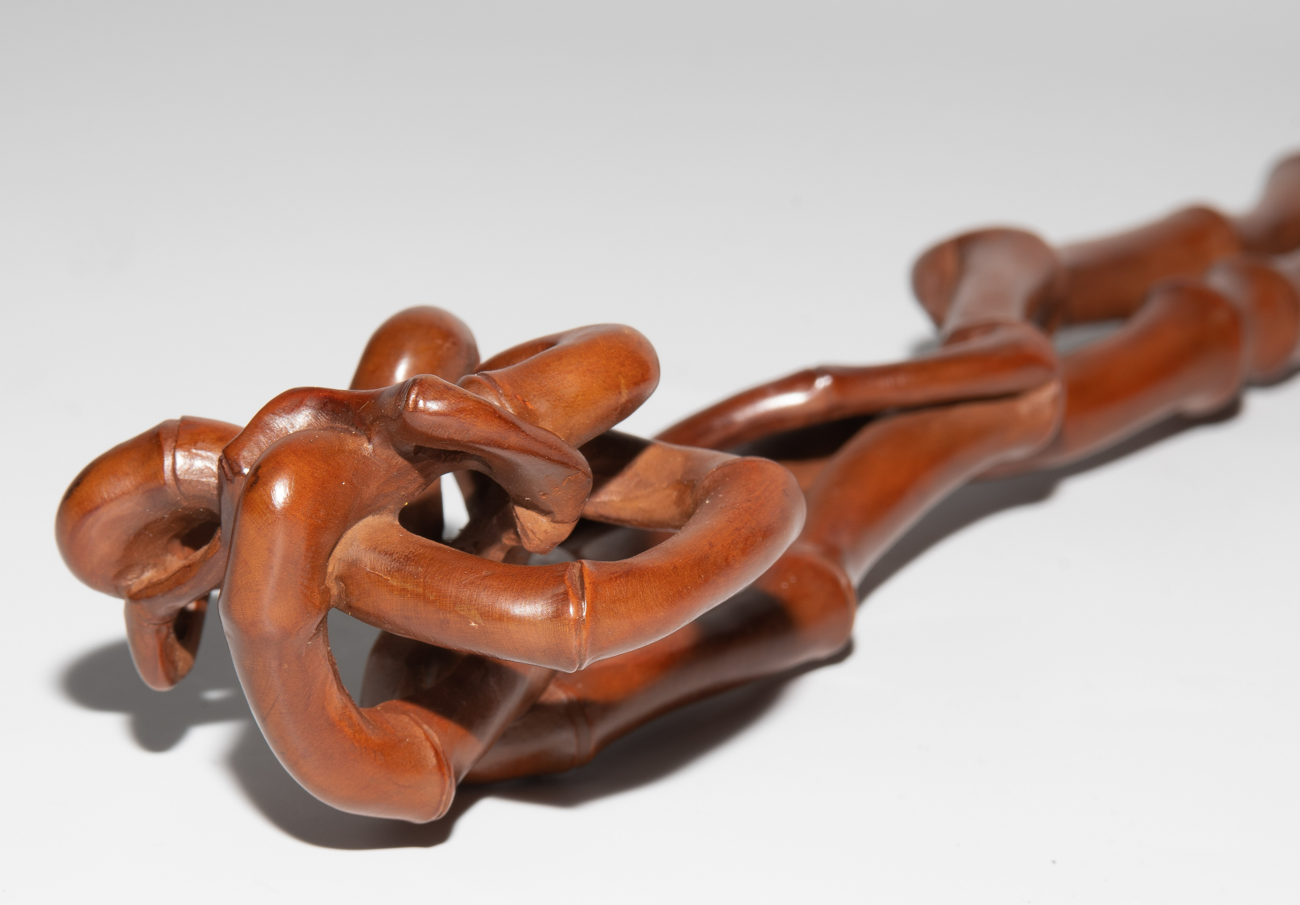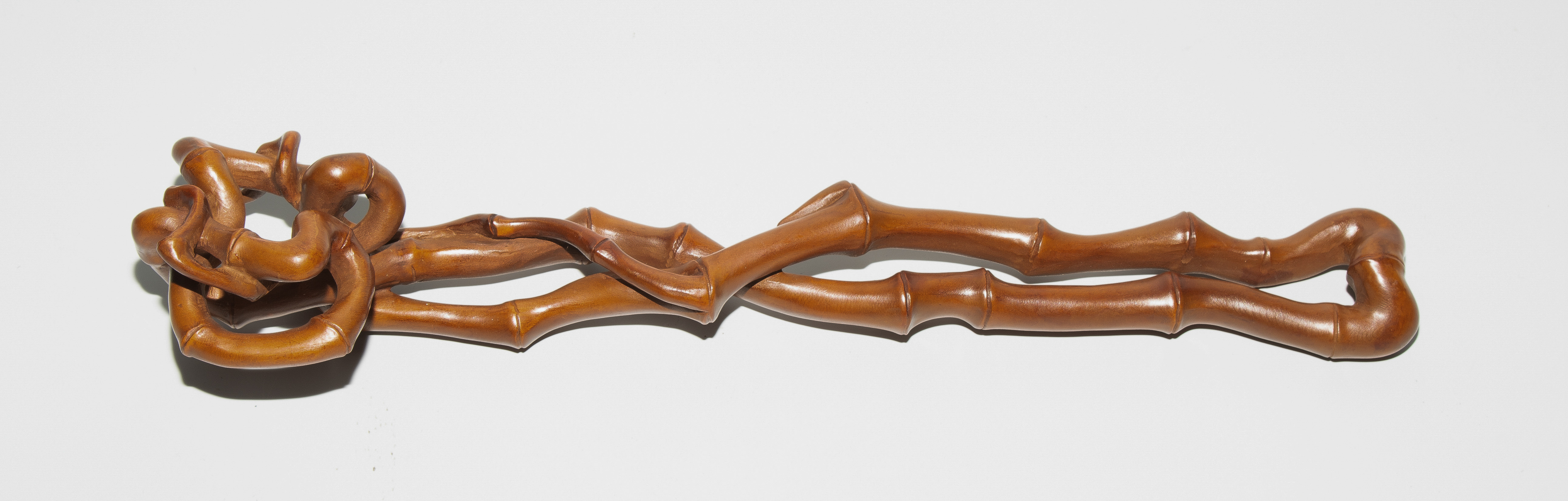 China, 19./20.Jh. Holz, geschnitzt. Windenden Bambus imitierend. L 29,5 cm.