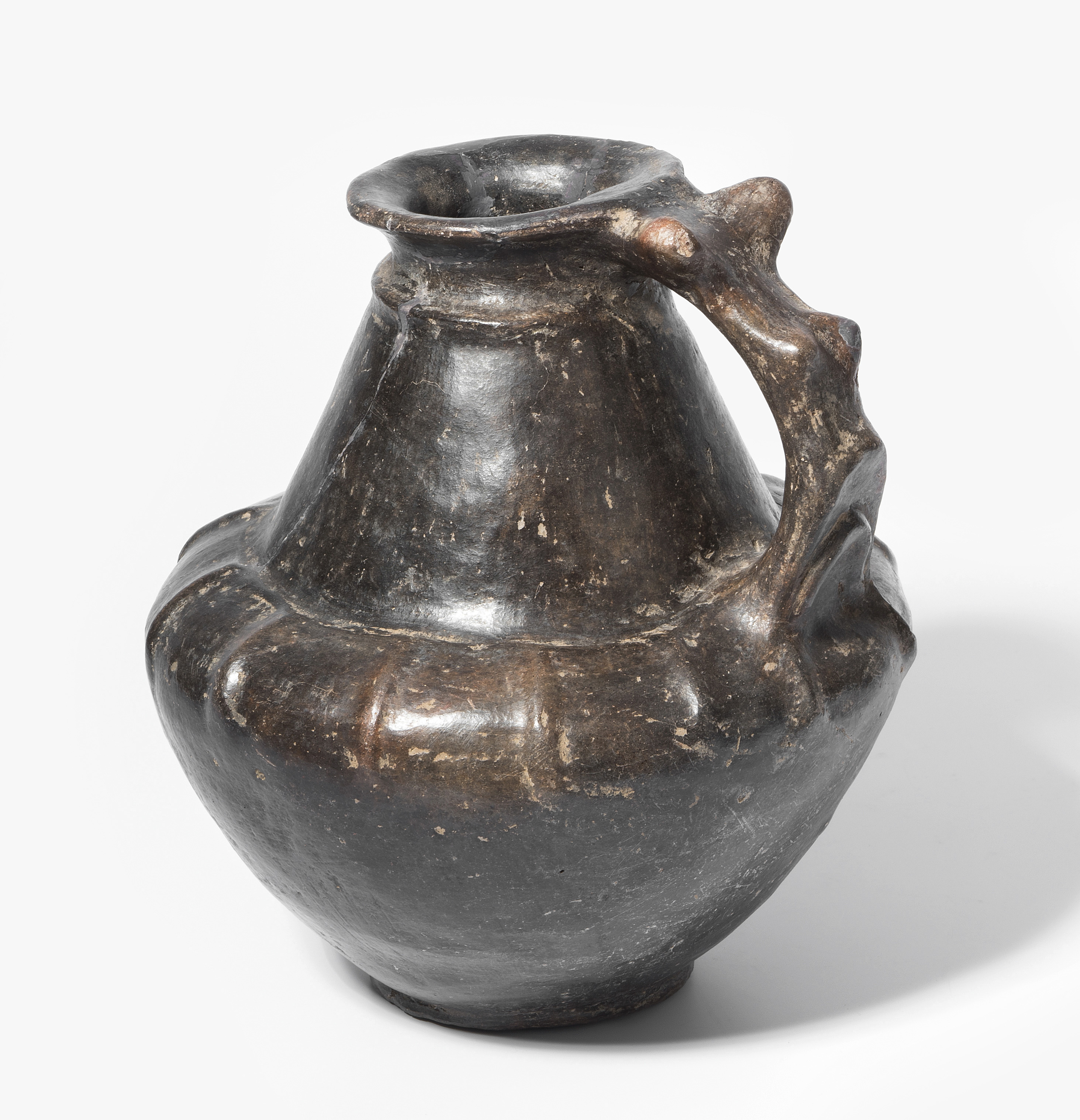 Villanova, 8.–7.Jh. v. Chr. Impasto. Krug mit geripptem Bauch und Henkel. H 20 cm. - Zusammengesetzt, Ergänzungen am Rand.