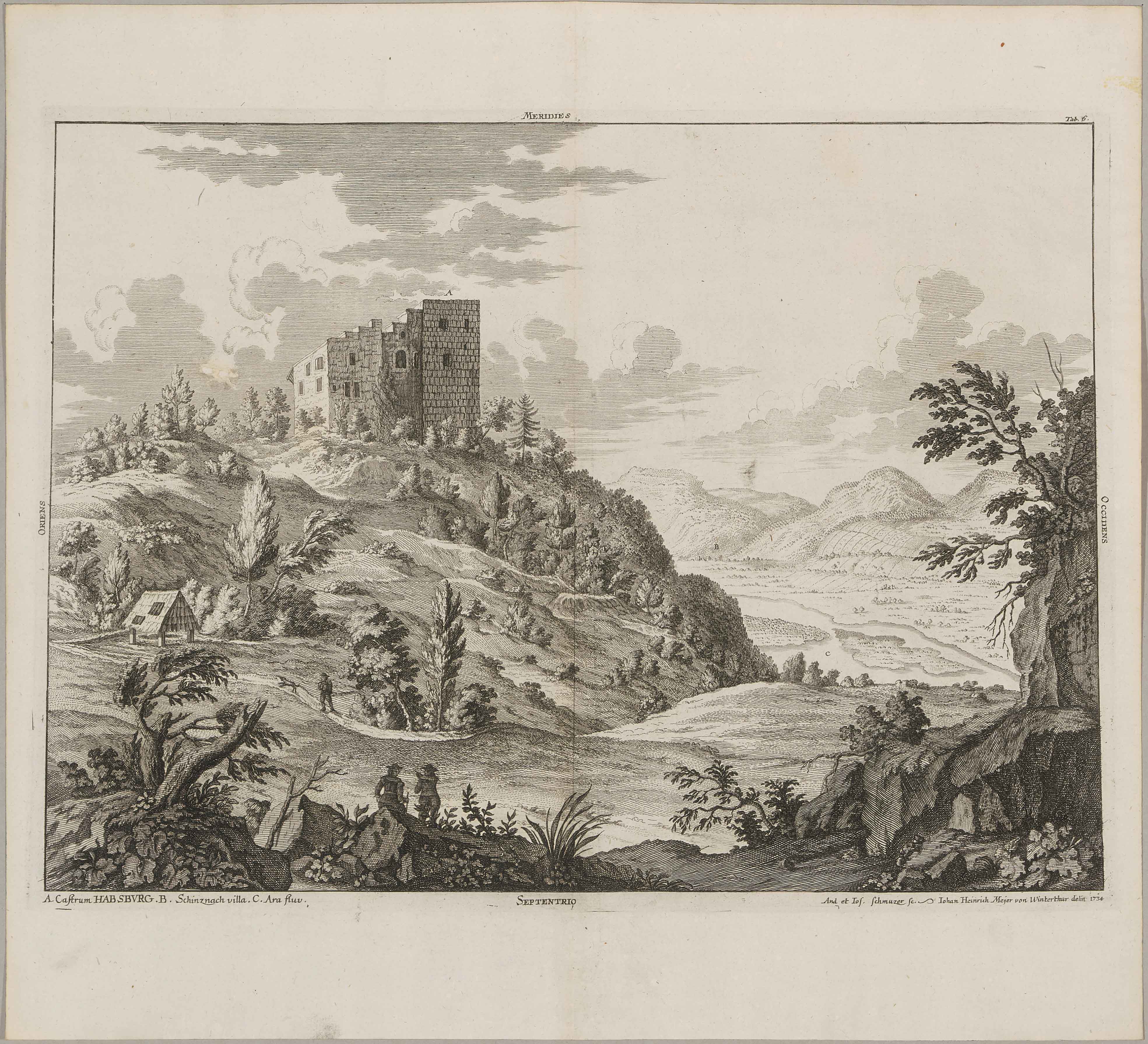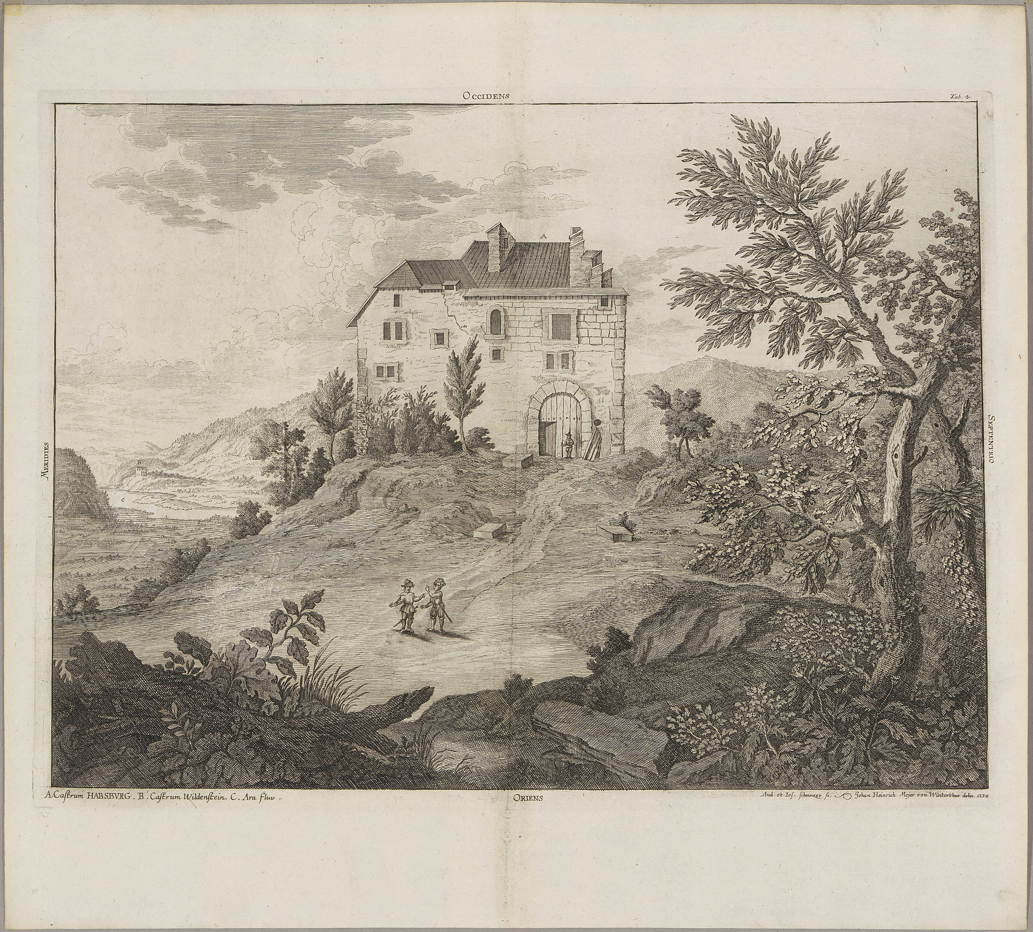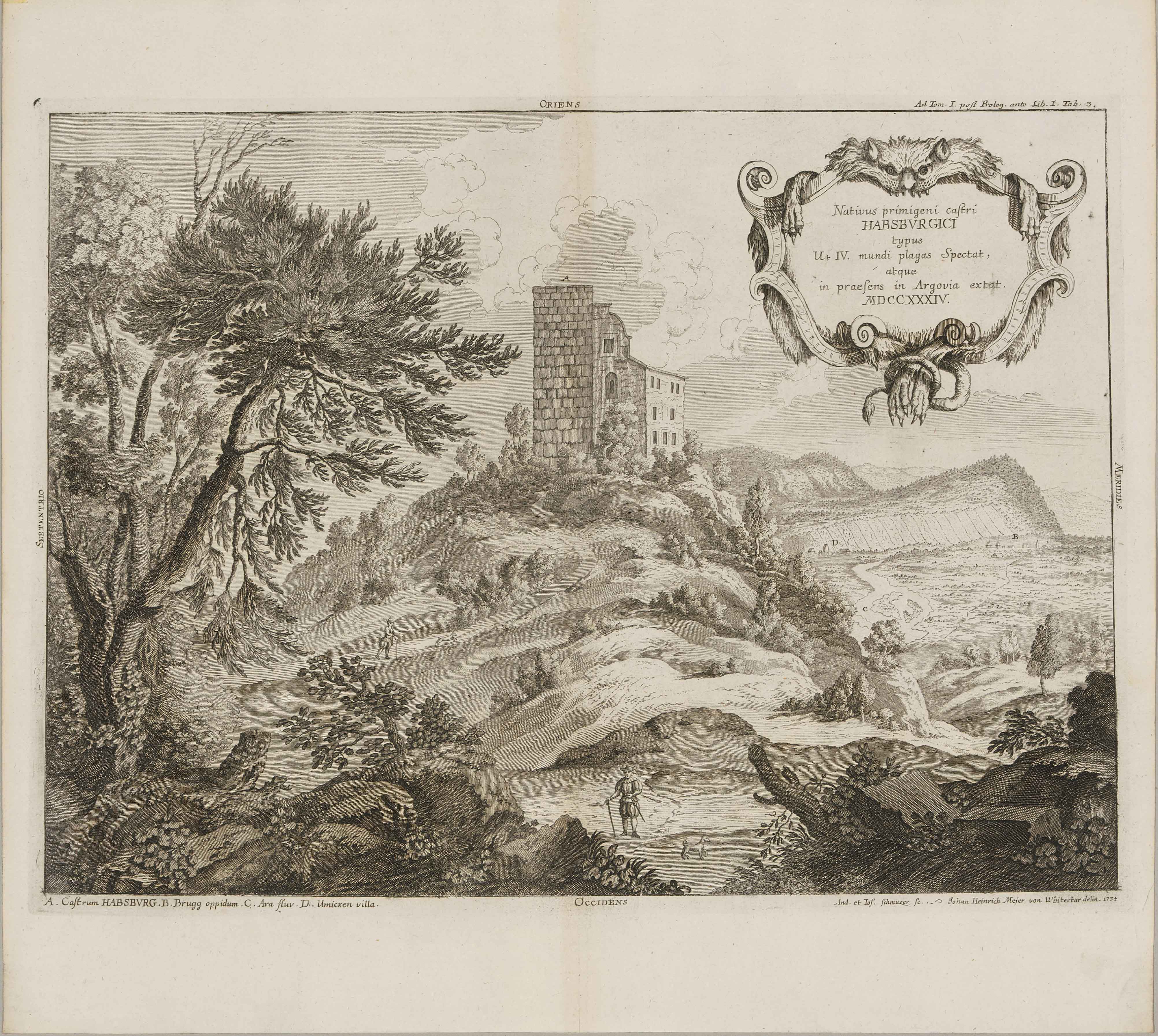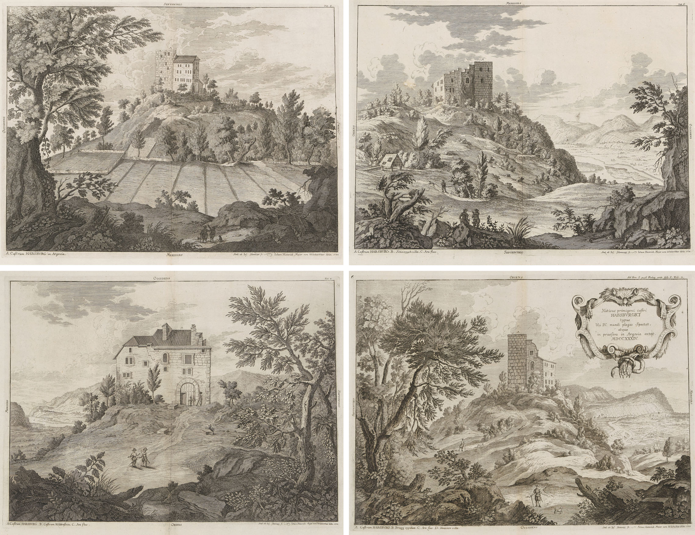 Habsburg: Nativus primigeni castri Habsburgici ...". 4 Radierungen nach Joh.Hch. Meyer, 1734. Je ca. 31,6x42. - Aus dem Werk "Genealogia diplomatica augustae gentis Habsburgicae", von M. Hergott.