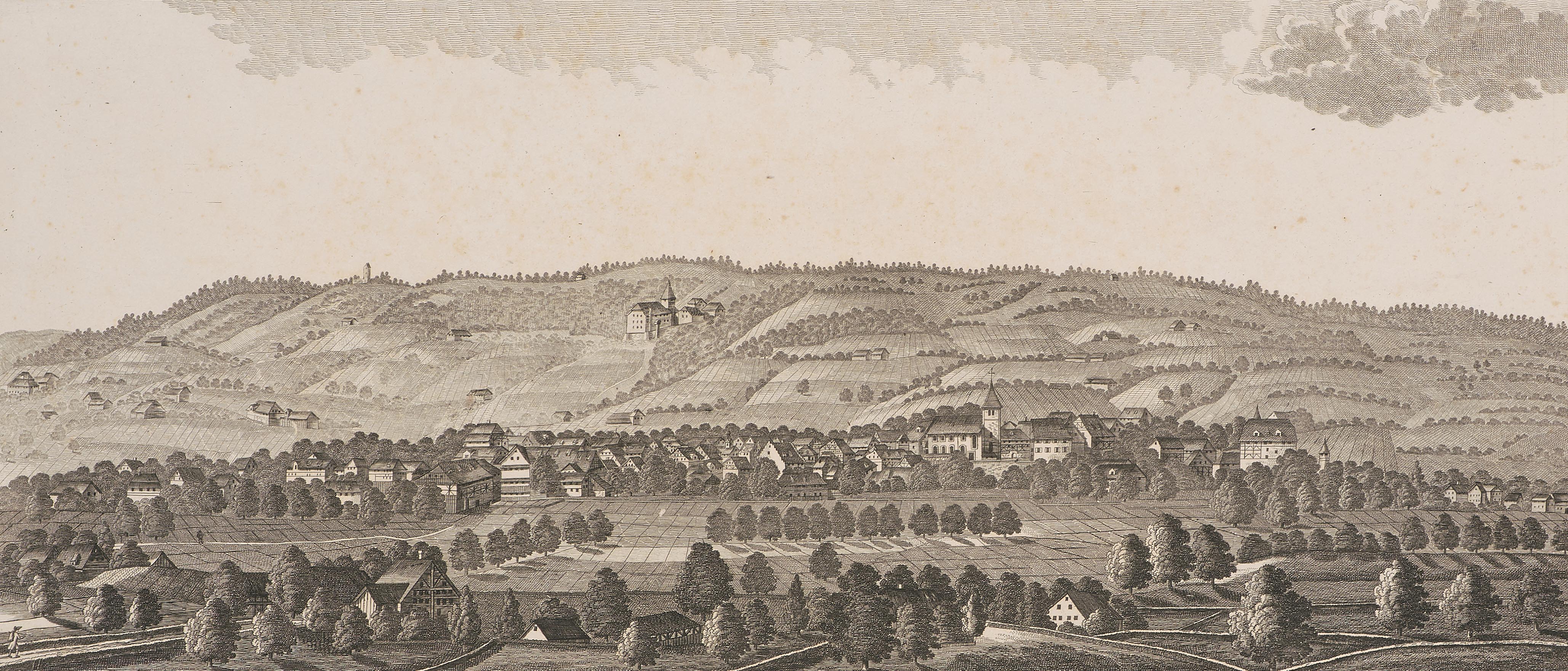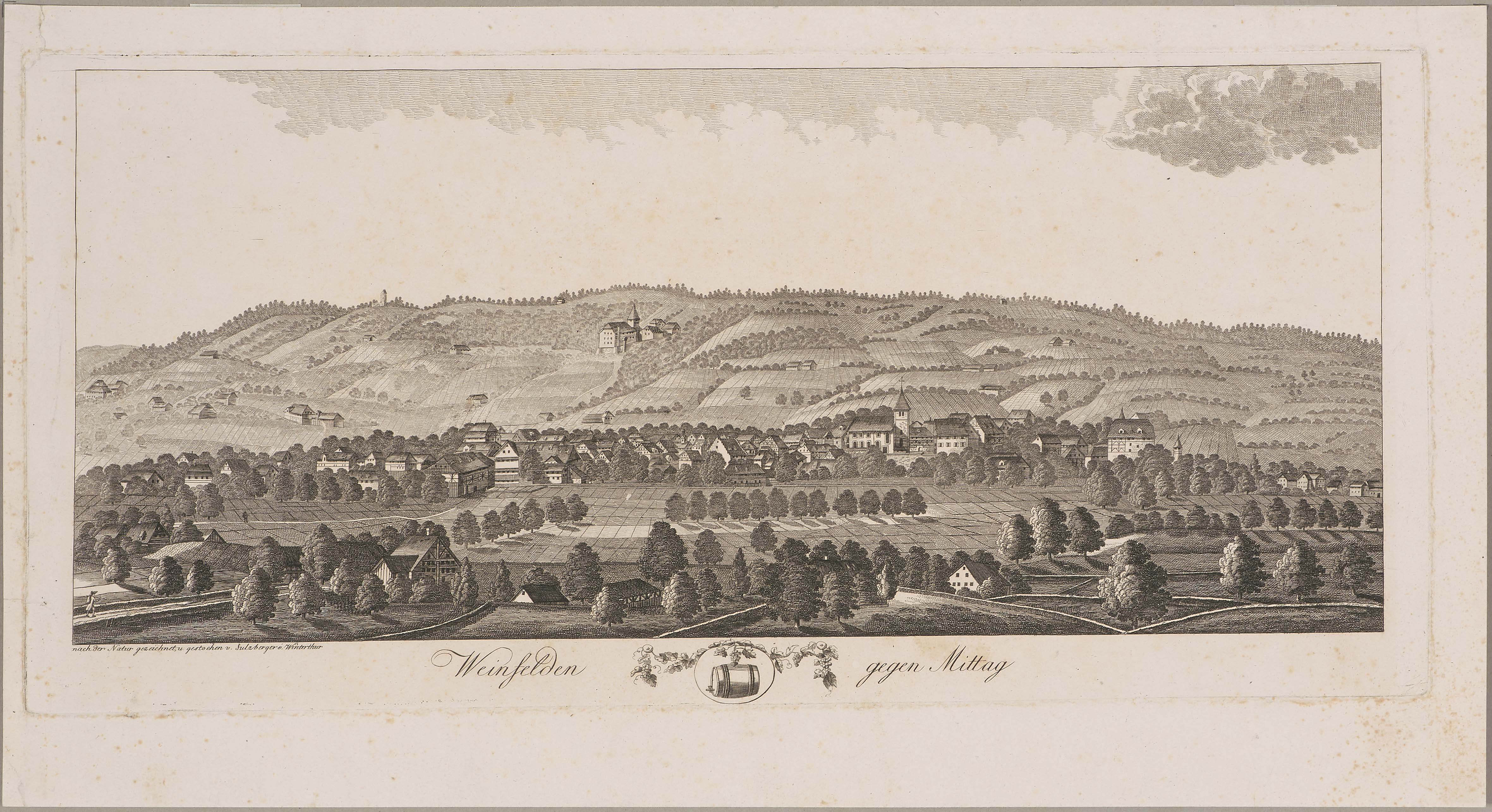 "Weinfelden gegen Mittag". Radierung um 1810. 19,8x45,4 cm. - Leicht stockfleckig und mit einigen restaurierten Randmängeln.