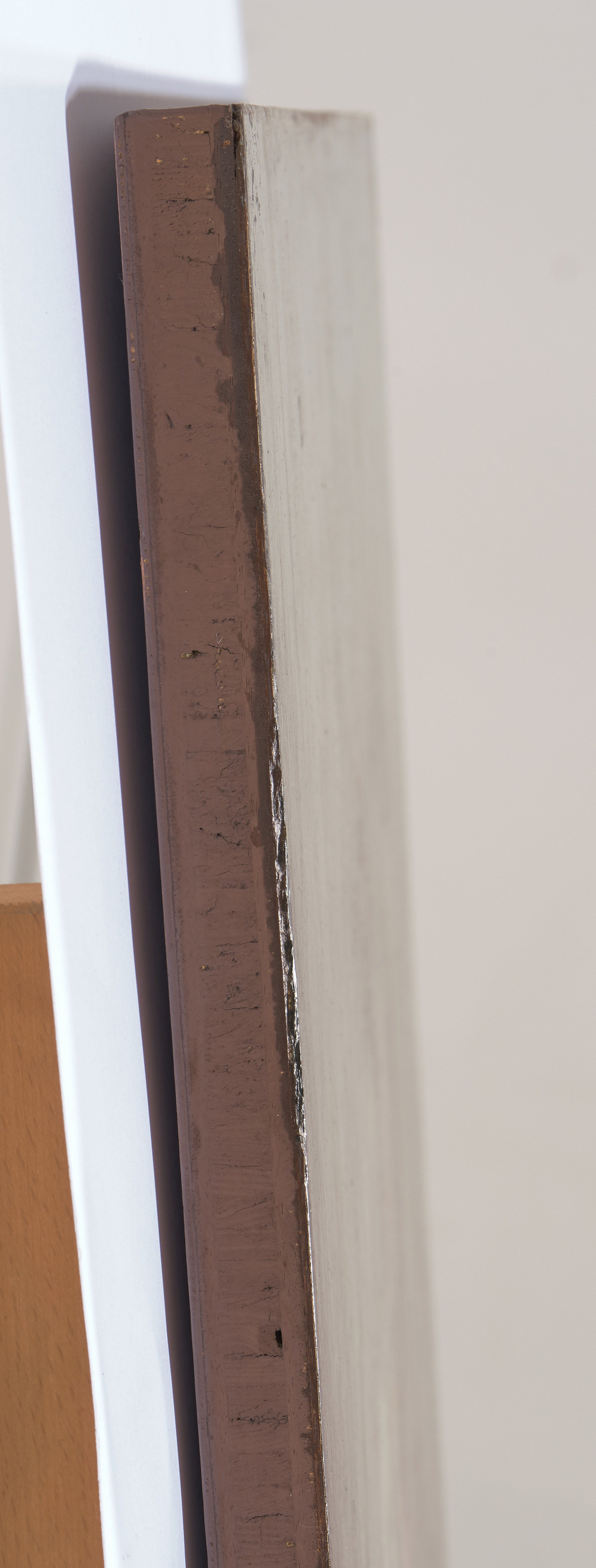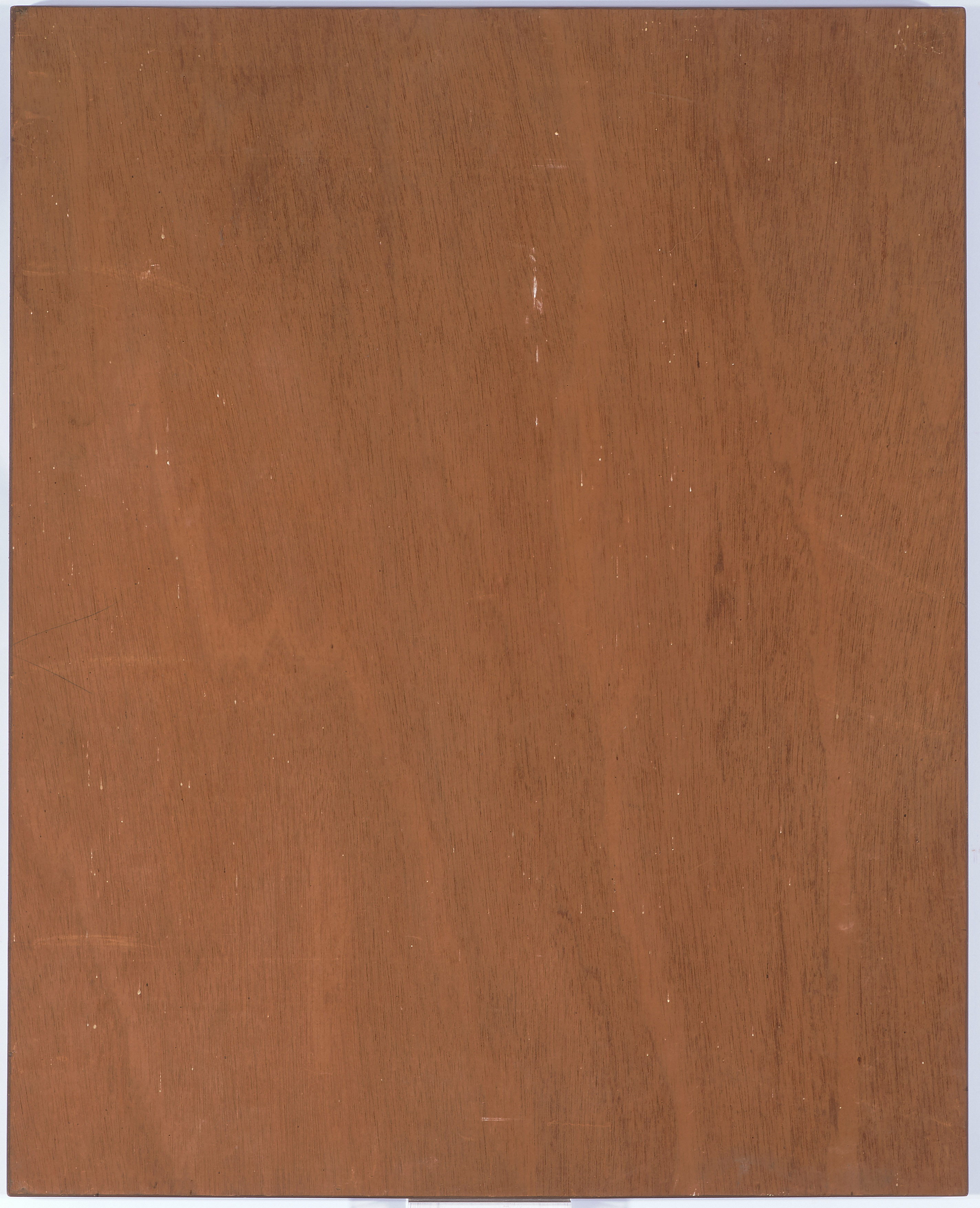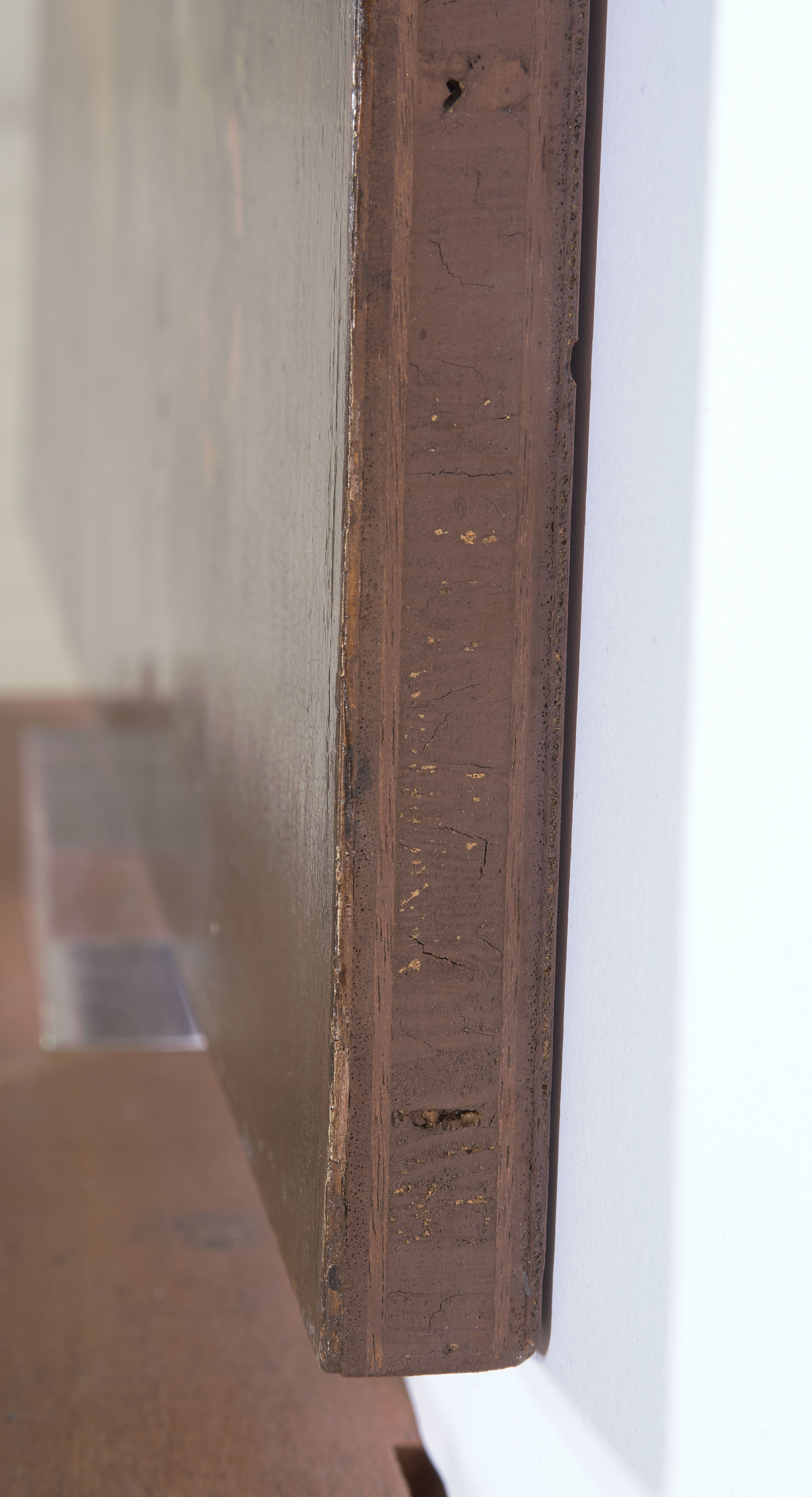 - Platte geschliffen, vertikal gebrochen und auf eine neuere Platte montiert. Kleine Pigmentausbrüche.