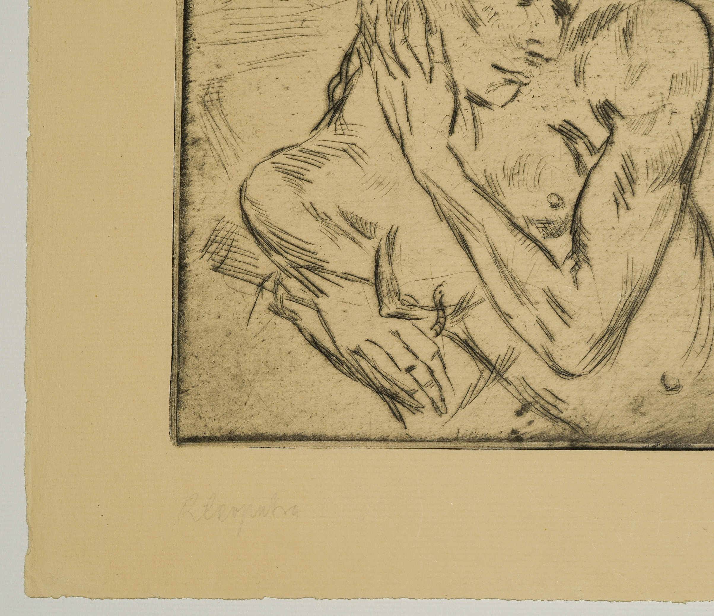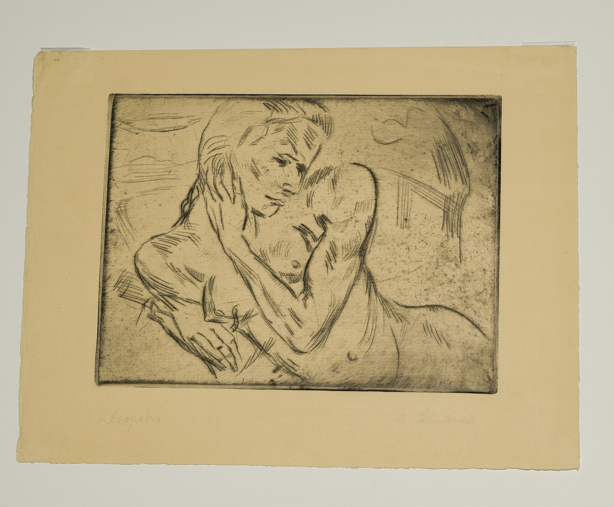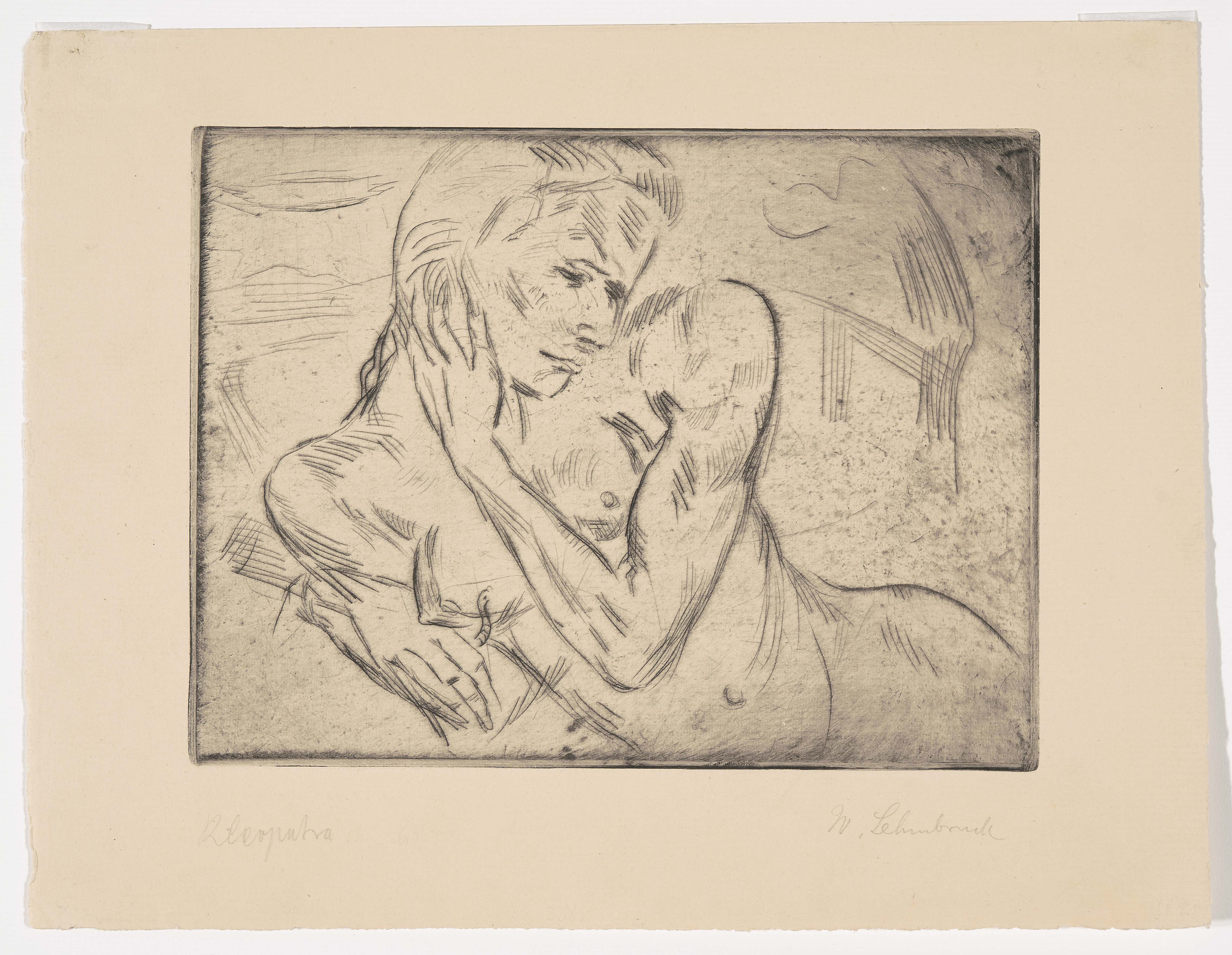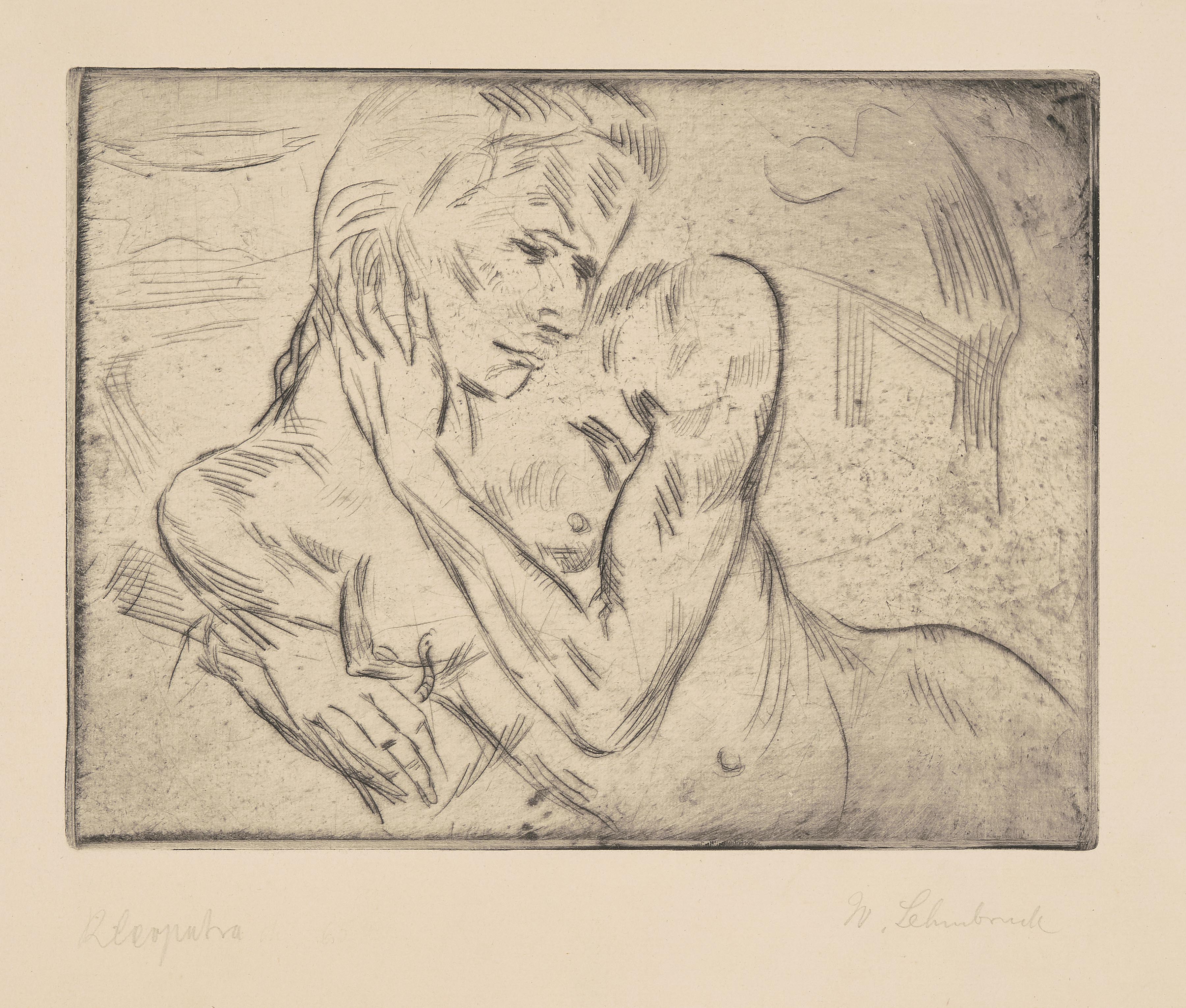 "Kleopatra I". 1911. Radierung. Unten rechts in Bleistift signiert. Unten links betitelt. Plattengrösse 17,9x23,7 cm. Blattgrösse 25,2x33 cm. -Blatt leicht gebräunt und minimst fleckig. Ränder und Ecken minimst bestossen. Verso am oberen Rand an Rückkarton montiert.